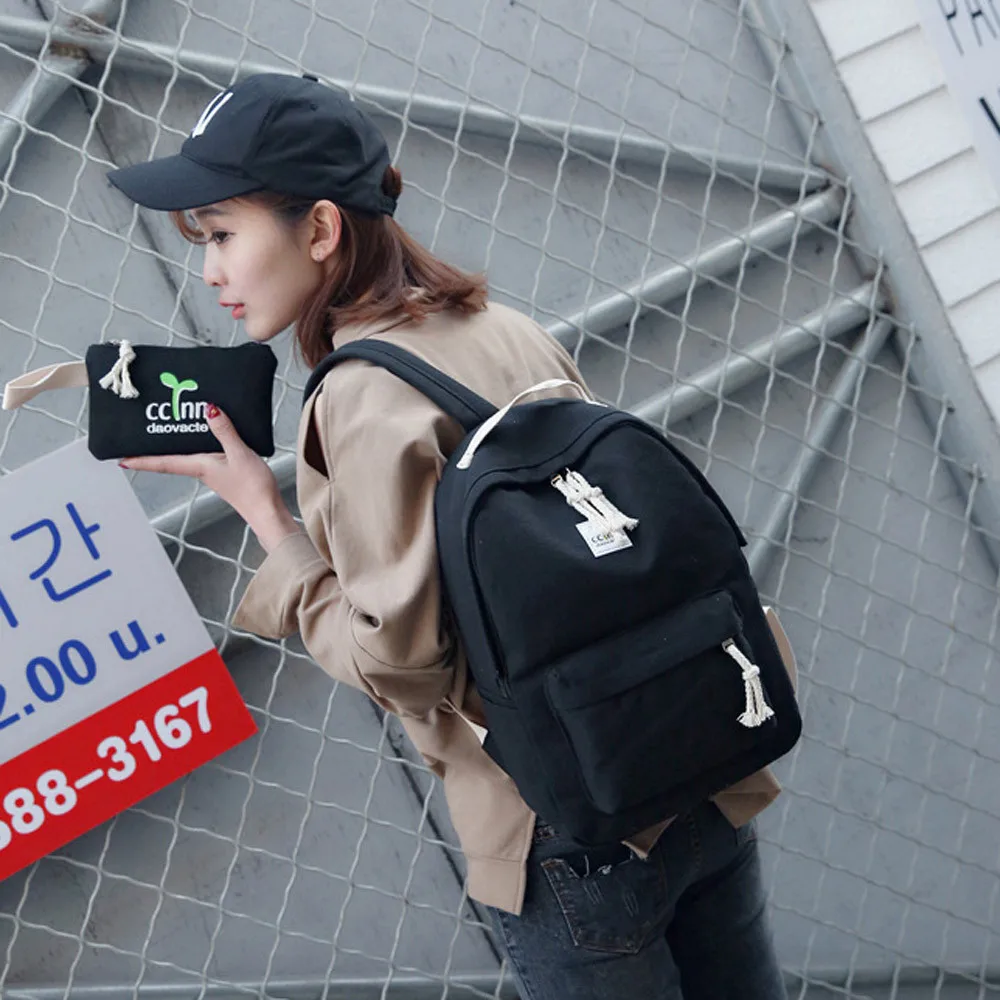 Women Canvas Backpacks Boys Girls Rucksack Shoulder Bag Student School Bag Bookbags Satchel Travel Canvas Backpack Clutch bag