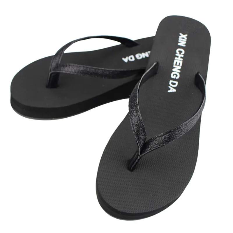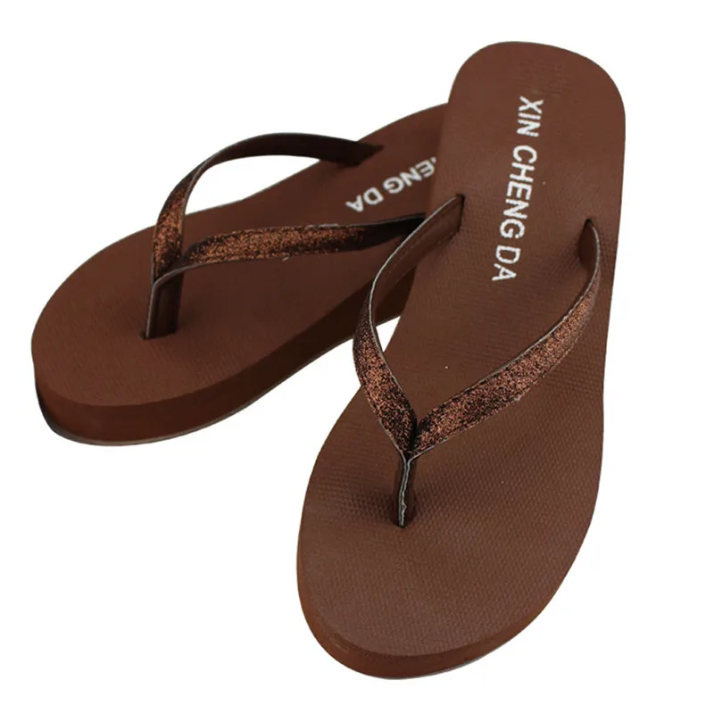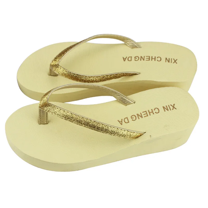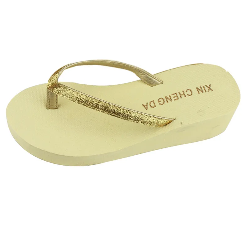 Women Casual Fashion Flip Flops Outdoor Slippers Summer Bling Strap Platform Shoes High Heels Sandals Patchwork High Heels Beach Wedge Shoes