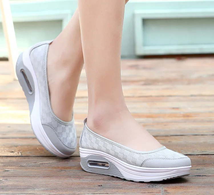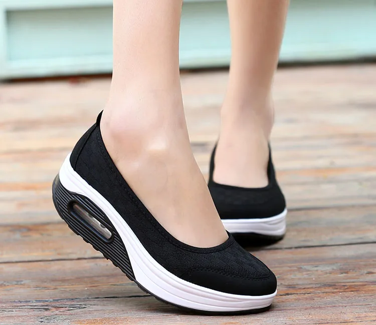 women casual shoes platform slip on flat walking sneakers mesh breathable comfort ladies loafers light weight jogging shoes