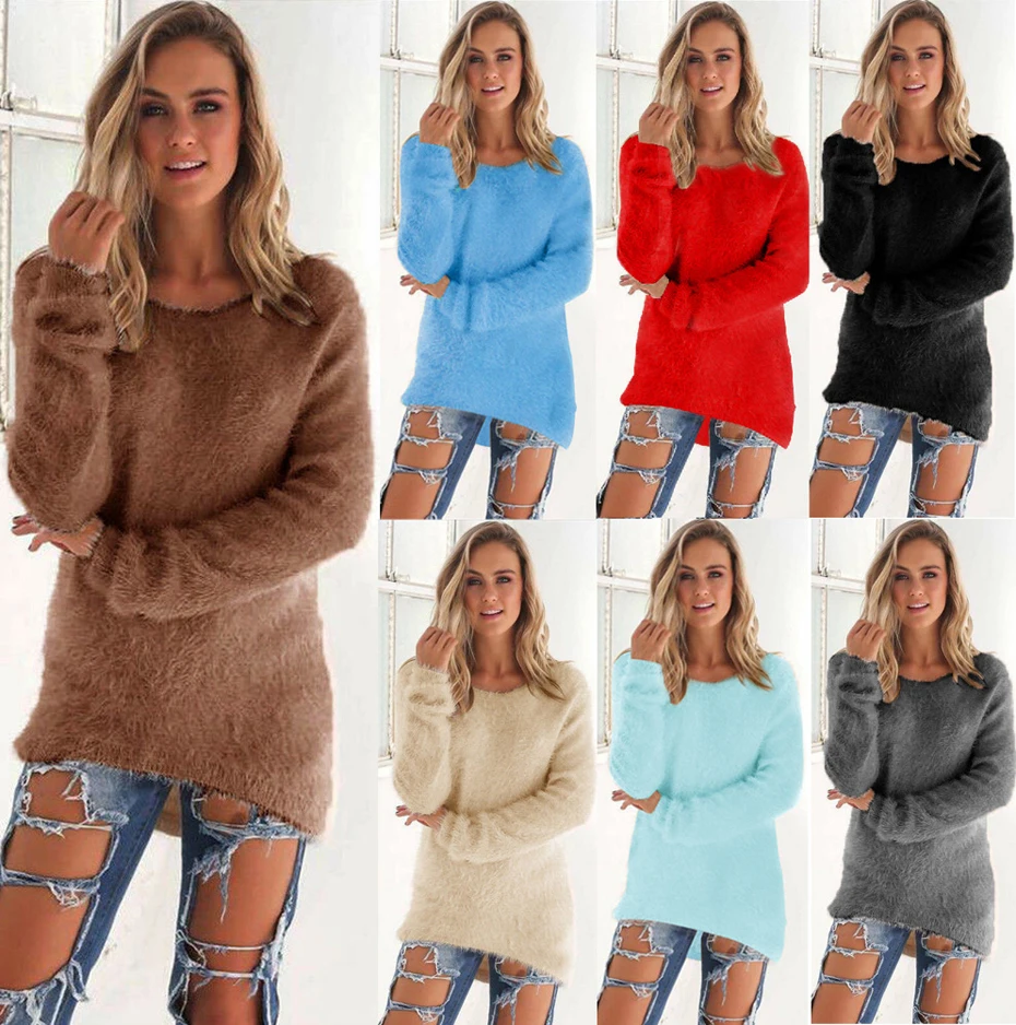 Women Casual Winter Autumn Sweaters Lady long Sleeve Crewneck Jumper Thin Casual Knitted Sweater Dress Solid Vestidos Mujer