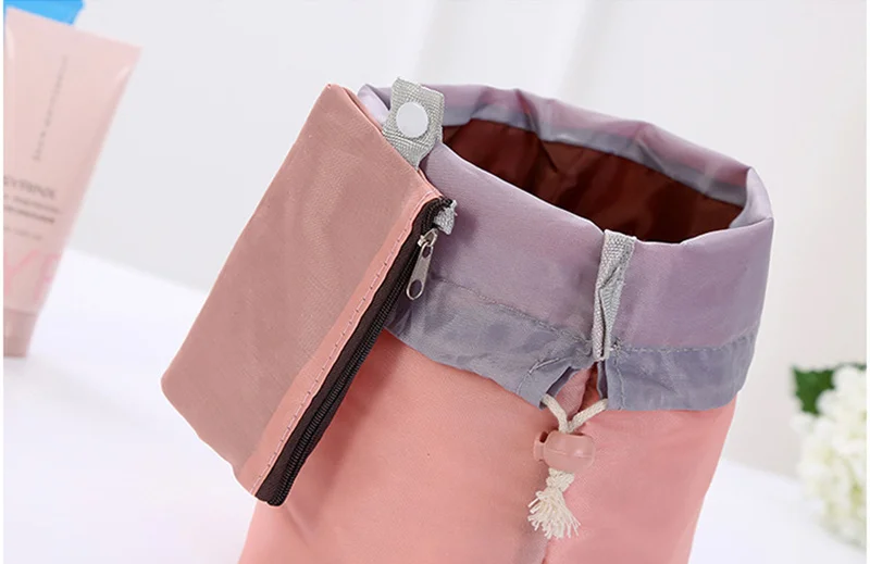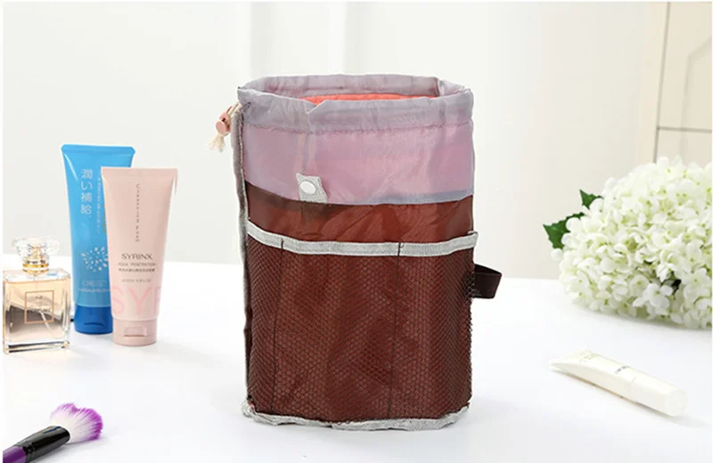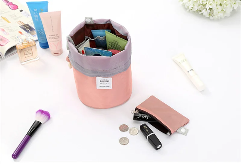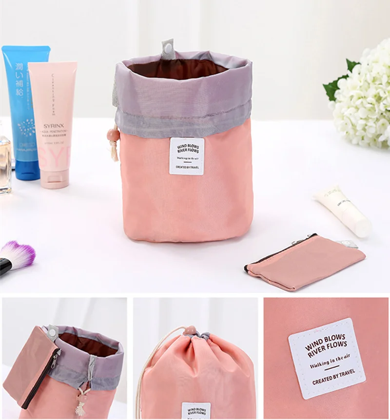 Women Drawstring Wash Bags Makeup Organizer Barrel Shaped