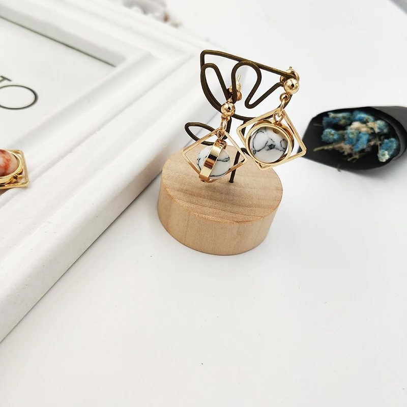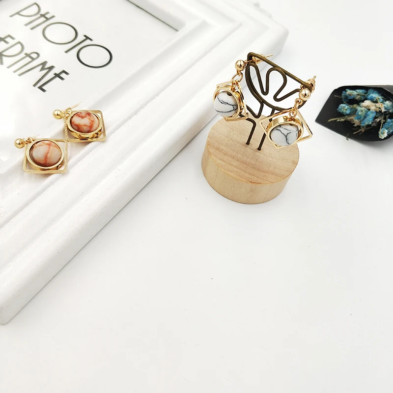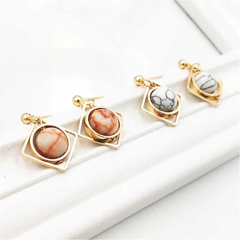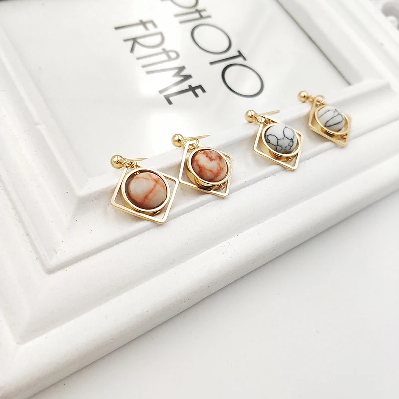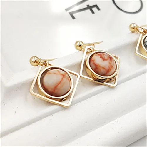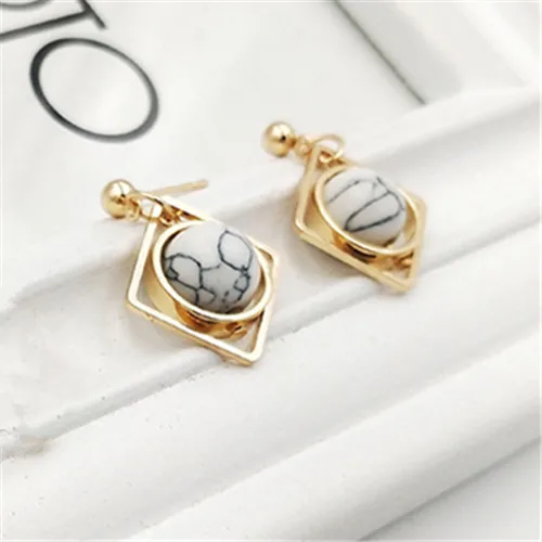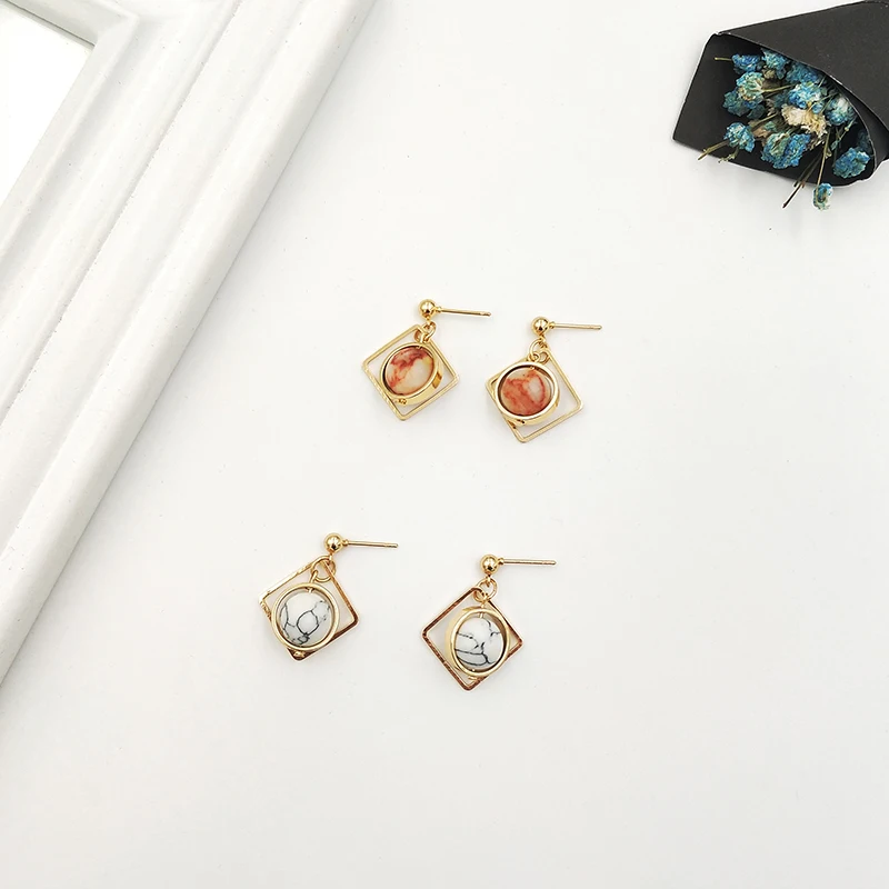 women earrings stone Natural marble stone earring female geometric delicate girl earrings Stained glass stud earrings for women