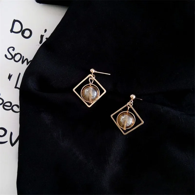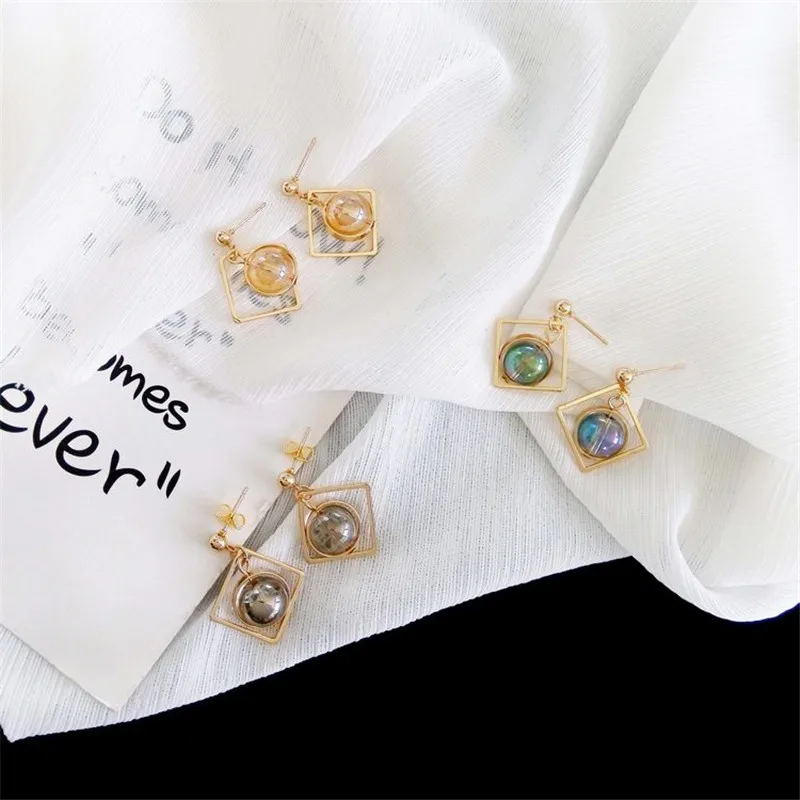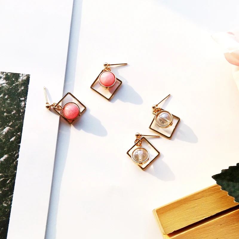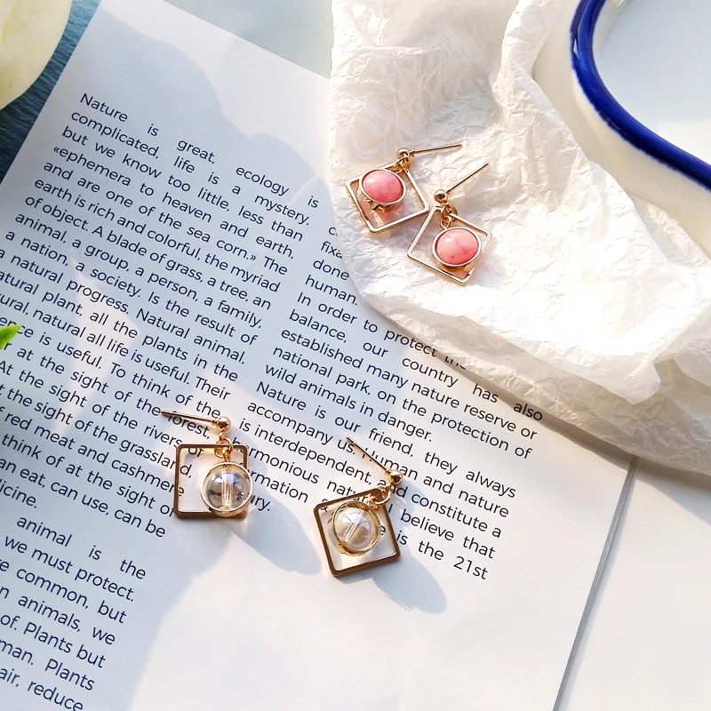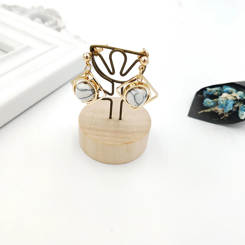 women earrings stone Natural marble stone earring female geometric delicate girl earrings Stained glass stud earrings for women