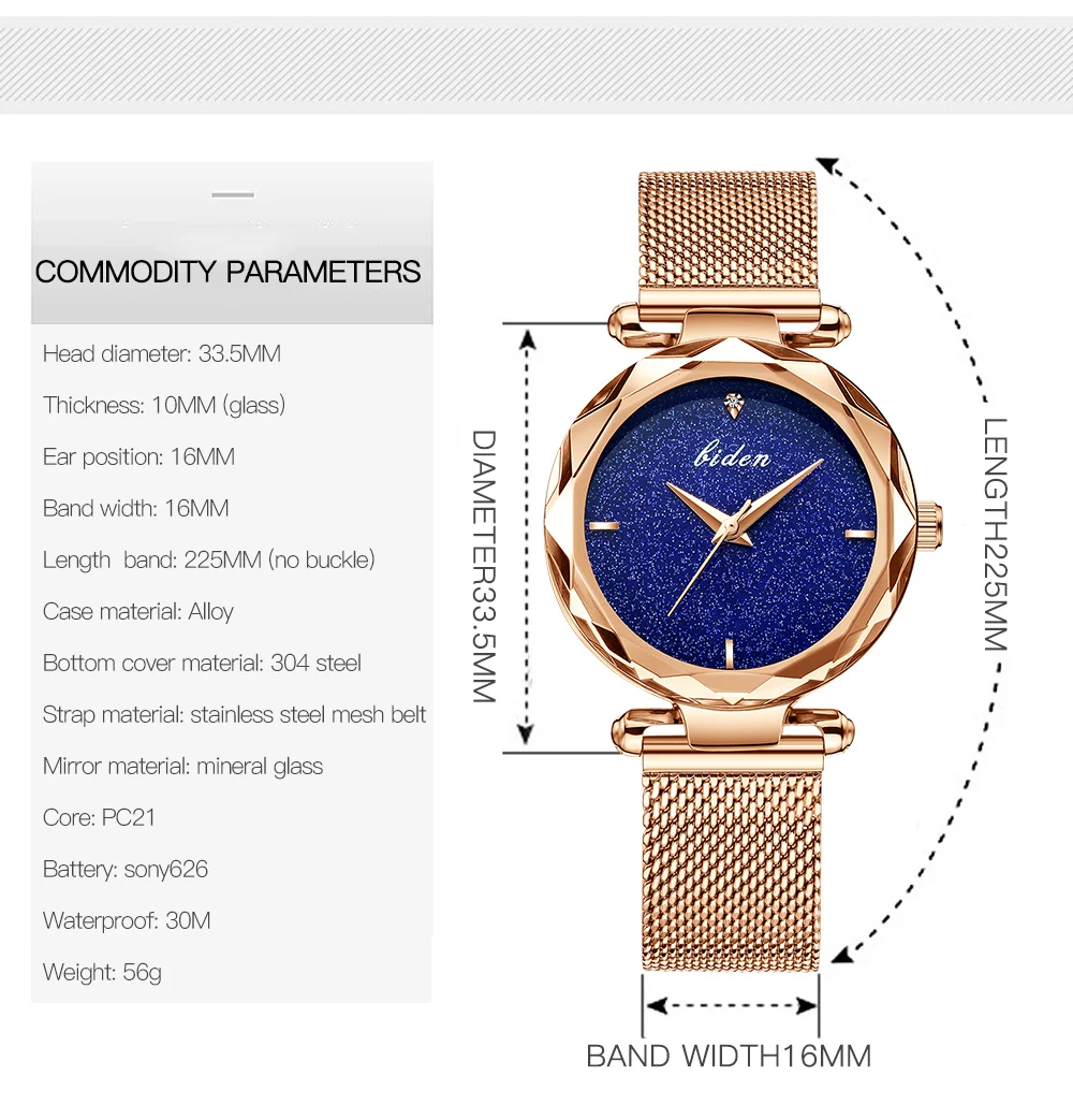 Women Fashion Quartz Watches Full Steel 30M Waterproof Wristwatches Ladies Clock Relojes Mujer 2018 BIDEN Women Bracelet Watches