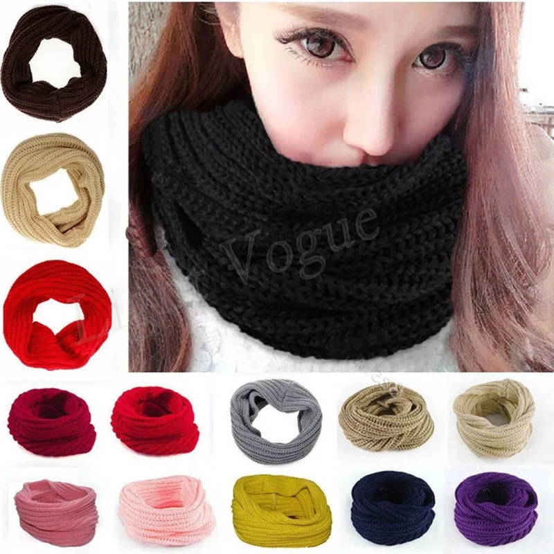 Women Fashion Winter Warm Infinity Circle Cable Knit Cowl Neck Long Scarf Shawl