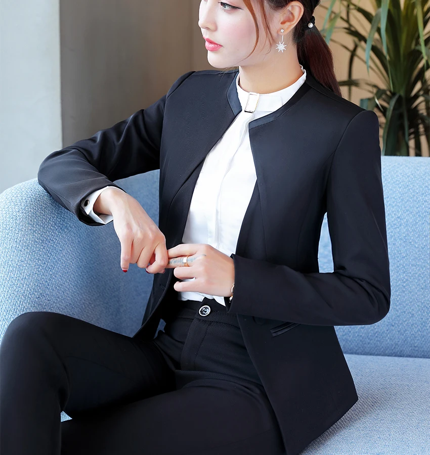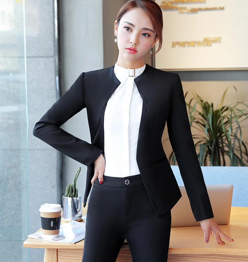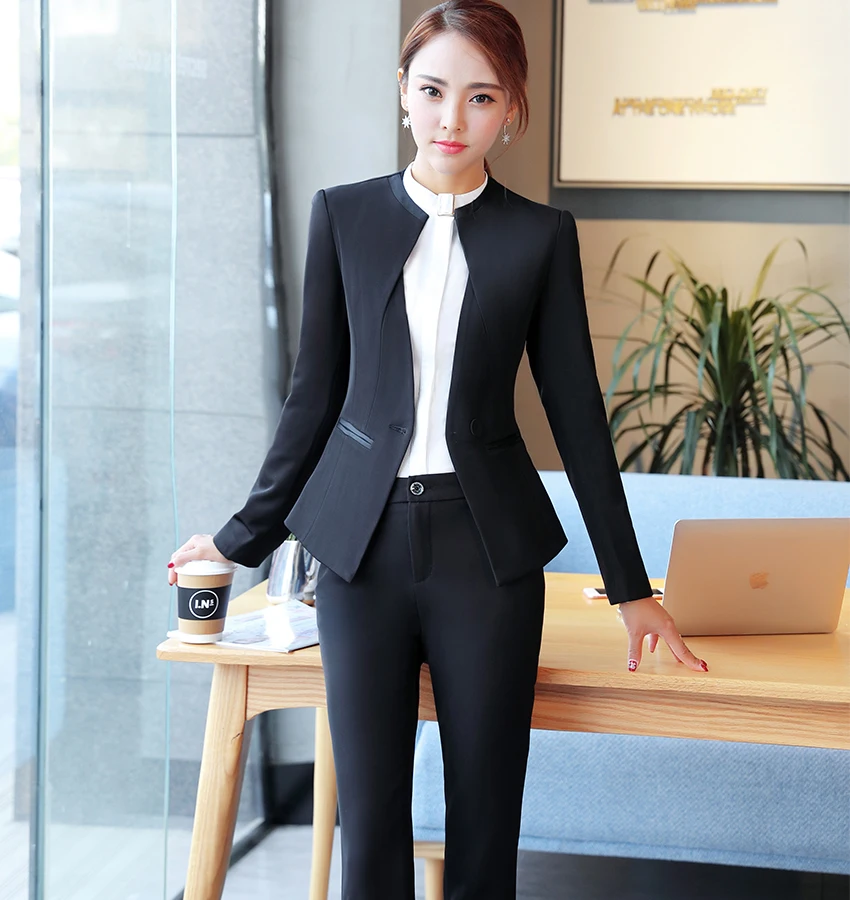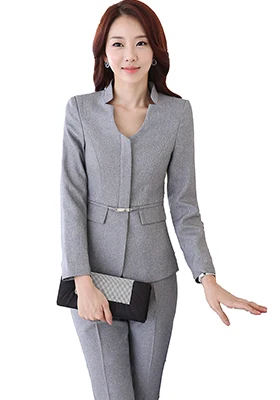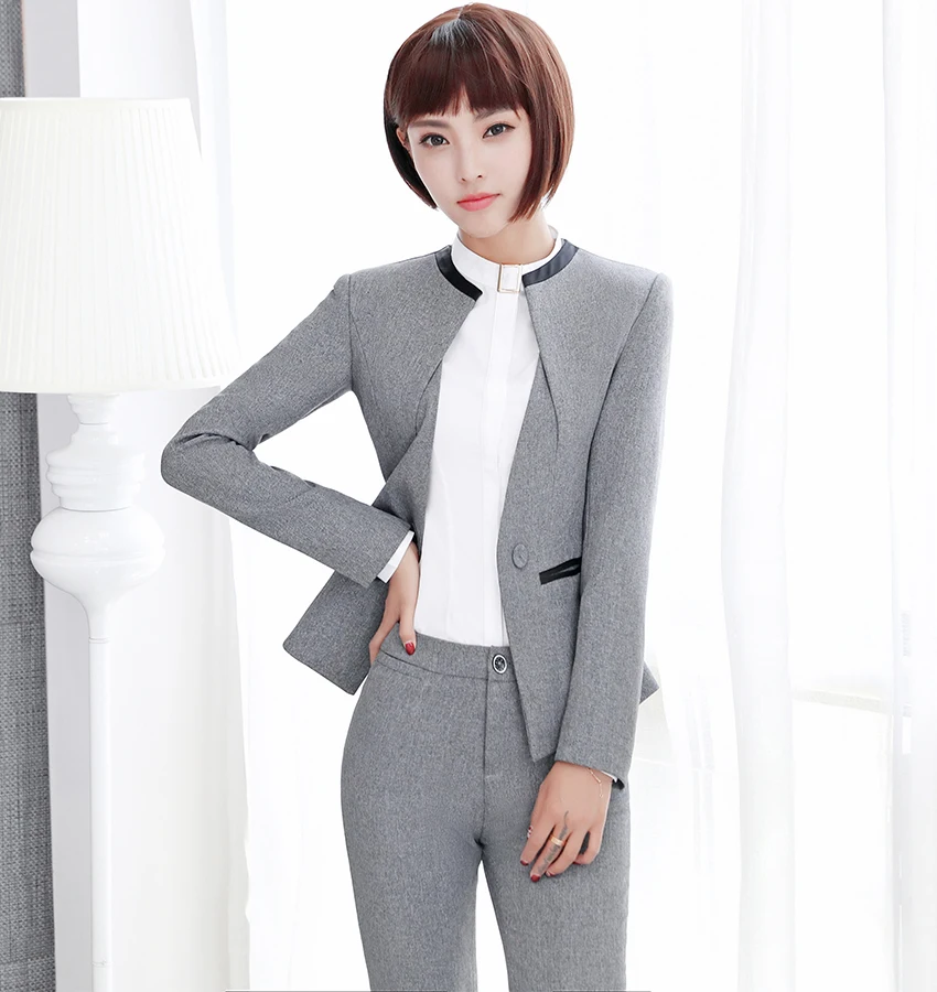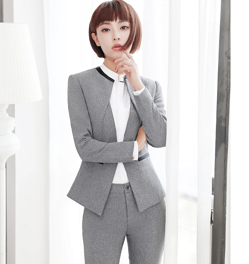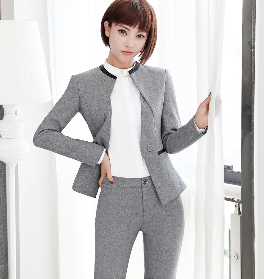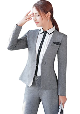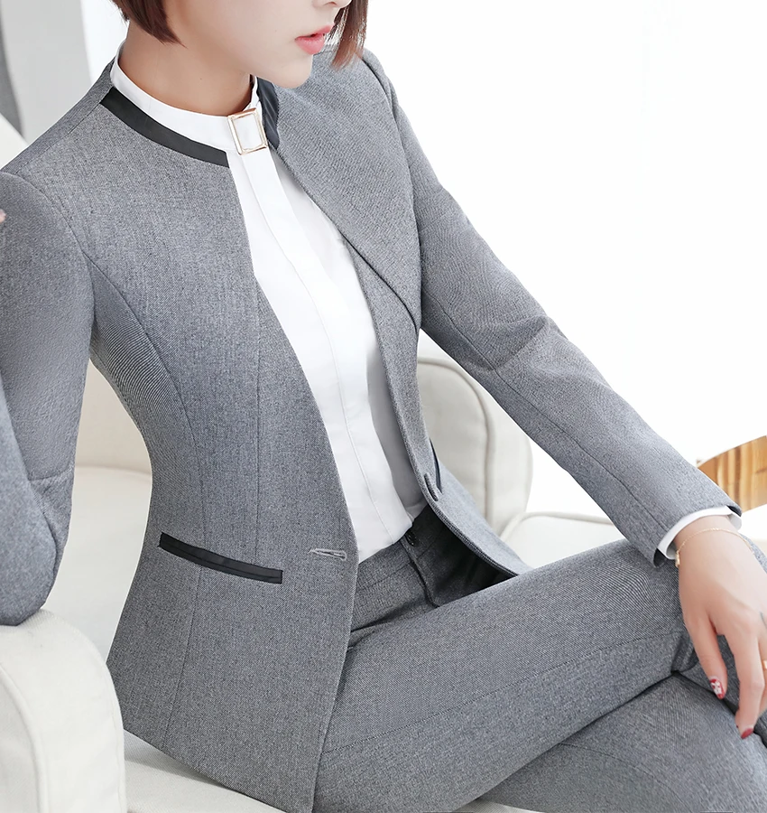 Women Formal Pant Suit Uniform Designs Office Lady Business Career Wear Gray Blazer With Trouser For Work 2 Piece Set