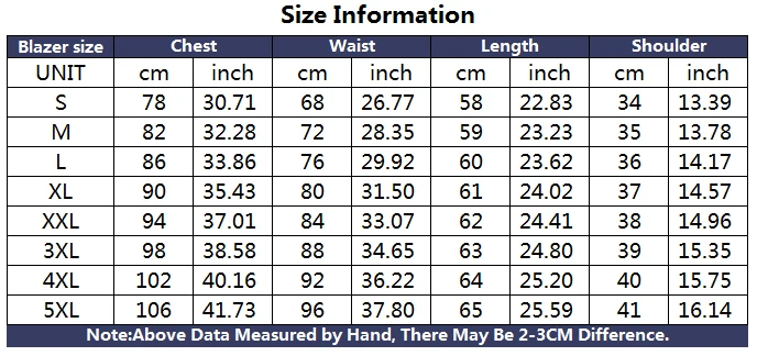 1. This is Chinese size, smaller than European, American and Russian size on general occasion, don’t refer to S/M/L simply, you must measure the data from the clothes you are wearing now like the picture below before purchase, and then according to our size information choose the size for yourself.