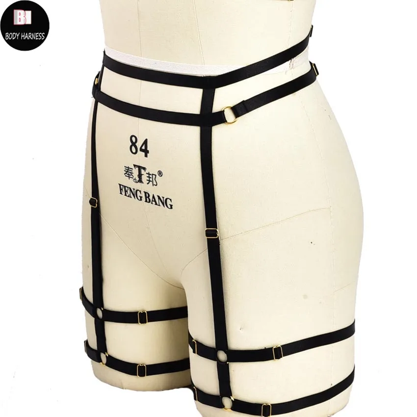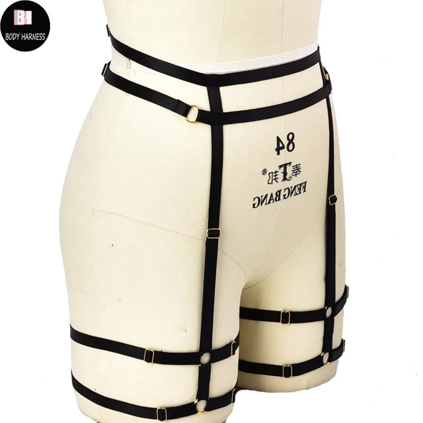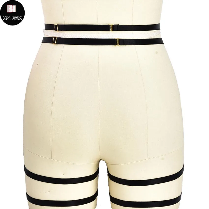 Women Goth Leg Garter Belt Black Body Harness Punk Sexy Leg Harness Elastic Adjustable High Waist Stocking Garters