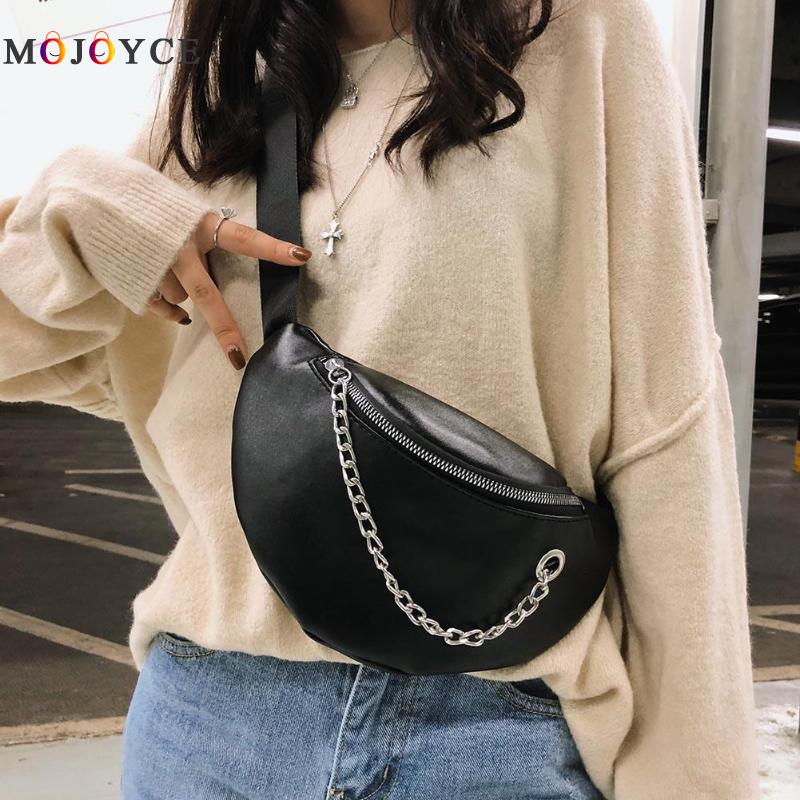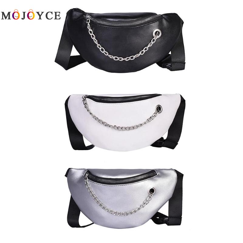 Fashion Women PU Leather Chain Hobos Shoulder Bag Waist Fanny Chest Packs Crossbody Bags Casual Accessories