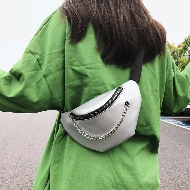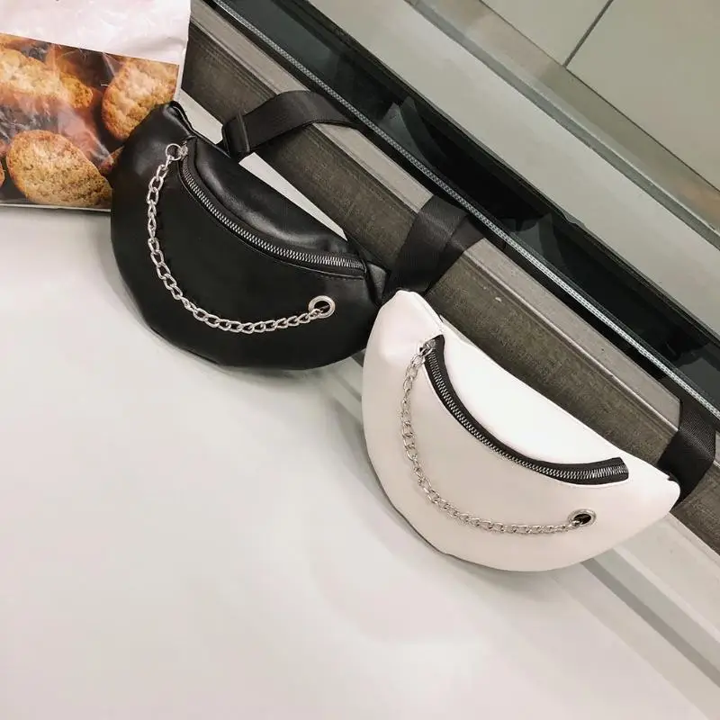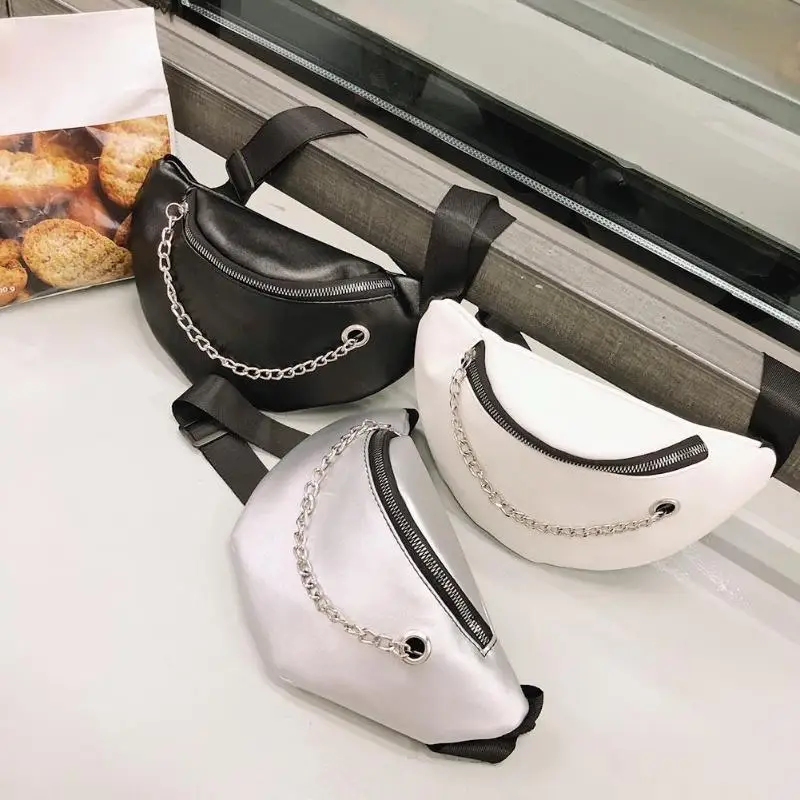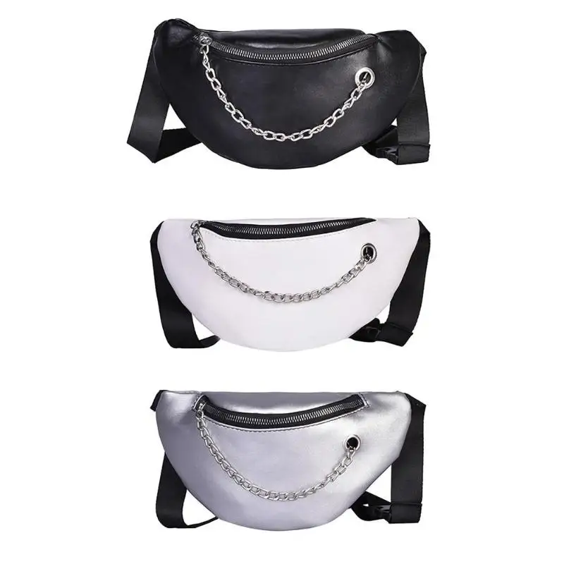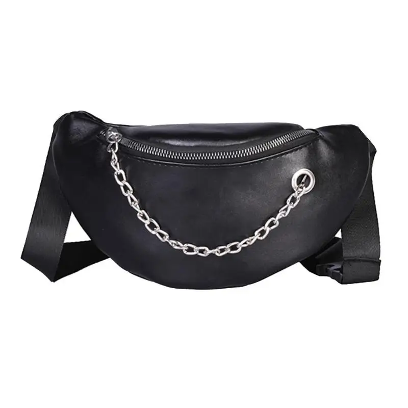 Fashion Women PU Leather Chain Hobos Shoulder Bag Waist Fanny Chest Packs Crossbody Bags Casual Accessories