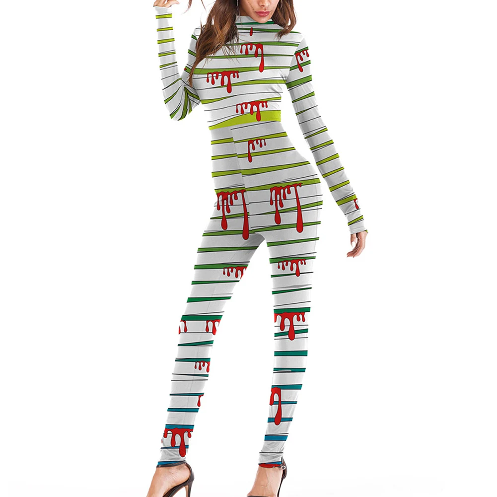 Women Jumpsuit Halloween Blood Palm Print Muscle Print Role Playing Skinny Jumpsuit Party Sexy Girl Film