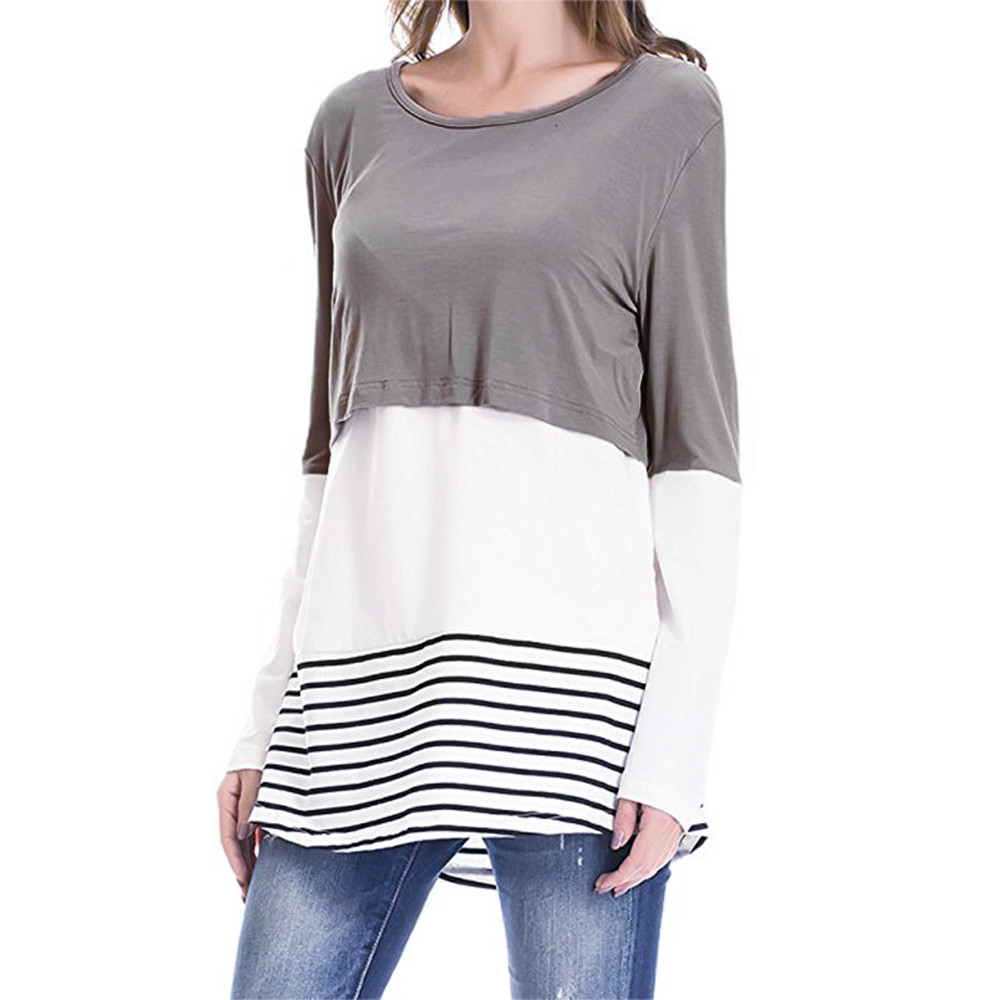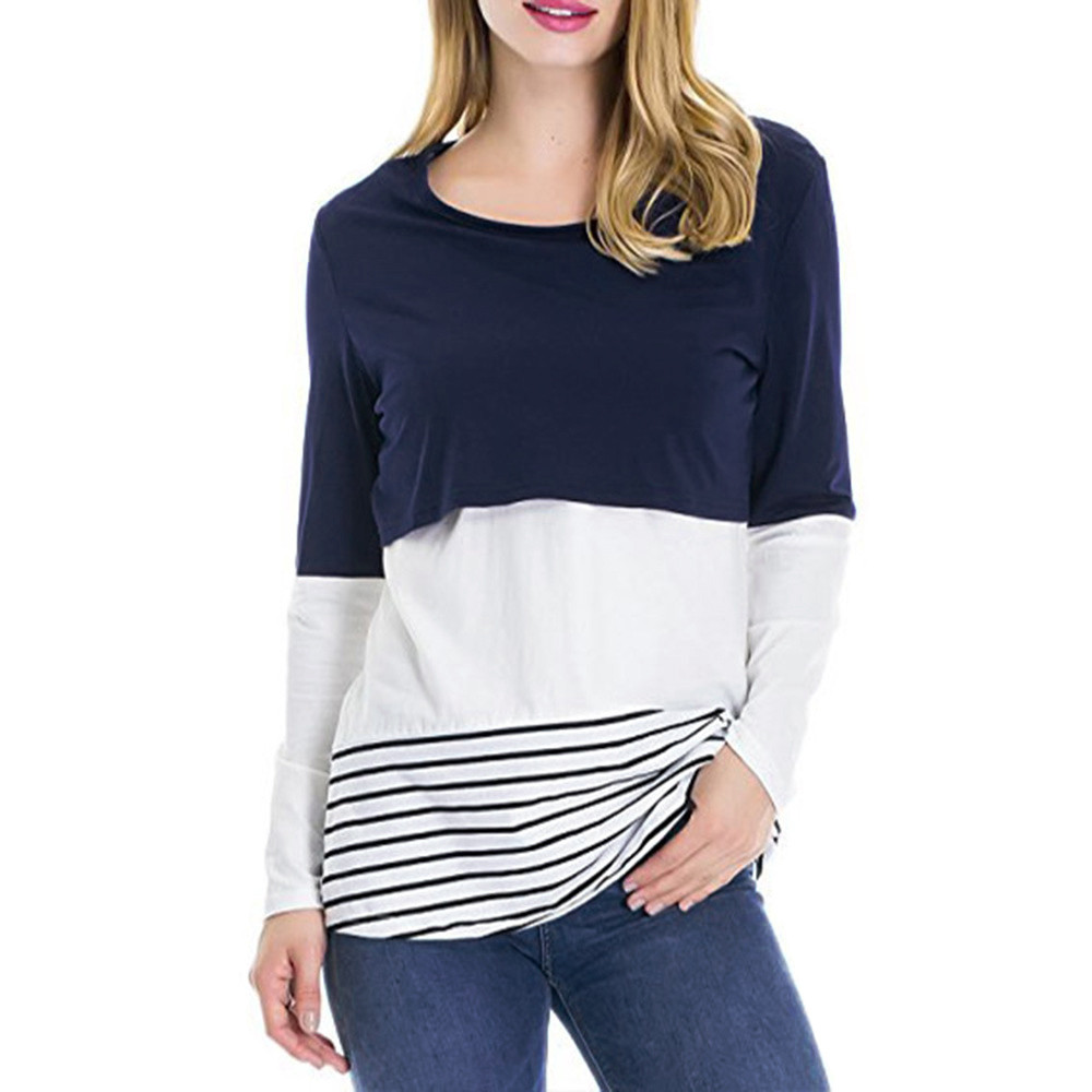 - Women Lace Splice Pregnant Casual Nursing Baby For Maternity Pajamas Blouse Tops Cotton Soft Pregnant Mother Breastfeeding Top