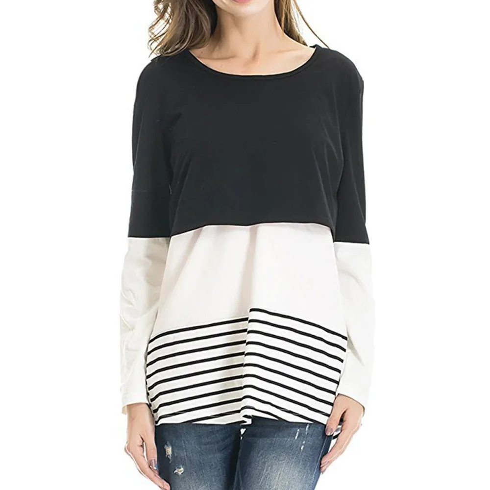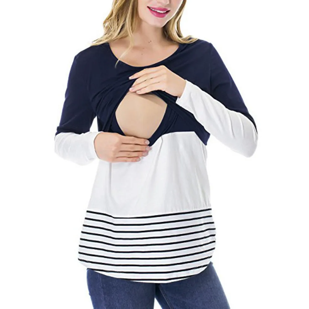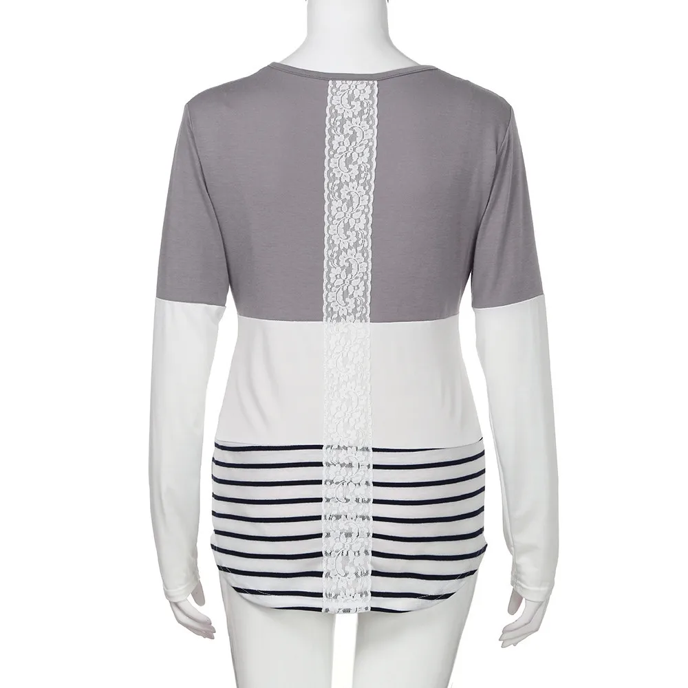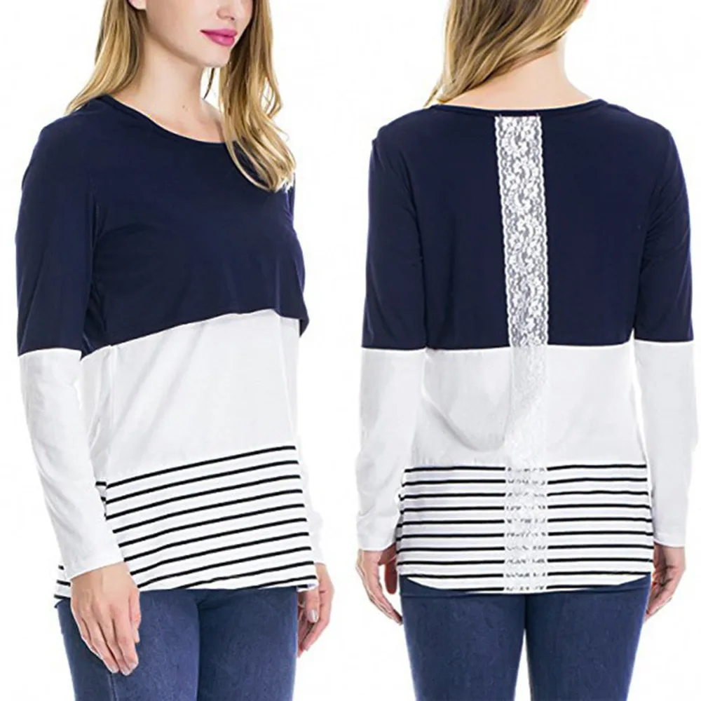 - Women Lace Splice Pregnant Casual Nursing Baby For Maternity Pajamas Blouse Tops Cotton Soft Pregnant Mother Breastfeeding Top