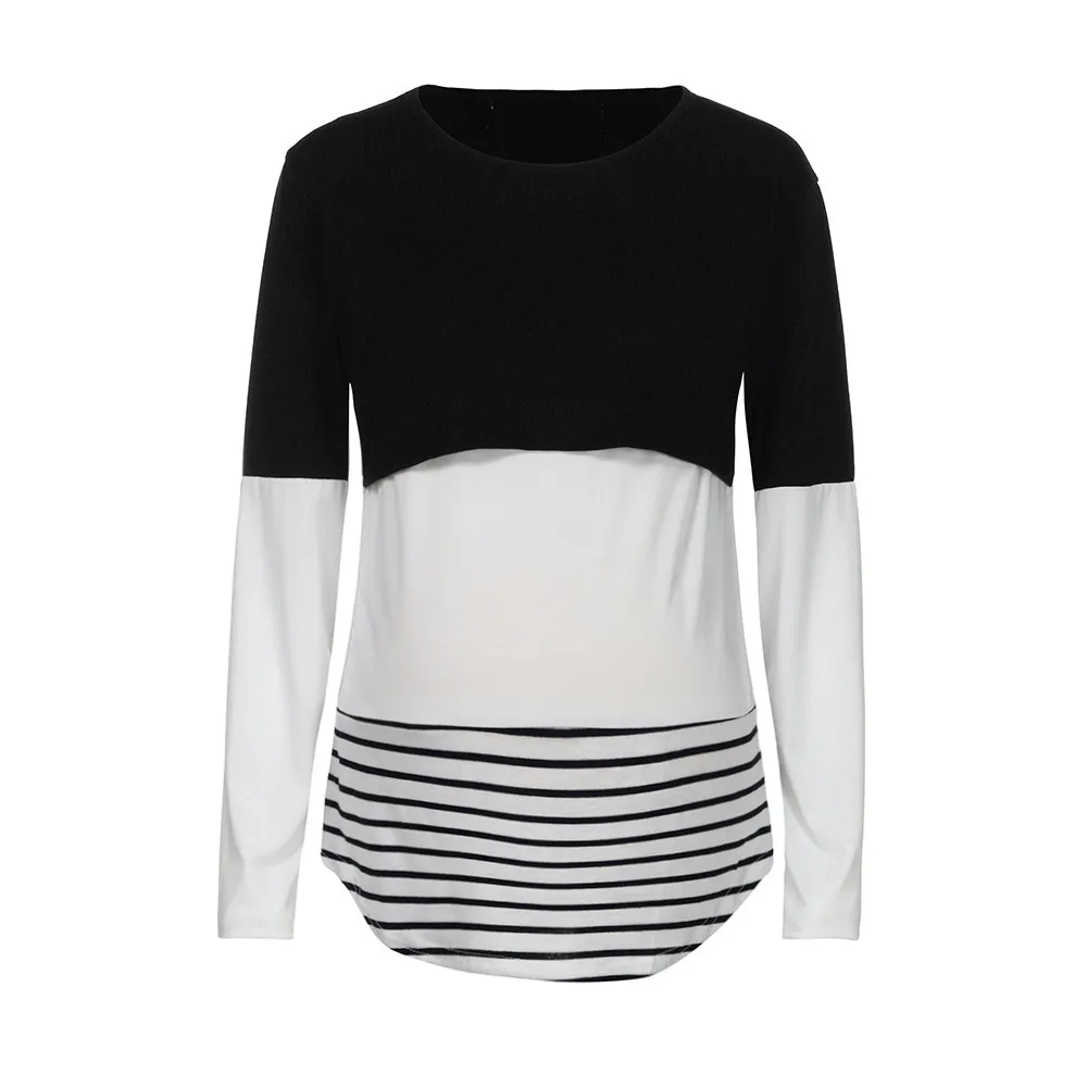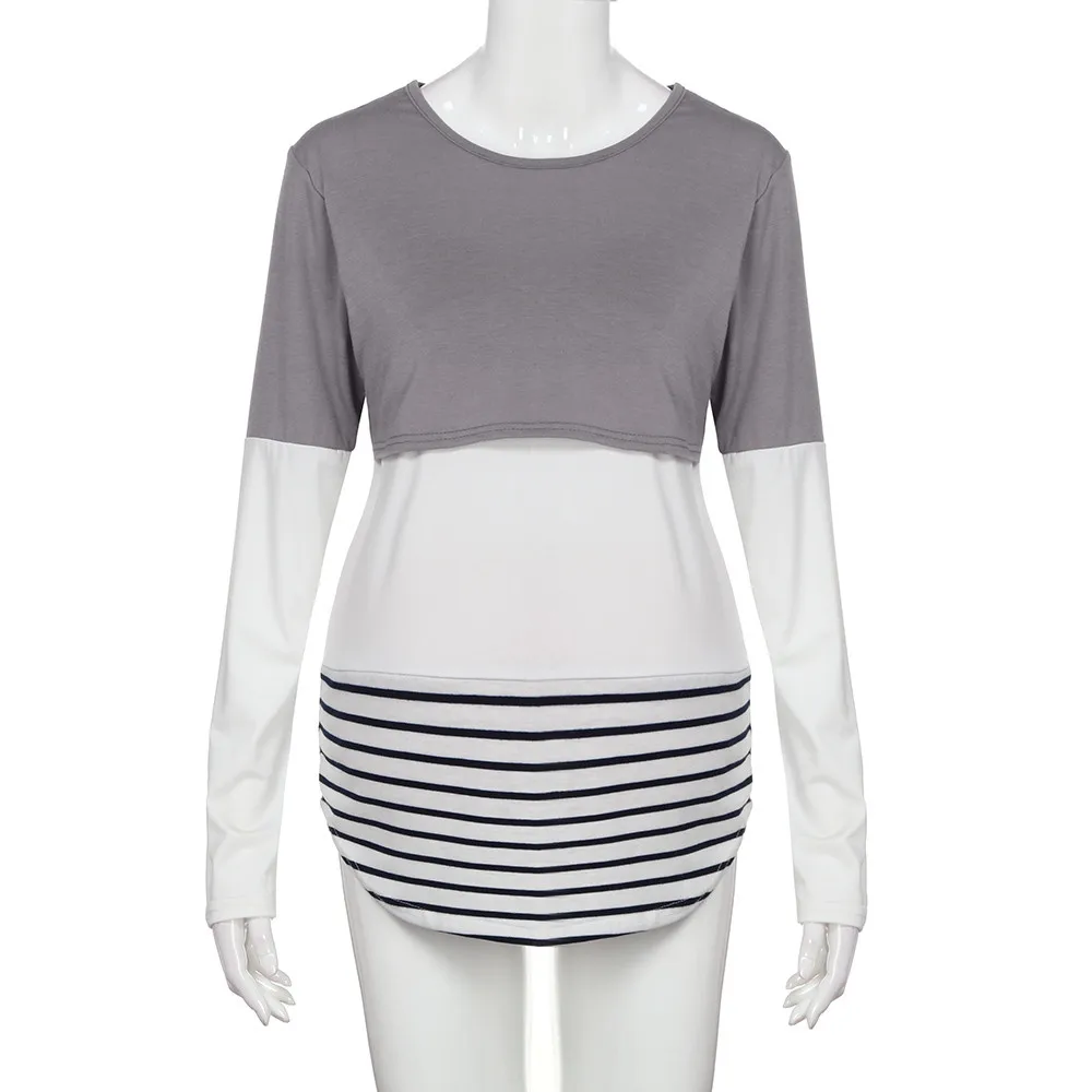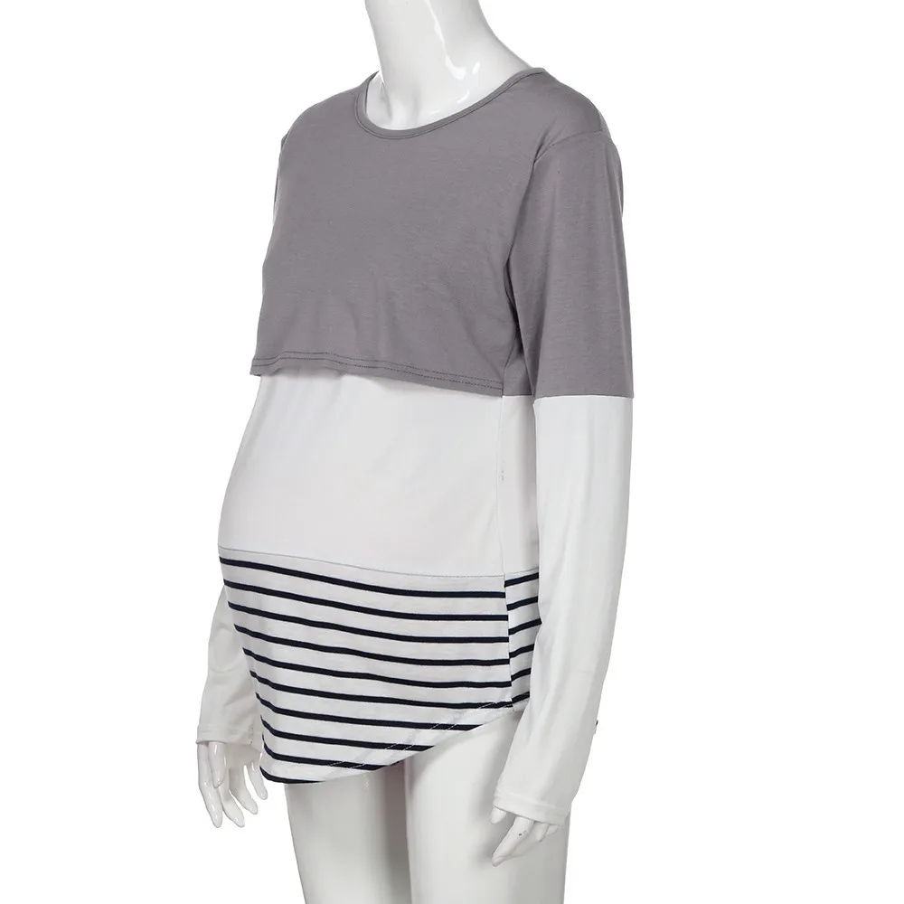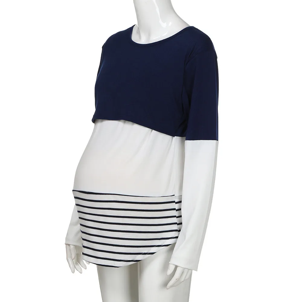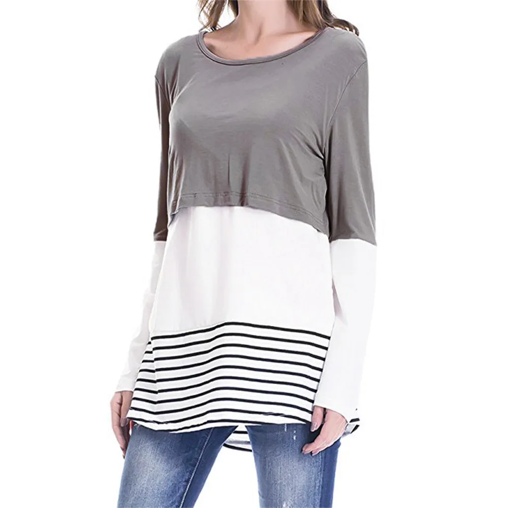 - Women Lace Splice Pregnant Casual Nursing Baby For Maternity Pajamas Blouse Tops Cotton Soft Pregnant Mother Breastfeeding Top