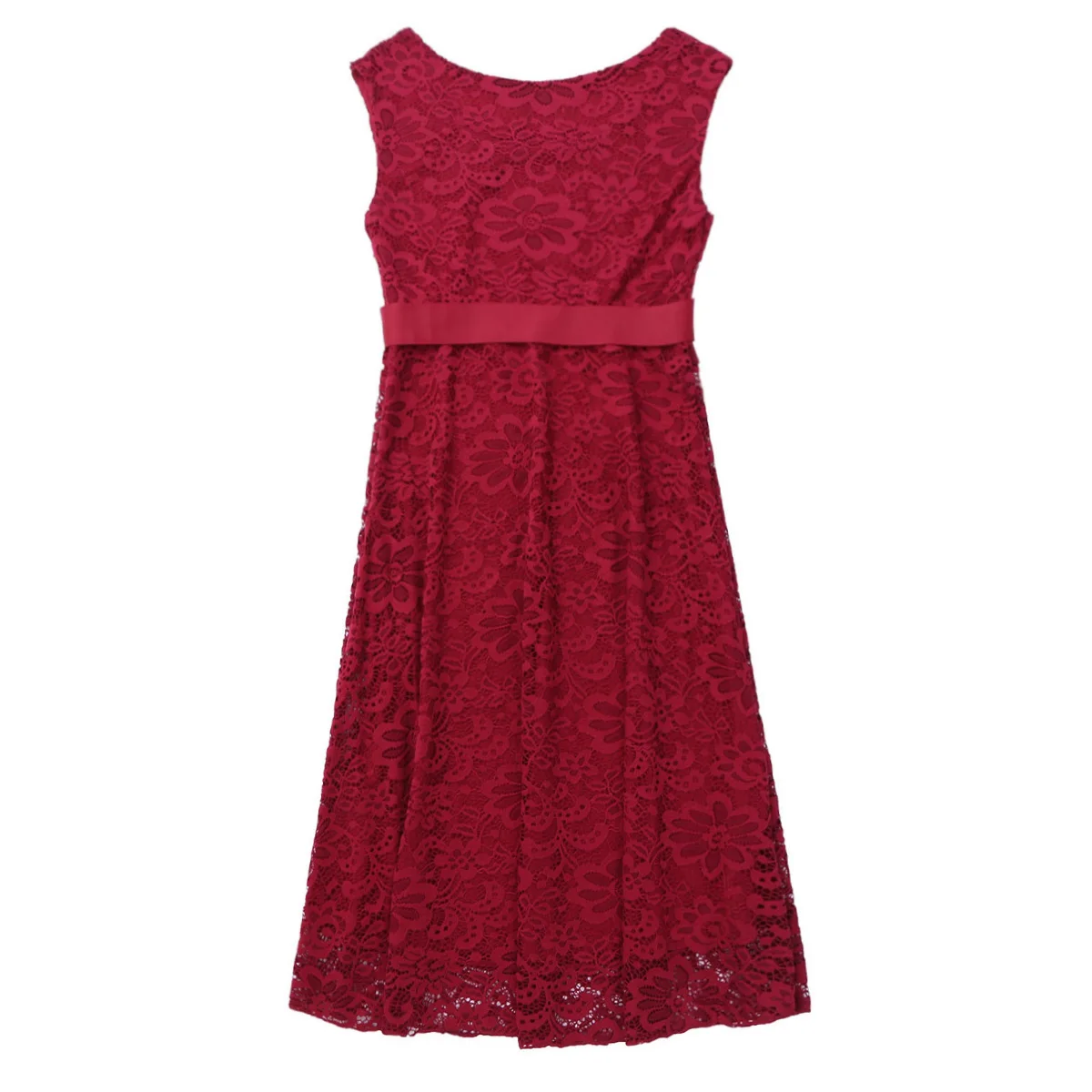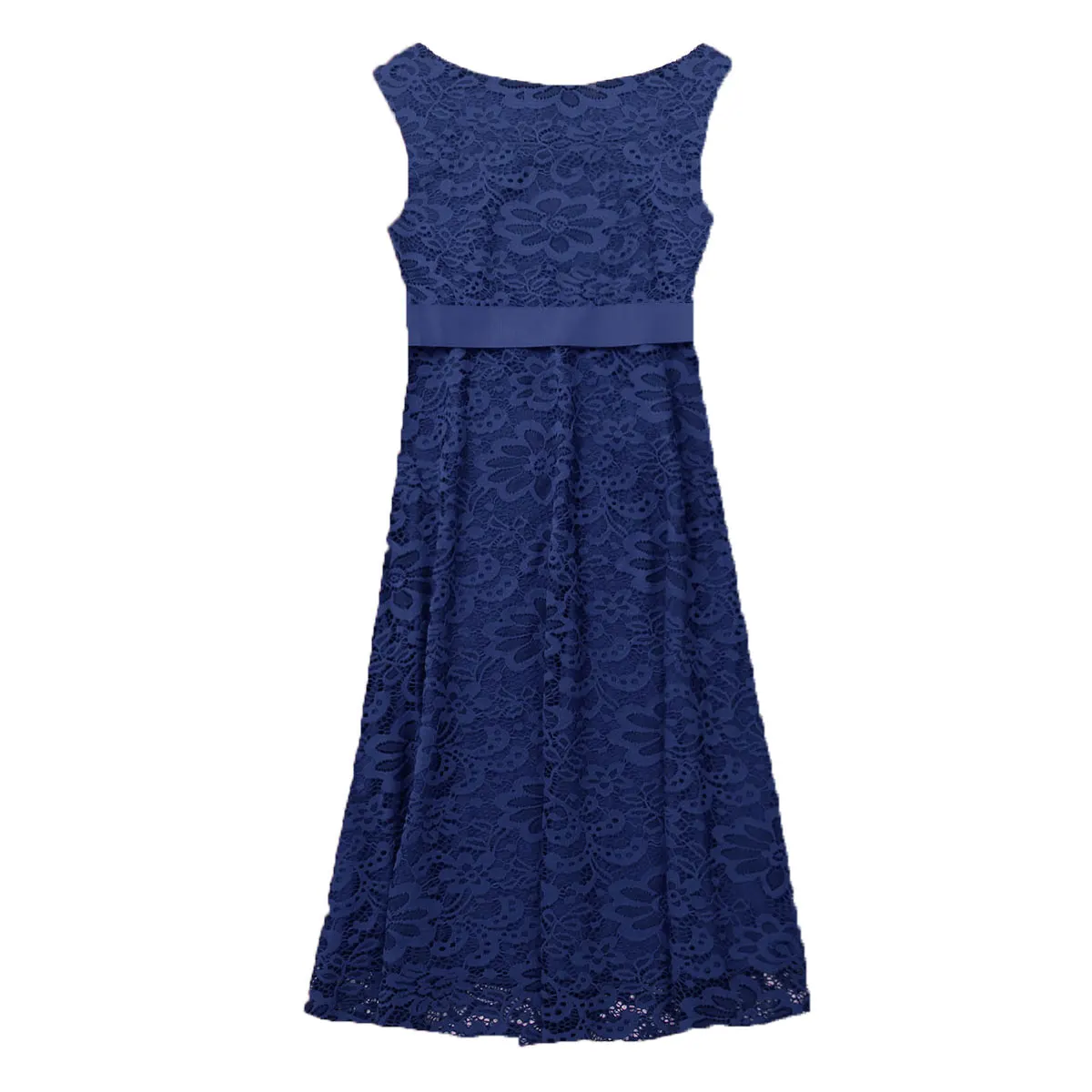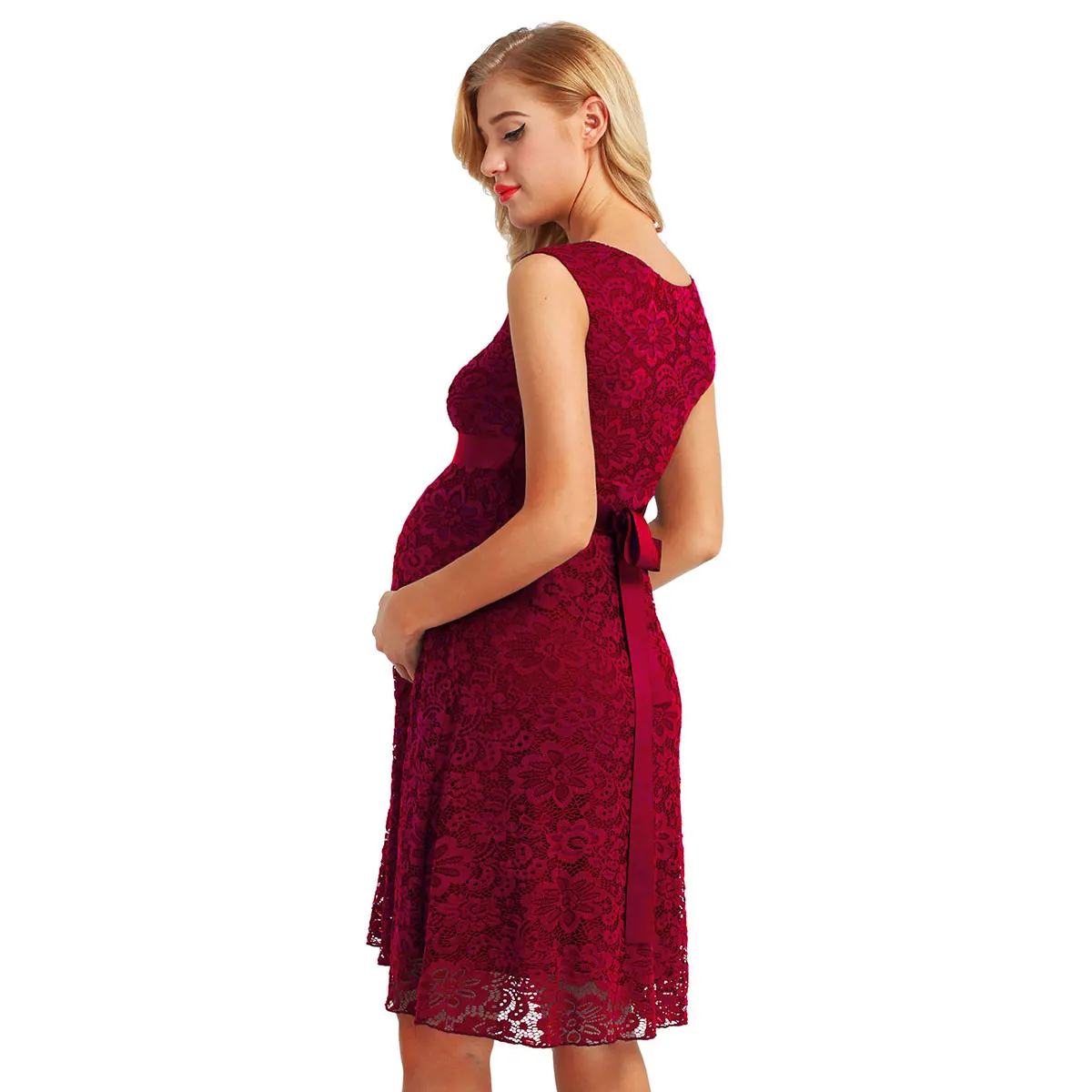 Women Maternity Elegant Floral Lace Overlay Sleeveless Baby Shower Party Cocktail Dress with Ribbon Belt for Maternity Clothing