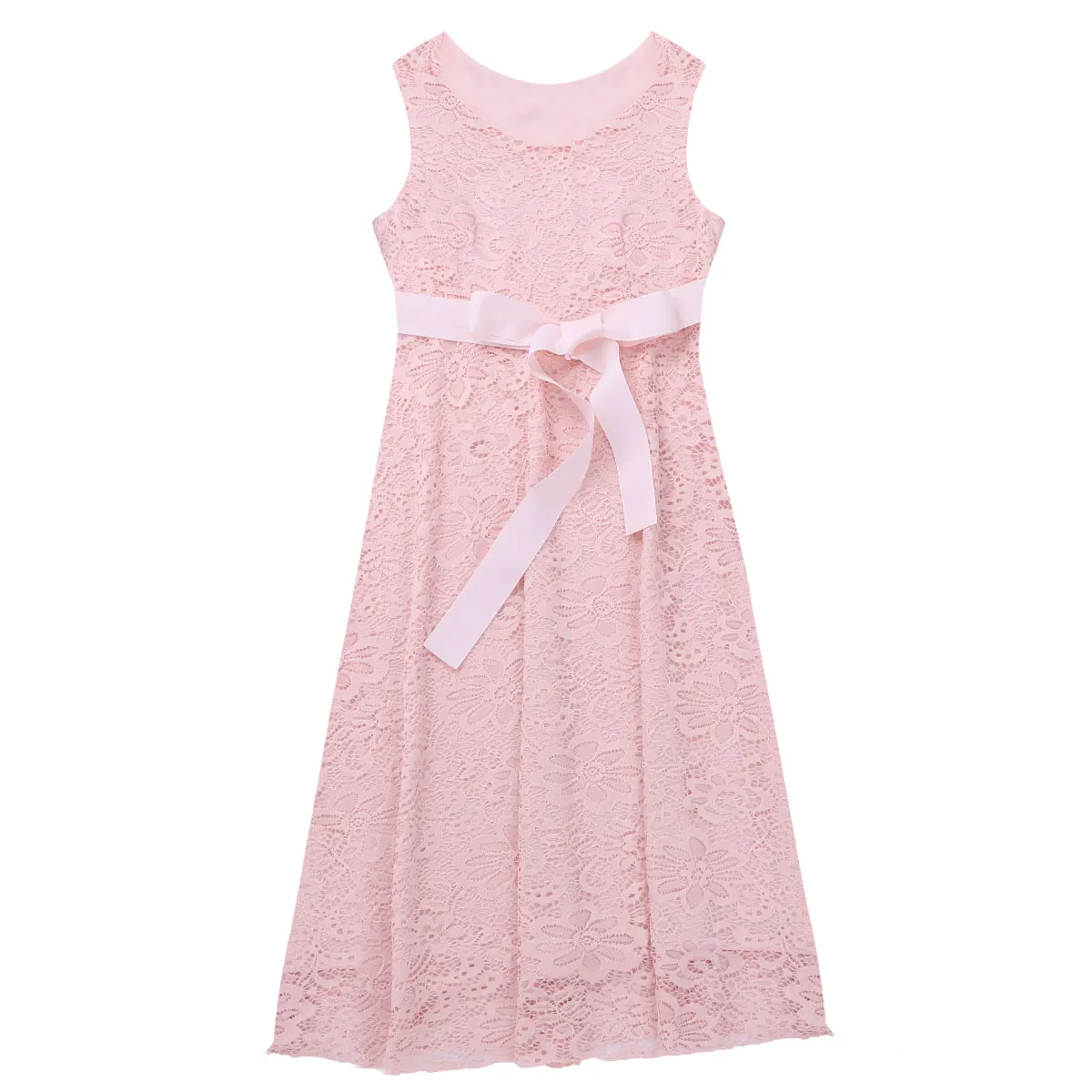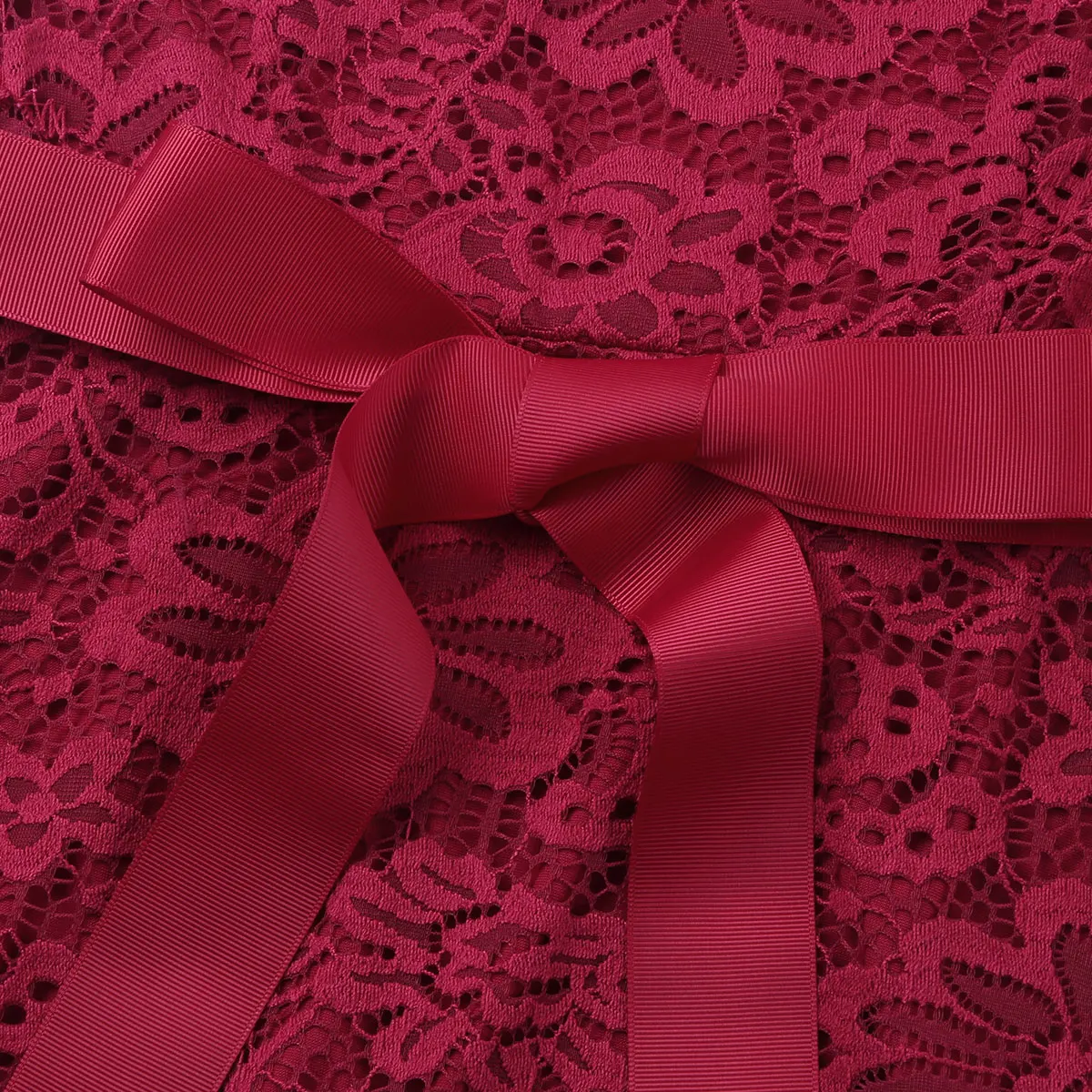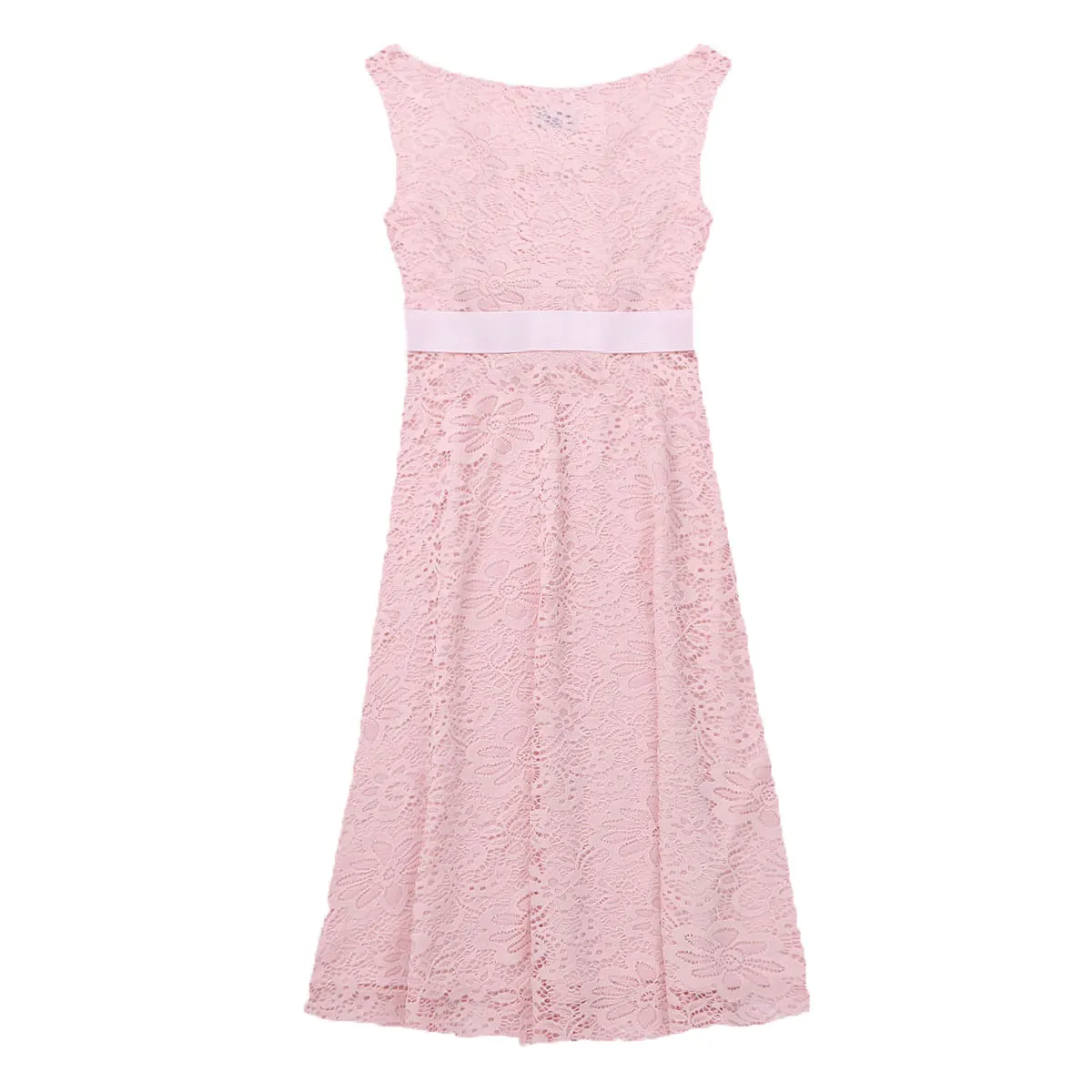 Women Maternity Elegant Floral Lace Overlay Sleeveless Baby Shower Party Cocktail Dress with Ribbon Belt for Maternity Clothing