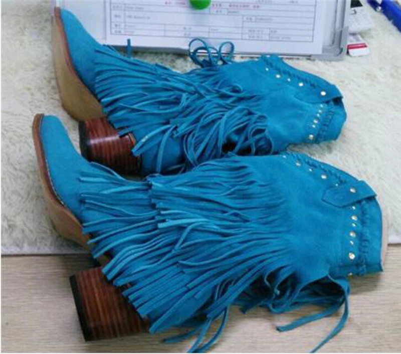 Name : Women Mid-calf Low Heel Bohemia Style Gladiator Motorcycle Boots Fringed Cowboy Boots Shoes Spring Autumn Women Tassel Boots