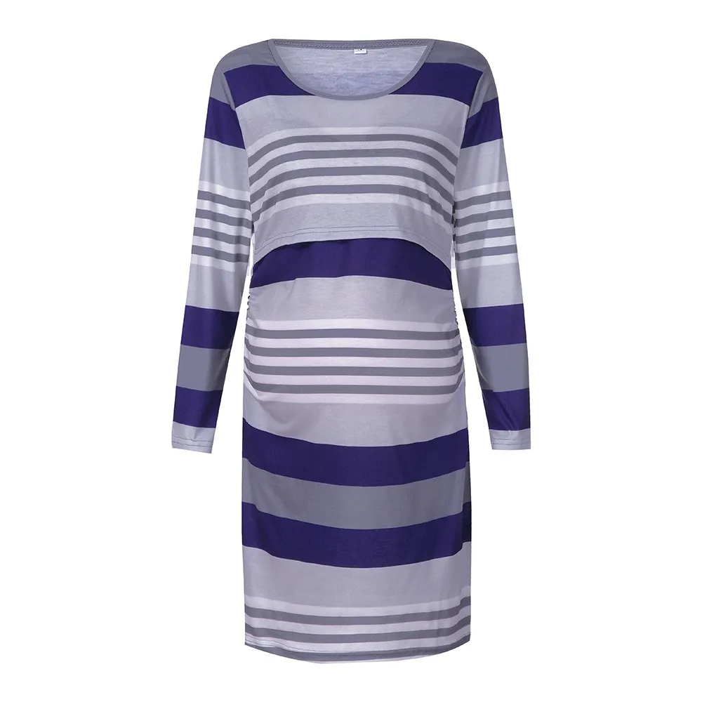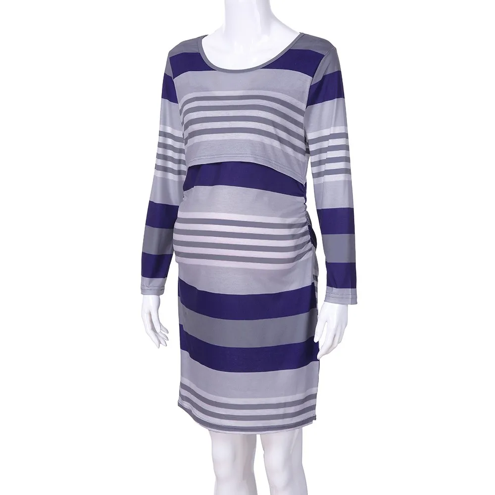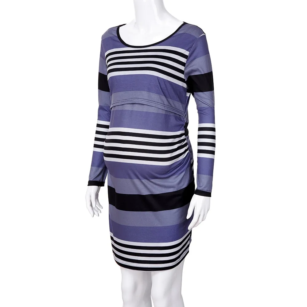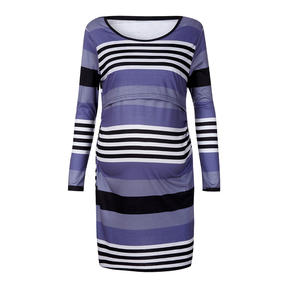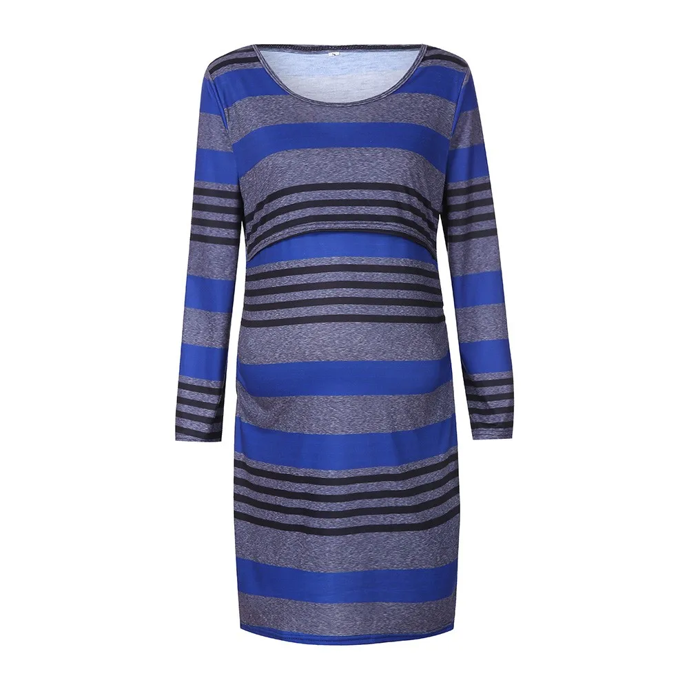 - Women Mom Pregnant Nursing Baby Maternity Striped Long Sleeve Dress Clothes Women Multi-Function Mother Breastfeeding Dress