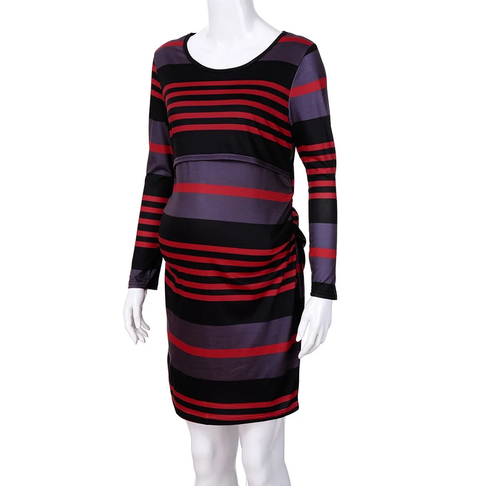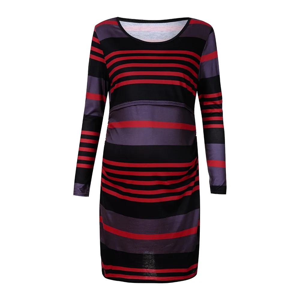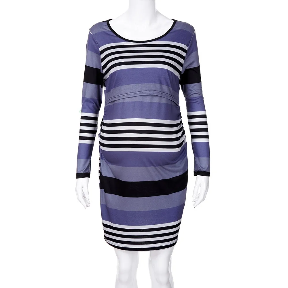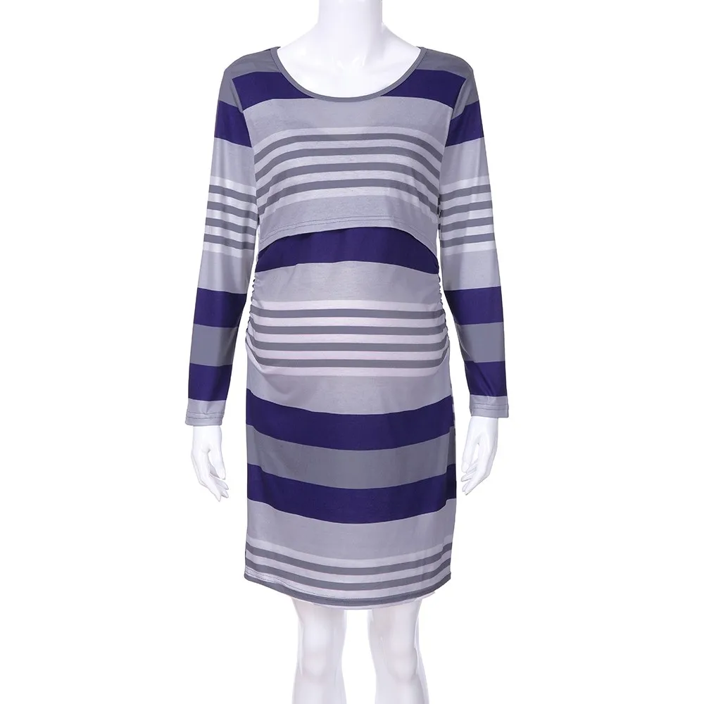 - Women Mom Pregnant Nursing Baby Maternity Striped Long Sleeve Dress Clothes Women Multi-Function Mother Breastfeeding Dress