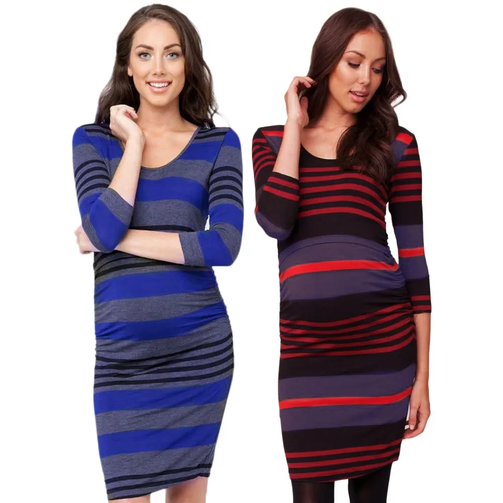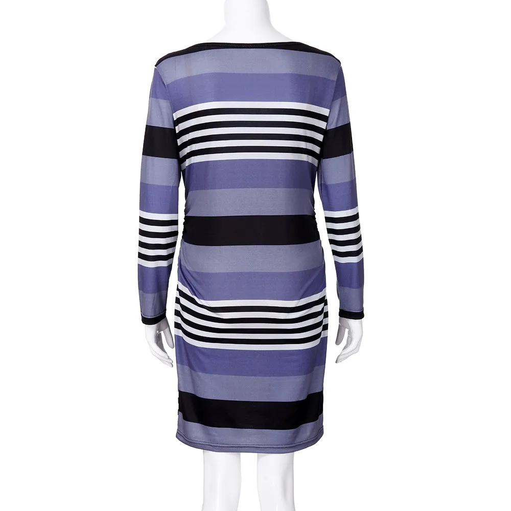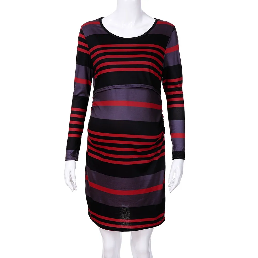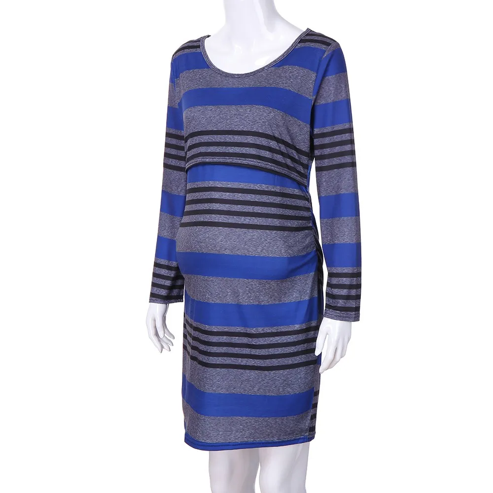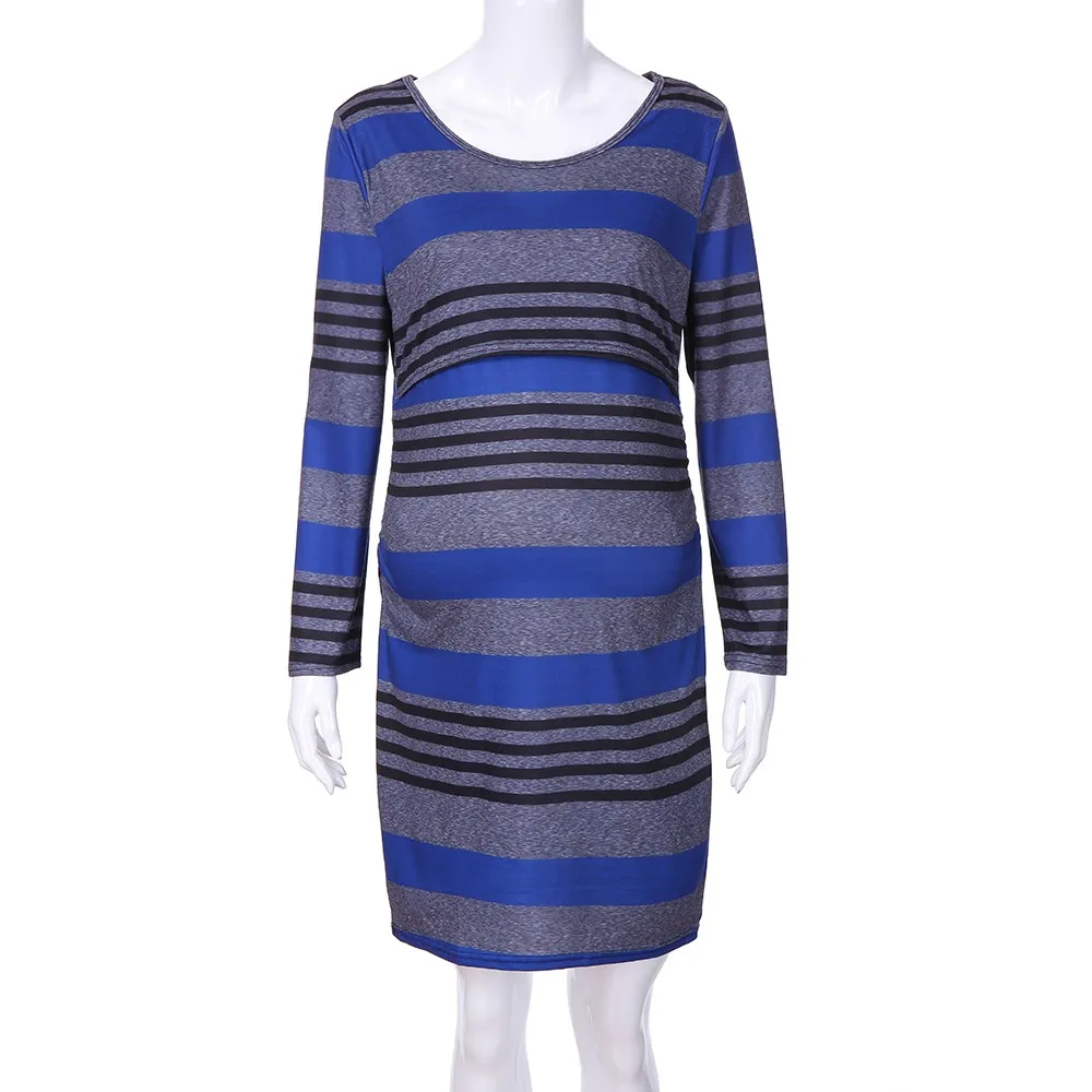 - Women Mom Pregnant Nursing Baby Maternity Striped Long Sleeve Dress Clothes Women Multi-Function Mother Breastfeeding Dress