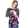 Women Mom Pregnant Nursing Maternity Clothes Long Sleeved Striped Floral Print Blouse Multi-Functional Breastfeeding Clothes