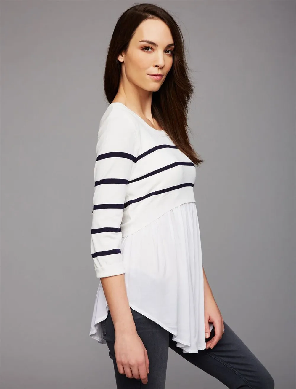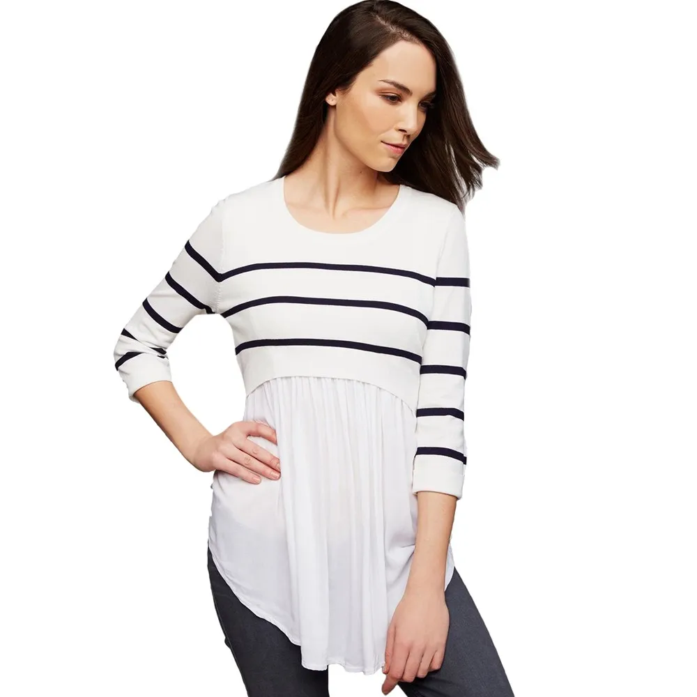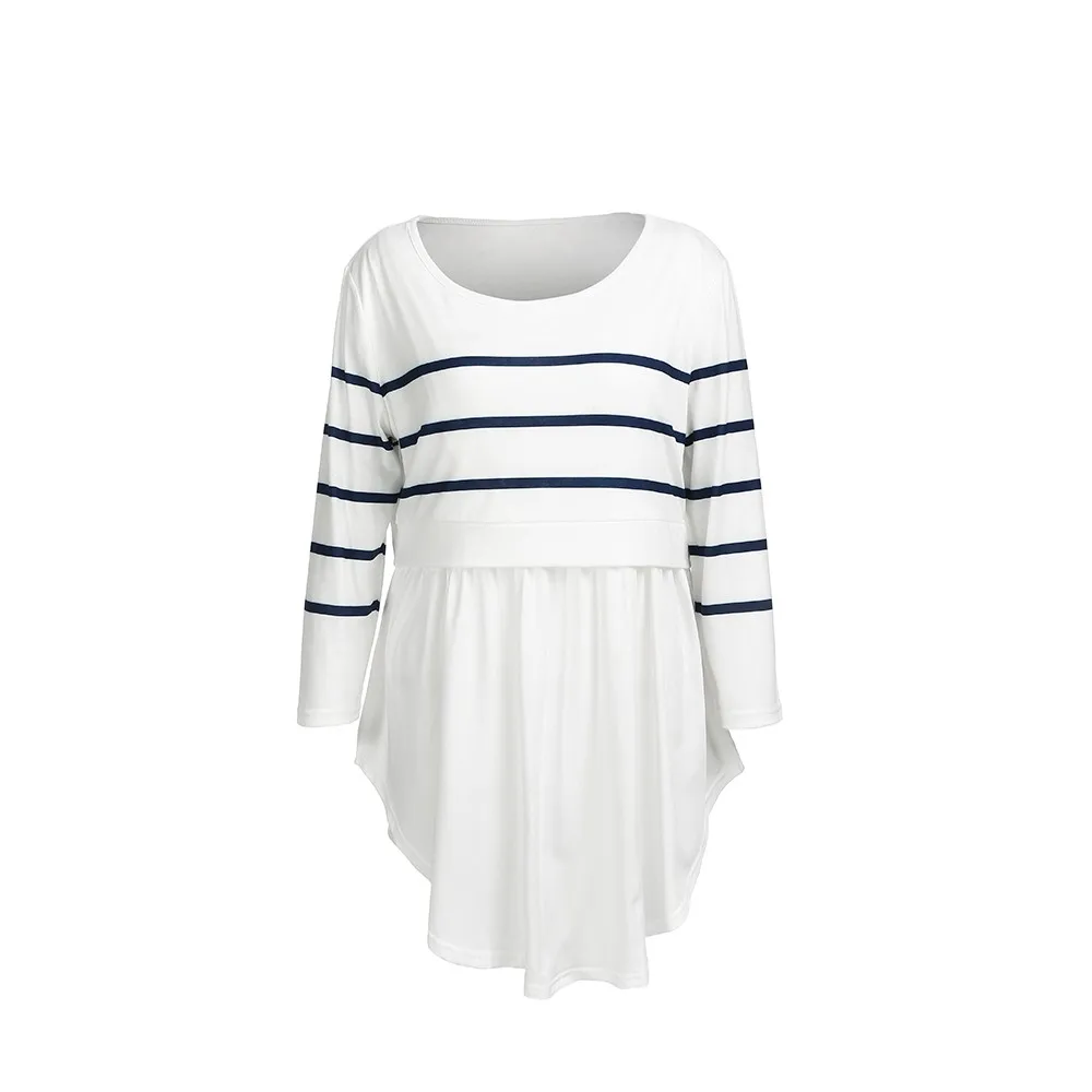 Women Multi-Functional Breastfeeding Pregnant T-Shirt Clothes Mom Pregnant Nursing Maternity Long Sleeved Striped Blouse Clothes