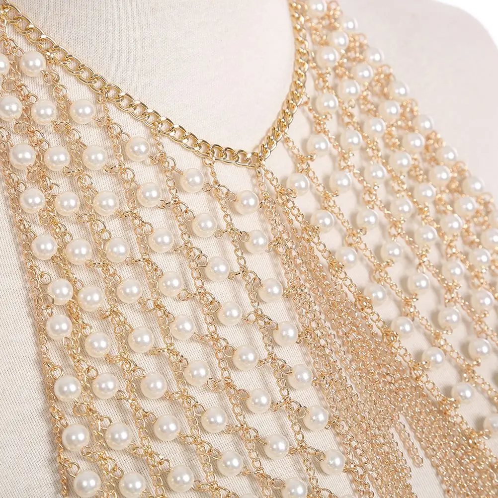Women Nightclub Party Bra Chain Sexy Harness Bikini Body Chain Clun Wear (Gold)