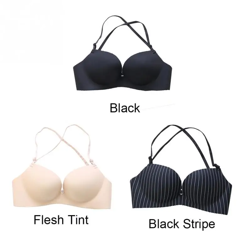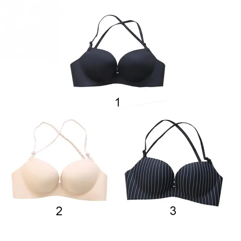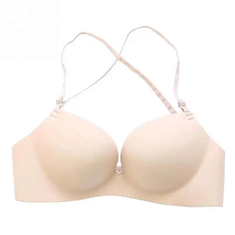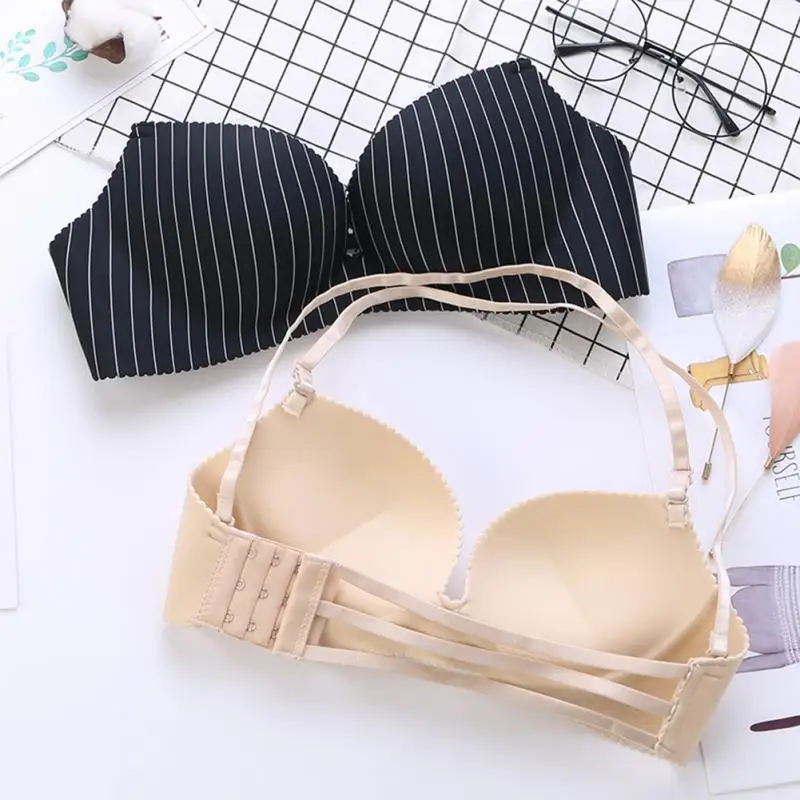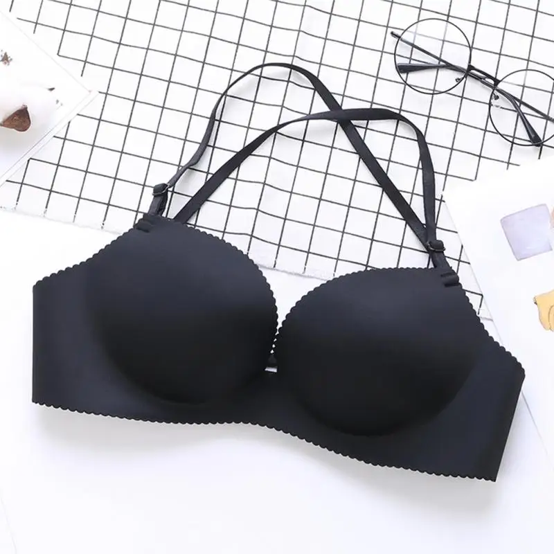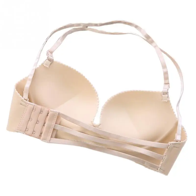 Women Nylon detachable shoulder strap Underwear Halter neck No Steel Ring Sexy Adjustable Lingerie Bra Girls lady