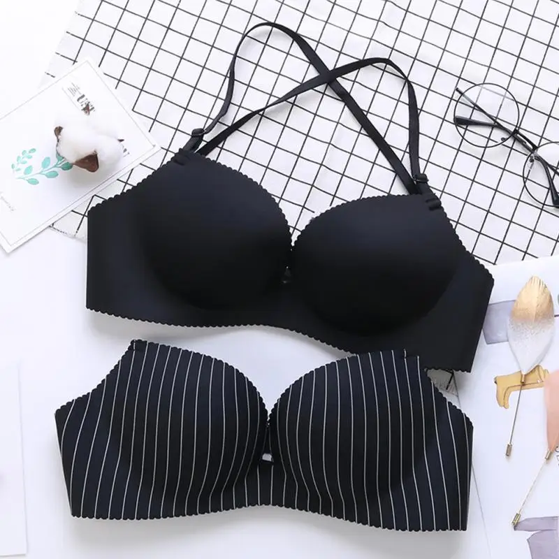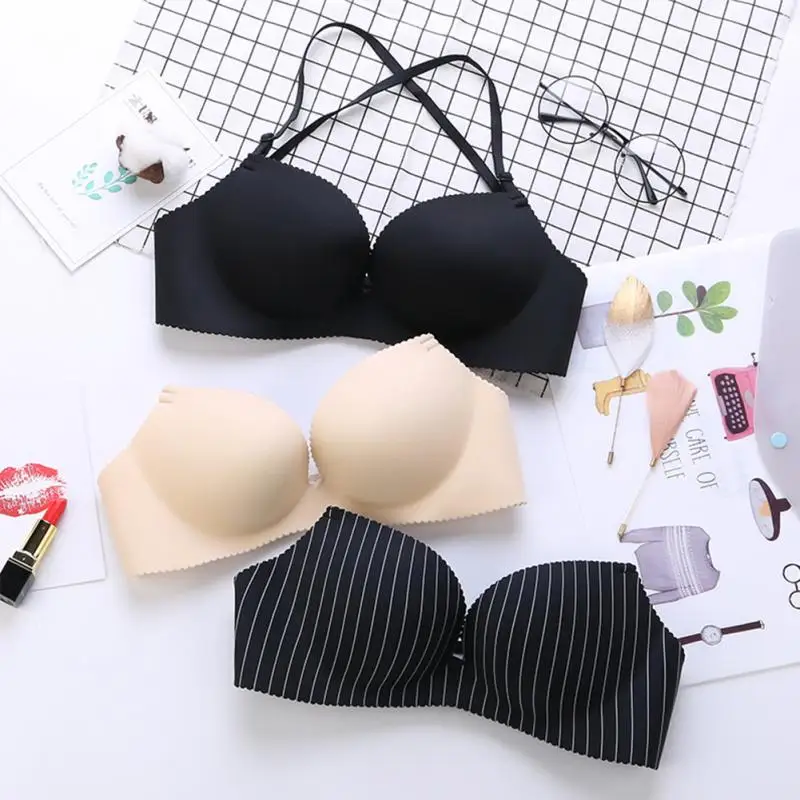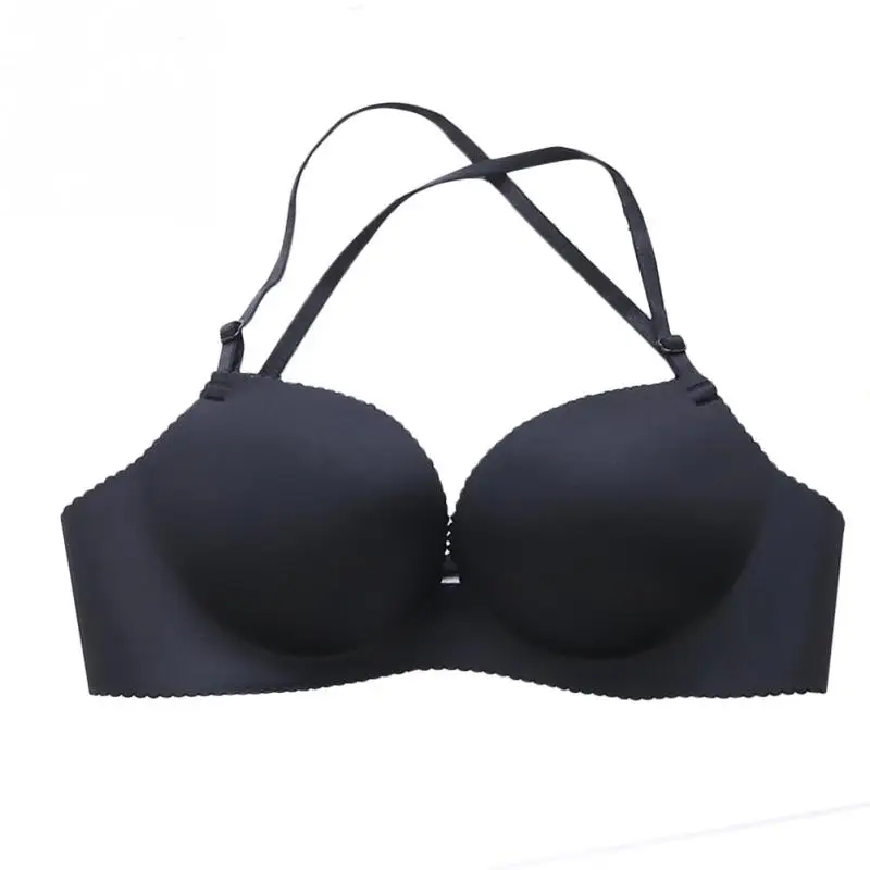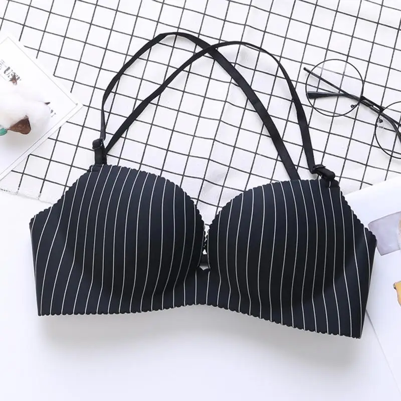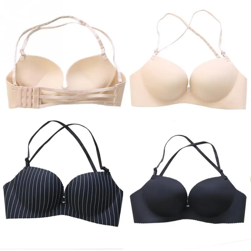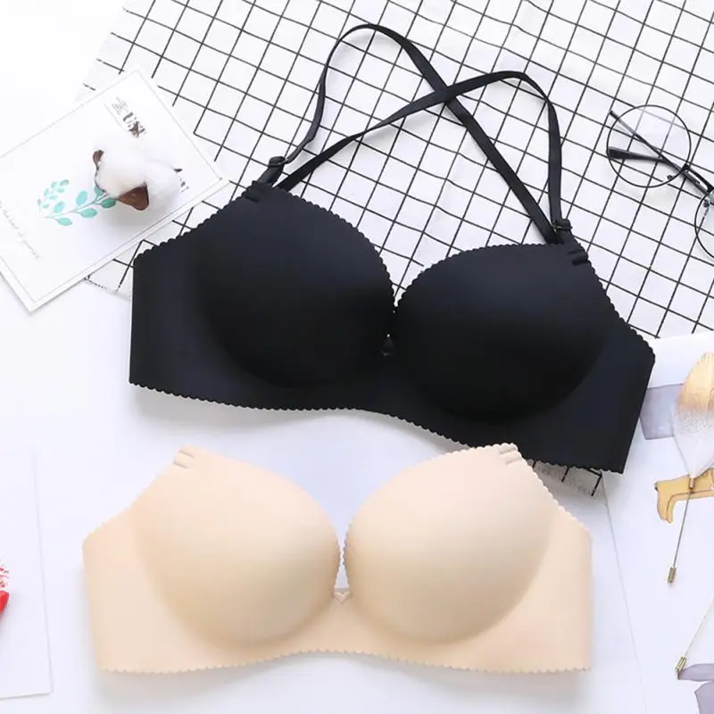 Women Nylon detachable shoulder strap Underwear Halter neck No Steel Ring Sexy Adjustable Lingerie Bra Girls lady