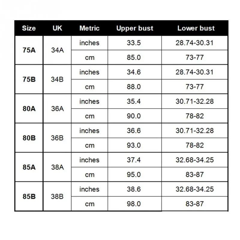 Size Upper bust Lower bust UK size