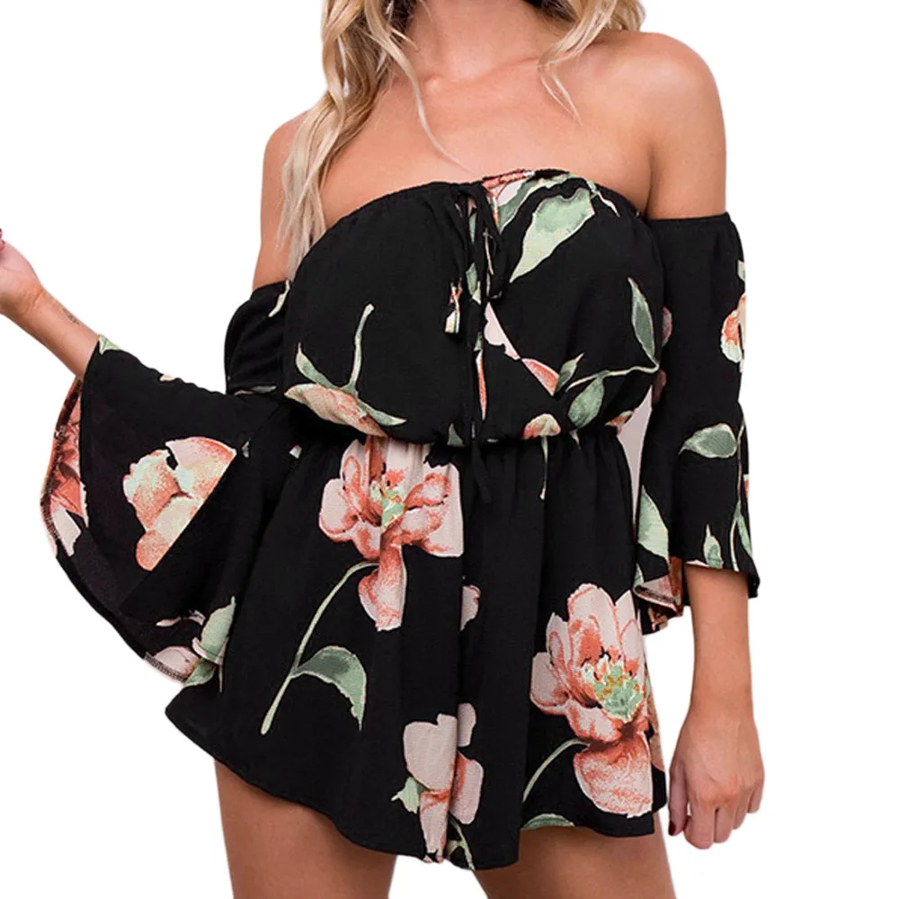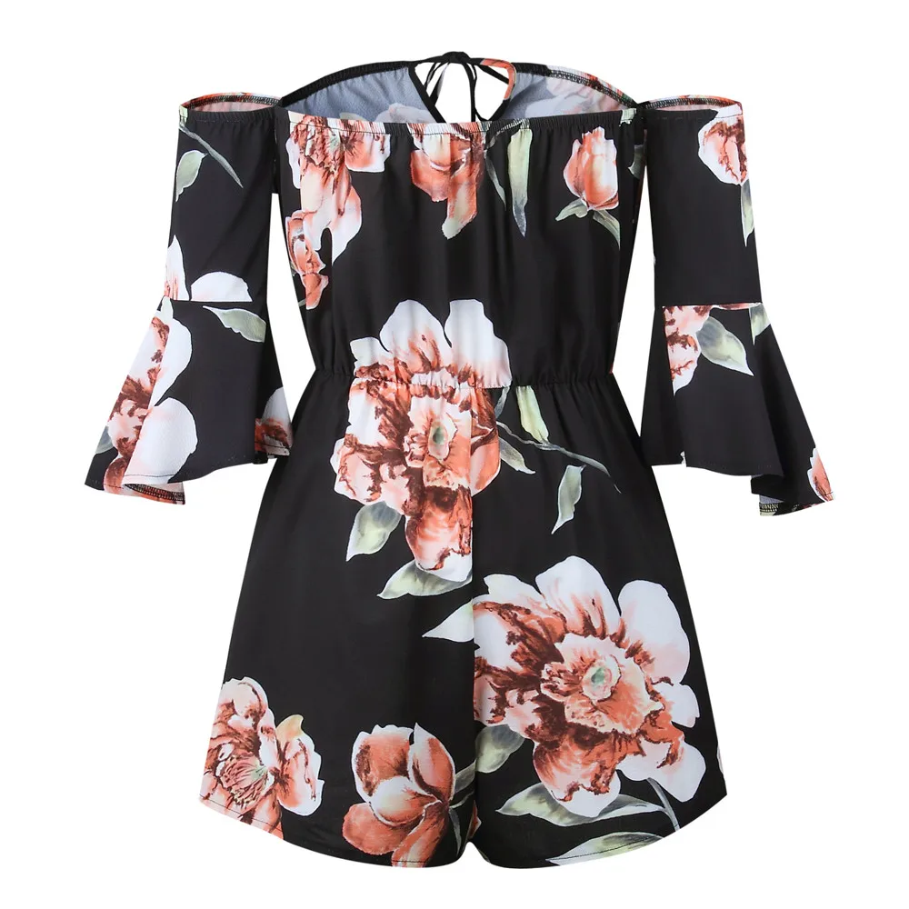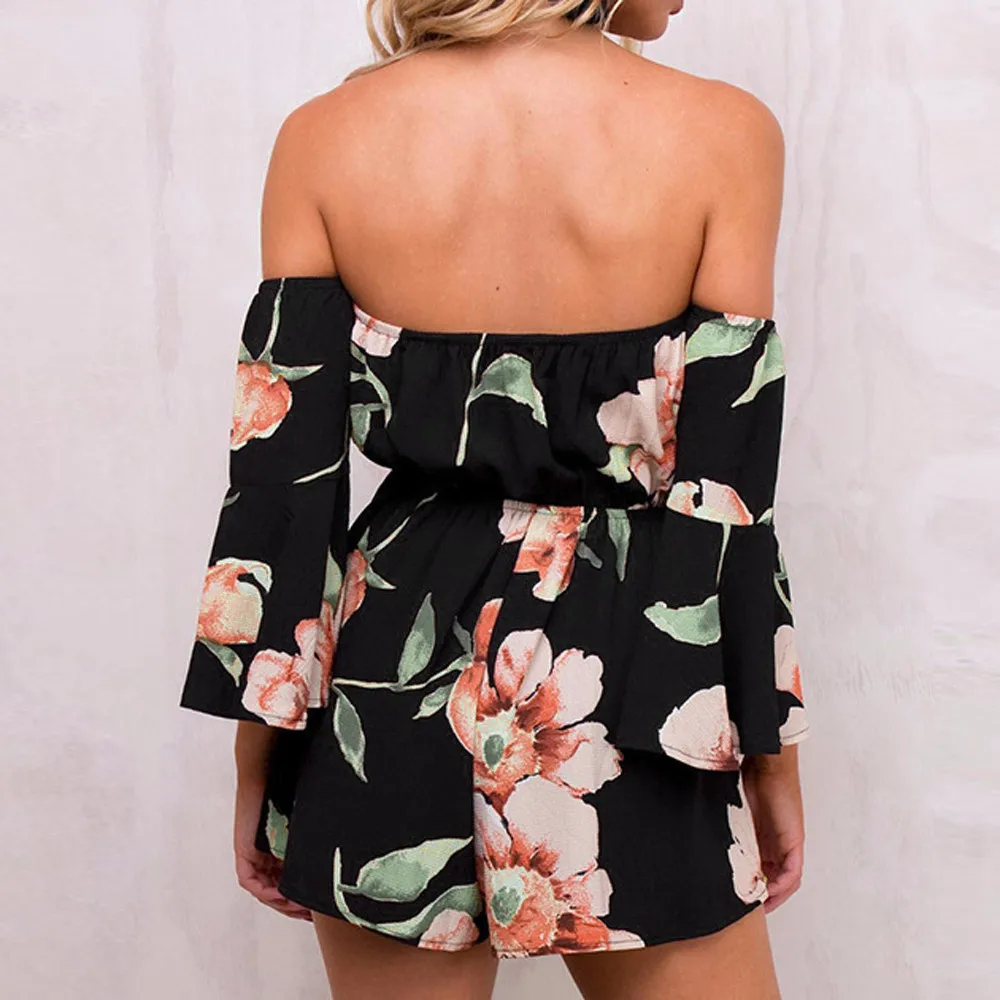 Women Off Shoulder Belt Backless Sexy Rompers Print Floral Jumpsuit Summer Beach Bohe Chiffon jumpsuits for women 2018 A20