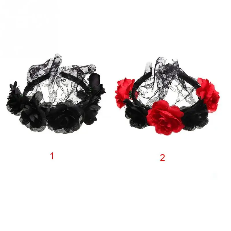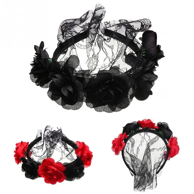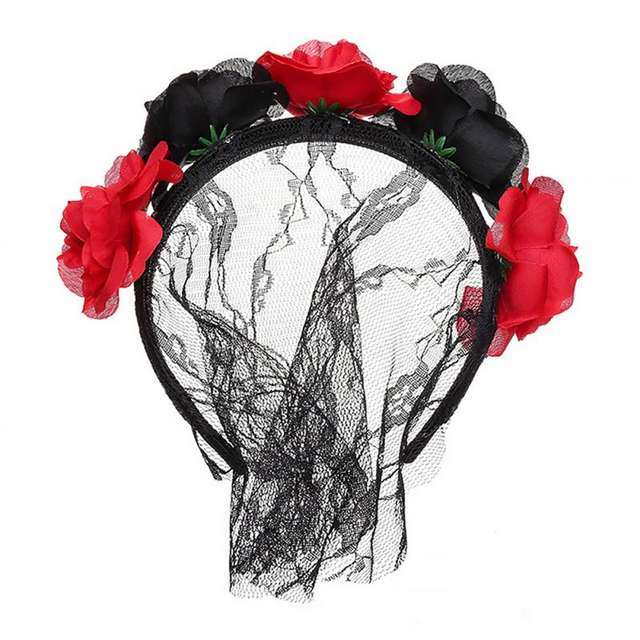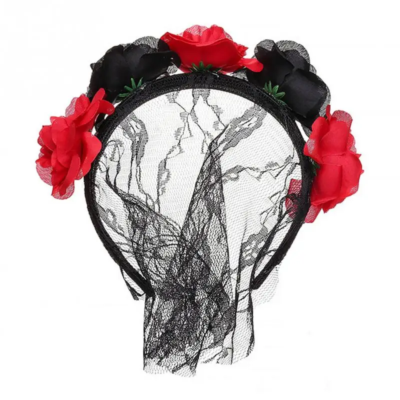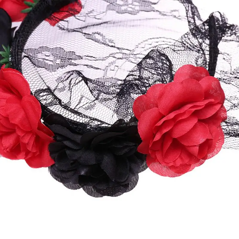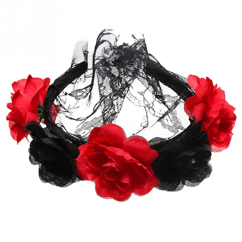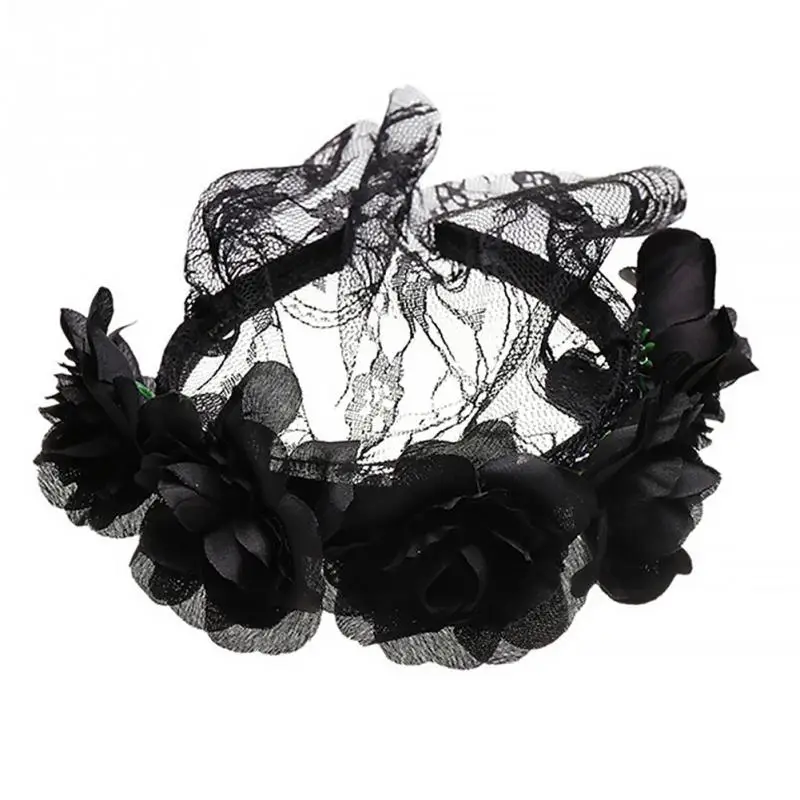Women Party Ball Mask Hair Accessories Photography Props Artificial Rose Halloween Headband With Veil Hair Band festival wear