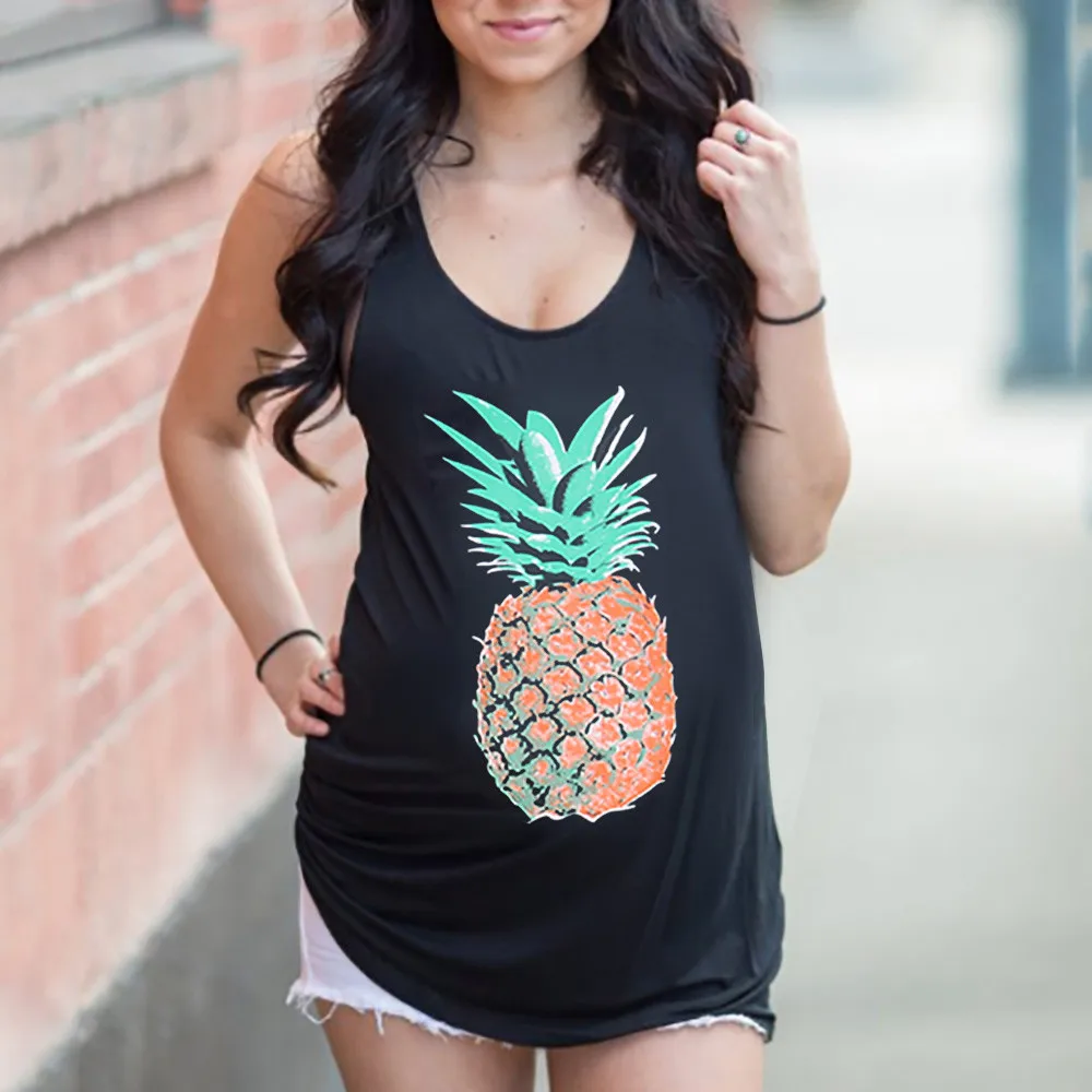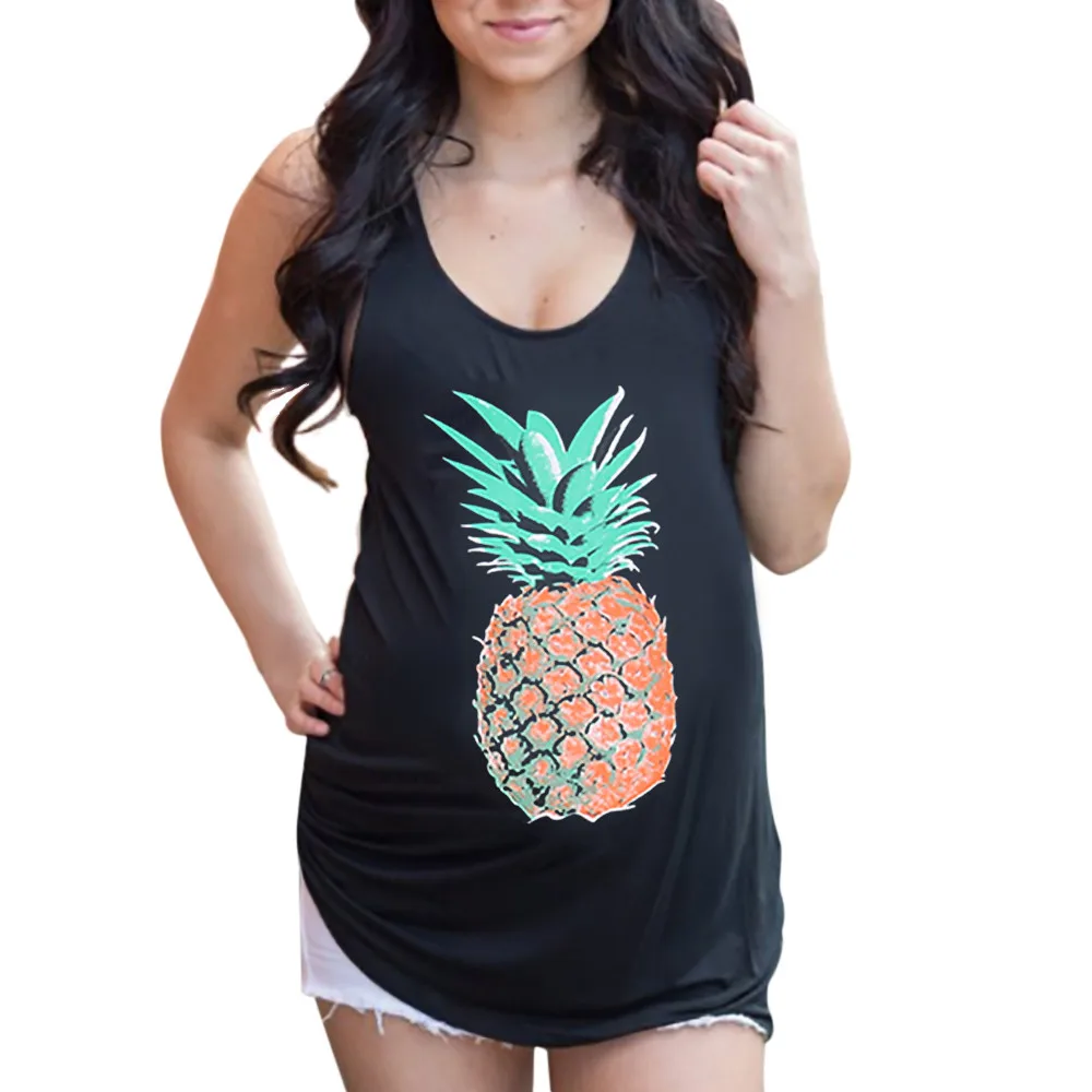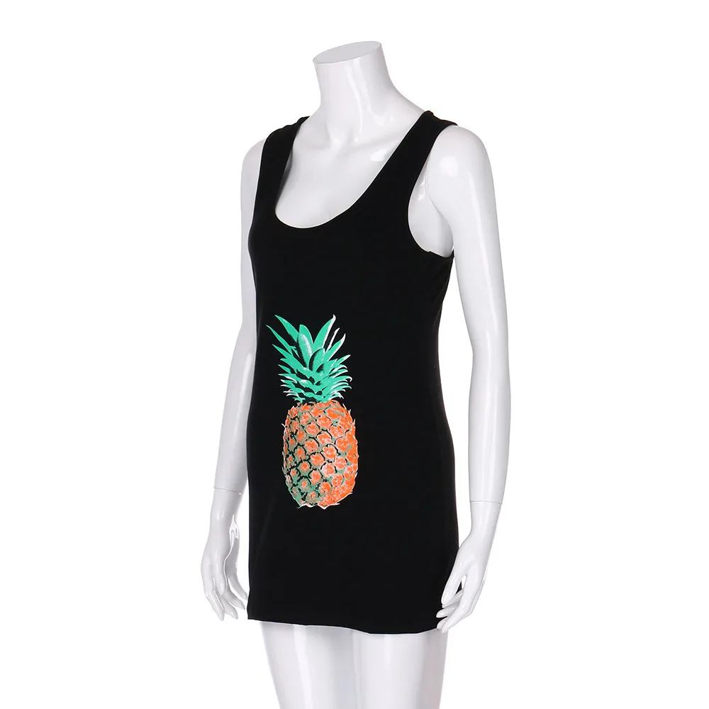 Women Pineapple Print Maternity Pregnant O-Neck Sleeveless Vest Tank Blouse Tops Shirt Sexy Comfortable Maternity Clothing Tops