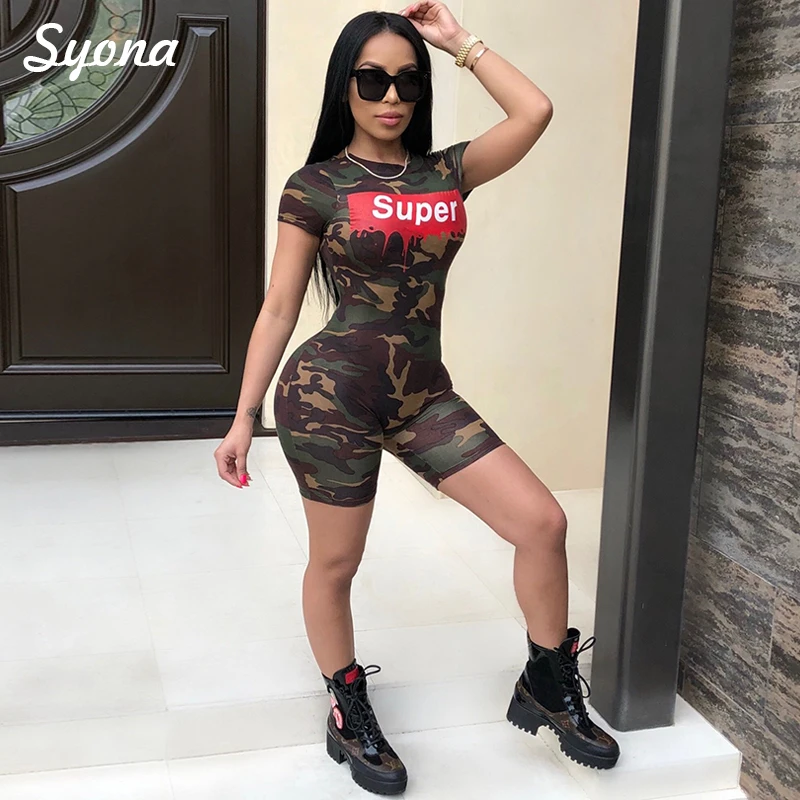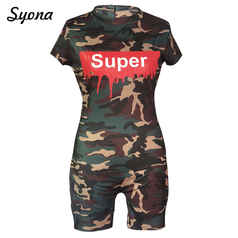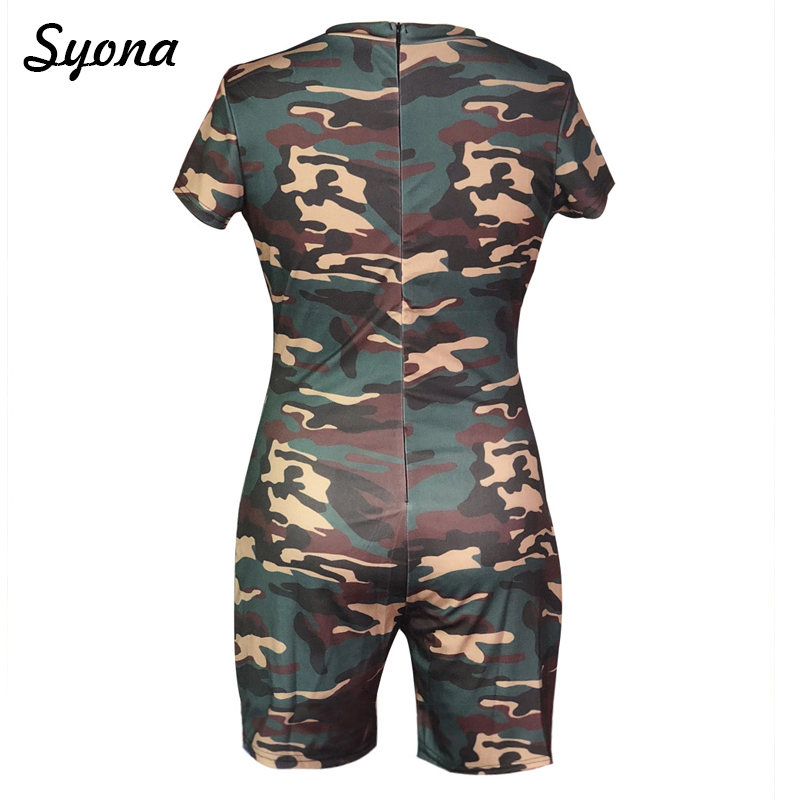 Women Playsuit 2018 CAMOUFLAGE JUMPSUIT Stretch Romper Shorts Ladies Overalls Slim Short Sleeve Summer Combishort Bodycon Casual