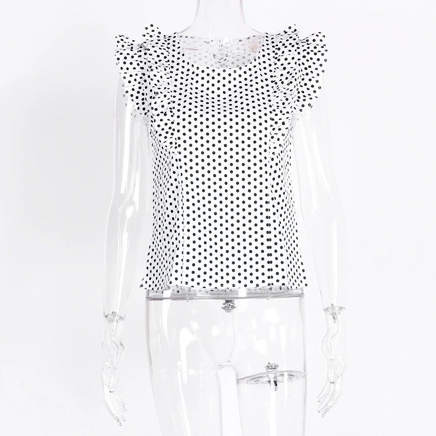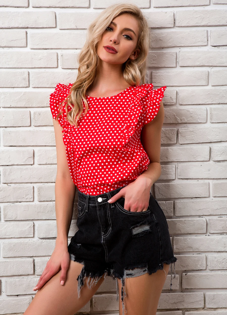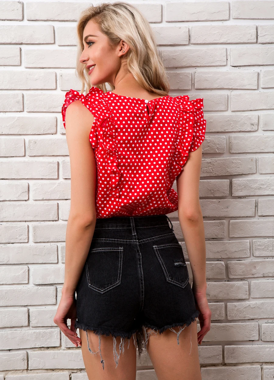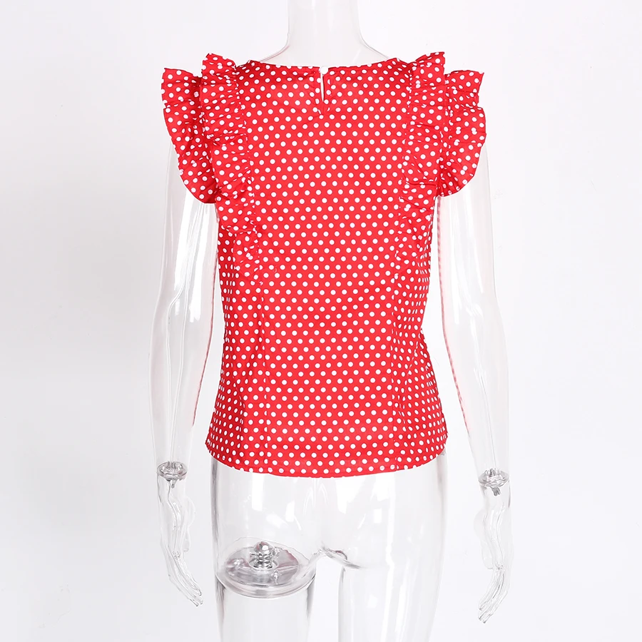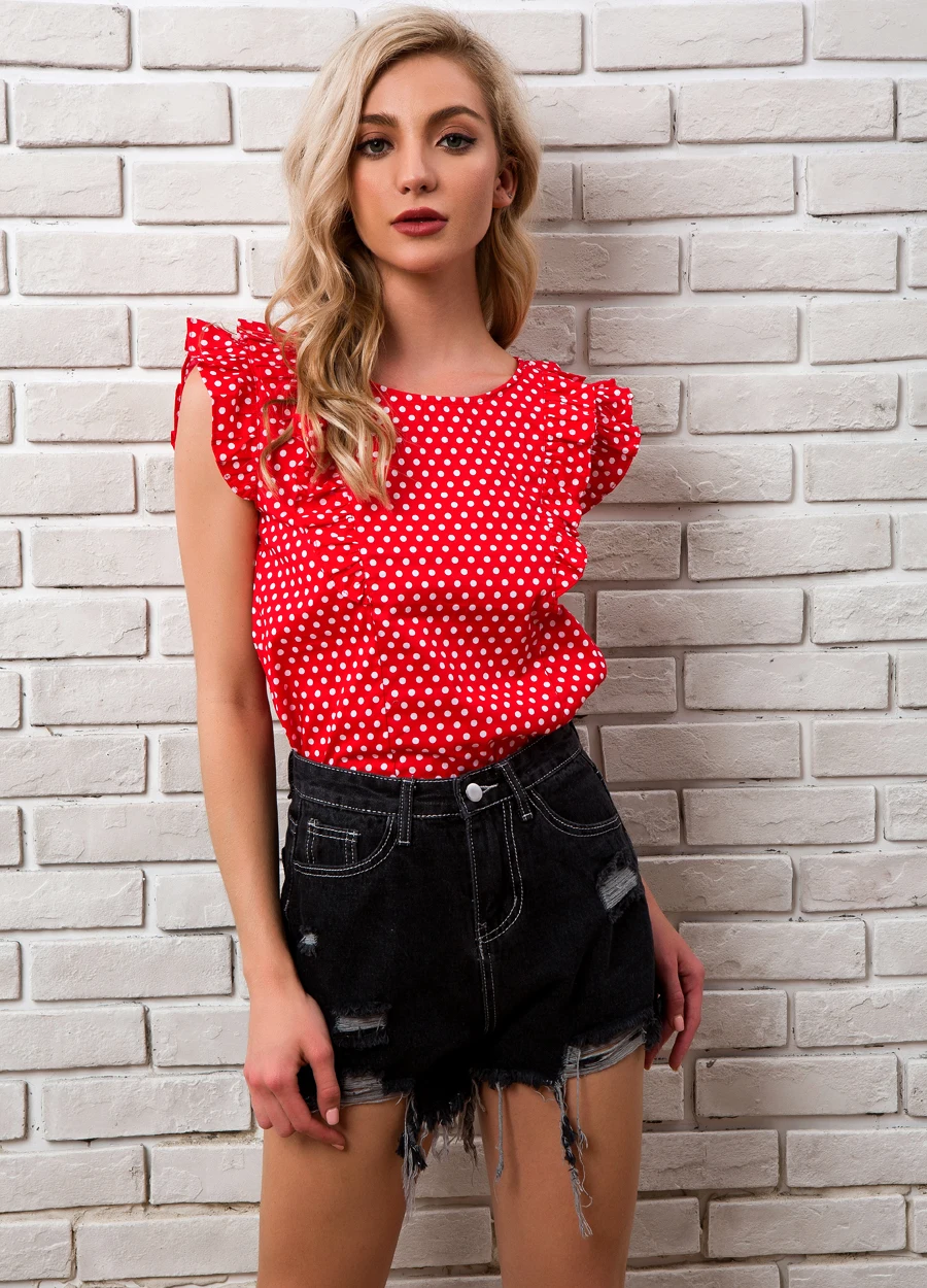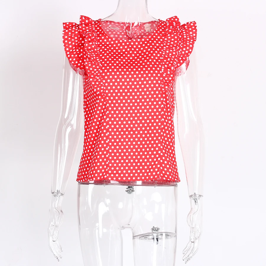 Women Polka Dot Blouse Summer 2018 New Arrivals O-neck Ruffle Casual Tops Ladies Chiffon Red Vintage Womens Tops And Blouses