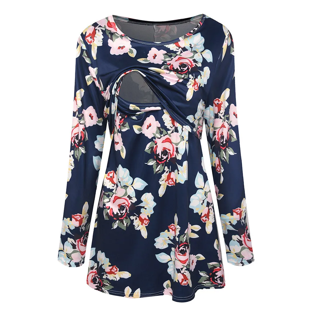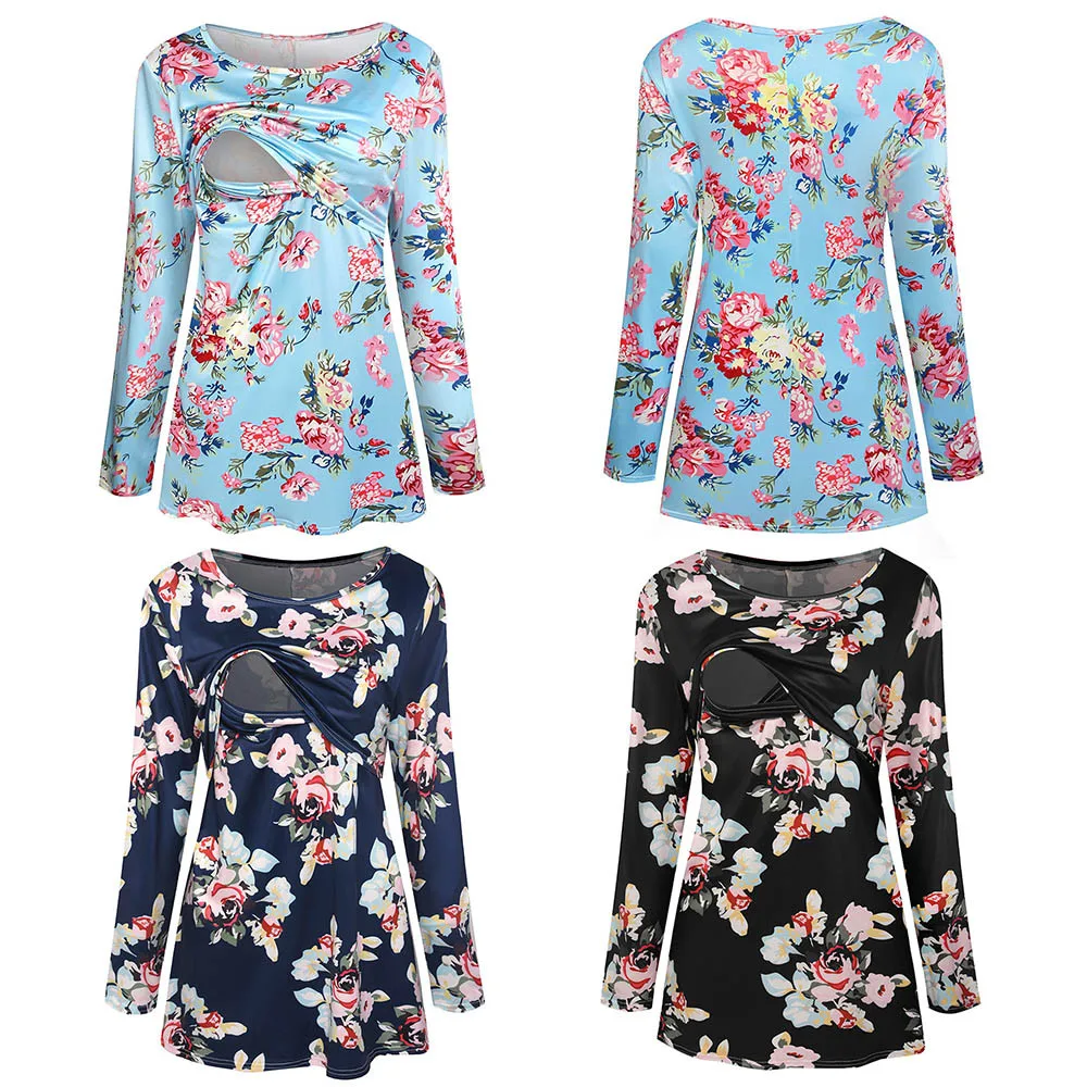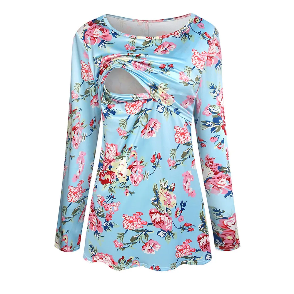 Women Pregnancy Clothes Maternity Clothing Pregnant Nursing Baby Wrinkle Long Sleeve Floral Print Top Clothes for Pregnant Women