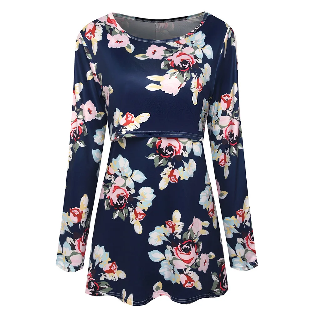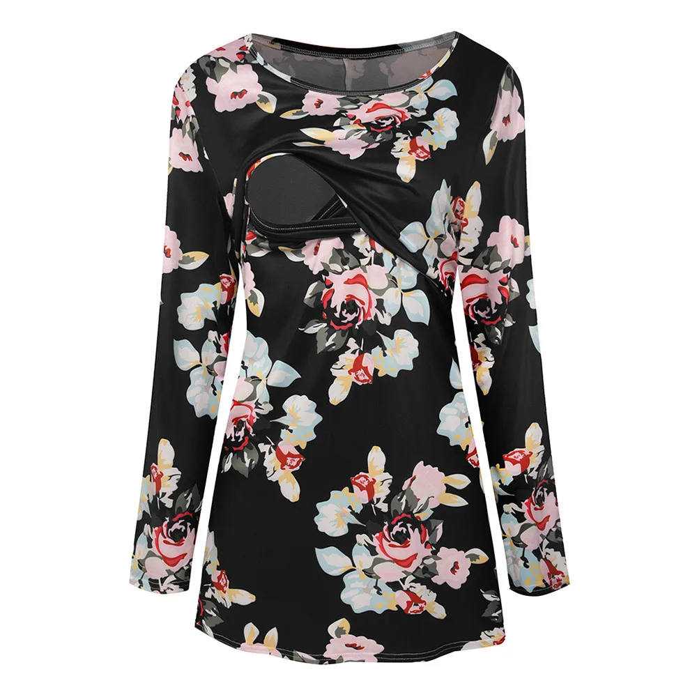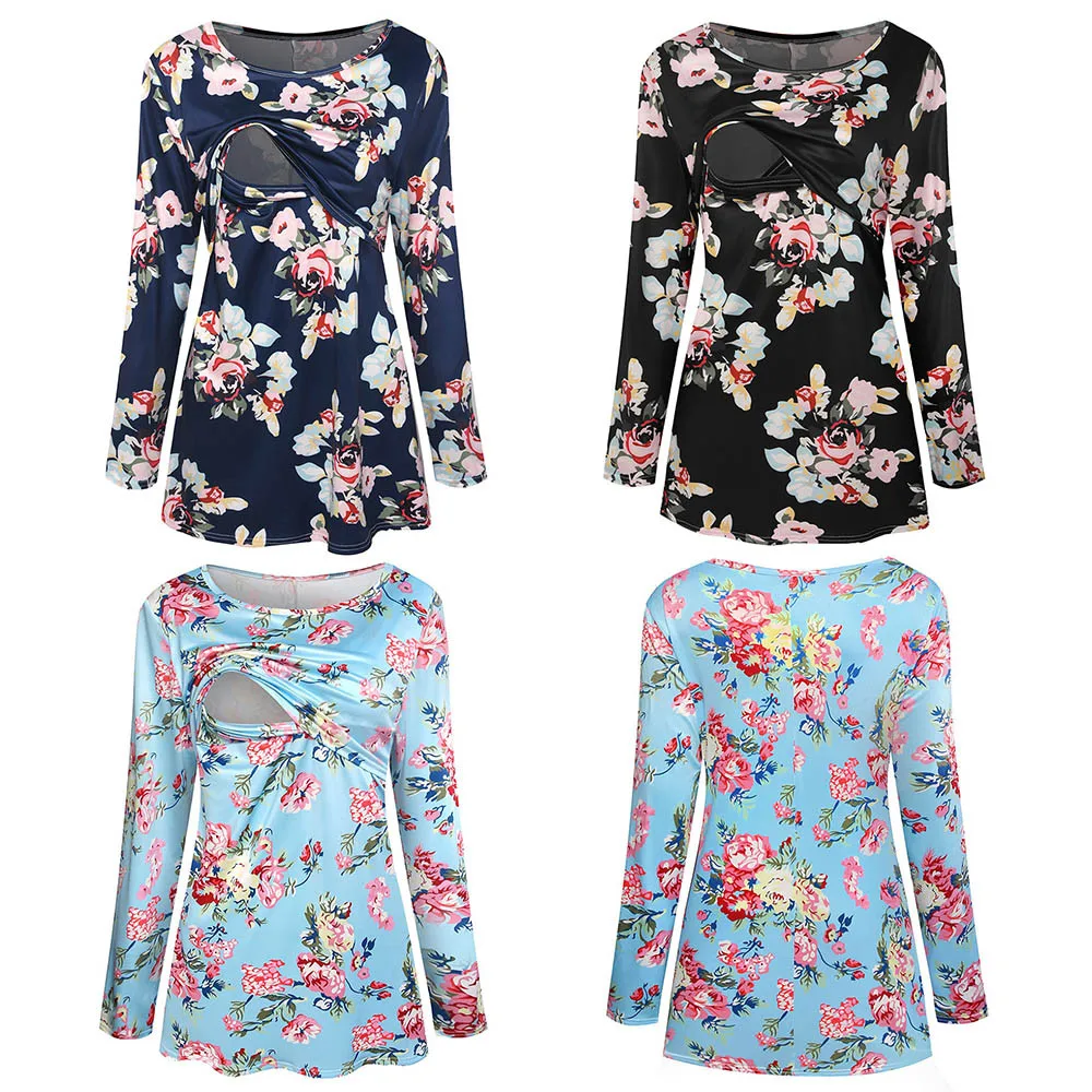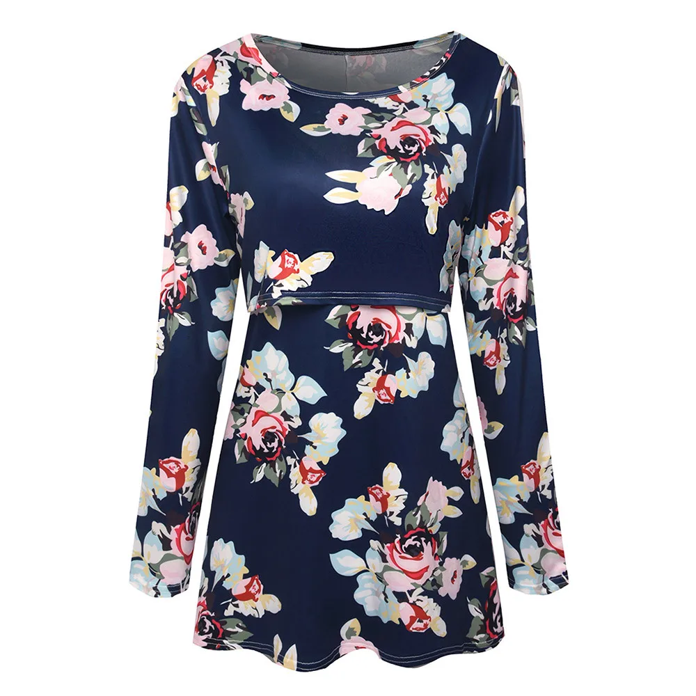 Women Pregnancy Clothes Maternity Clothing Pregnant Nursing Baby Wrinkle Long Sleeve Floral Print Top Clothes for Pregnant Women