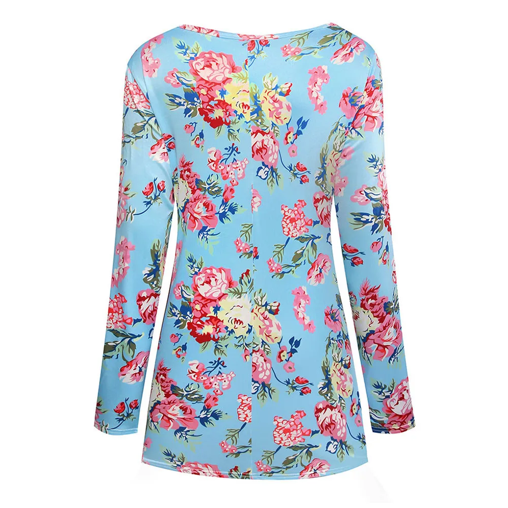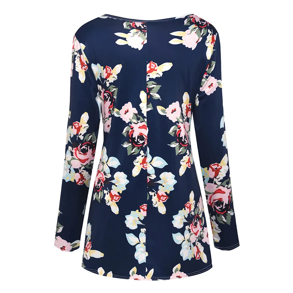 Women Mom Pregnant Nursing Baby Wrinkle Long Sleeve Floral Print Top Clothes