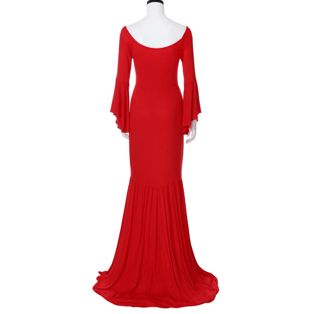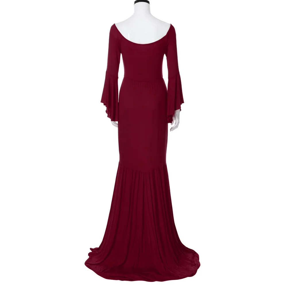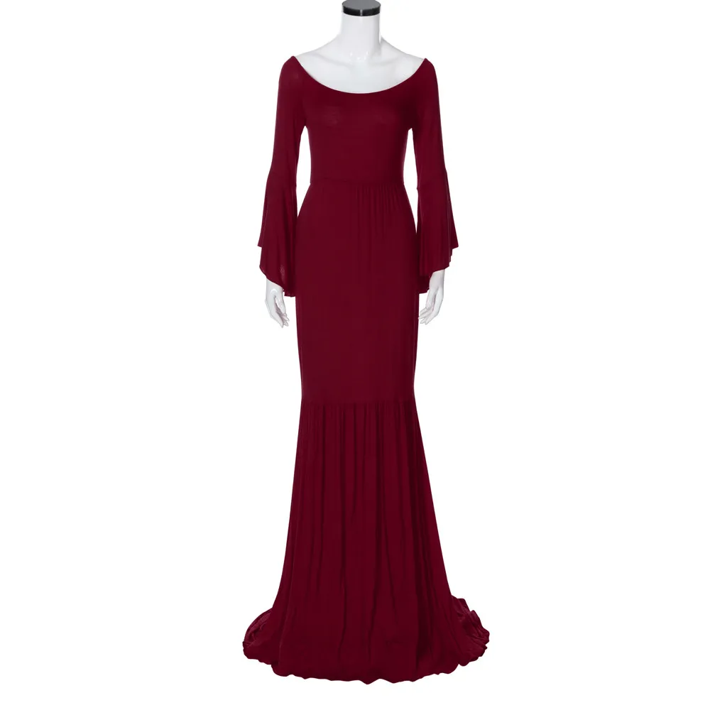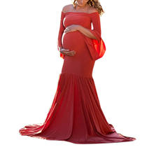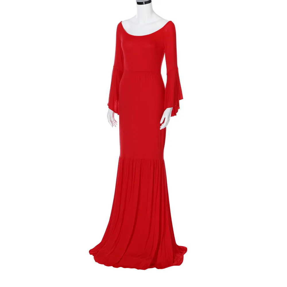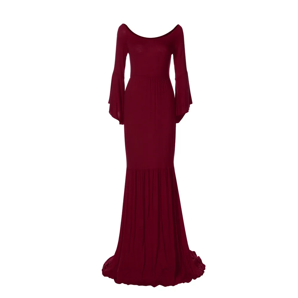 Women Pregnants Sexy Photography Props Long Dress One-Shouldered Ruffled Flare Sleeve Long Sleeve Pregnant Tail Dress Summer