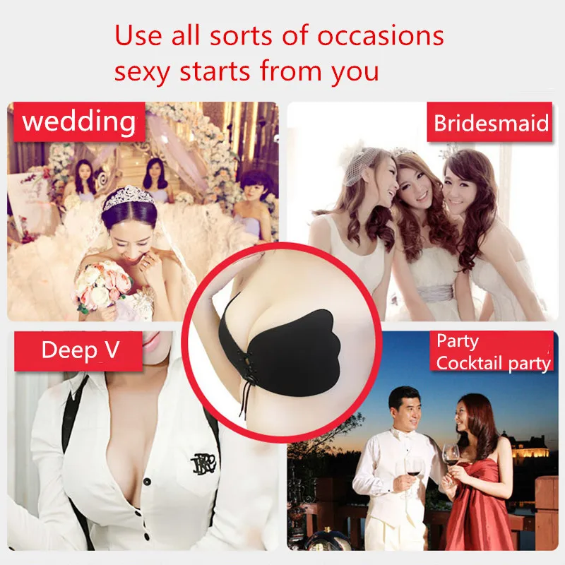 Women Push Up Bra Sexy Self Adhesive Invisible Strapless Top Stick Gel Silicone Bralette Women Deep V Bras Underwear S20