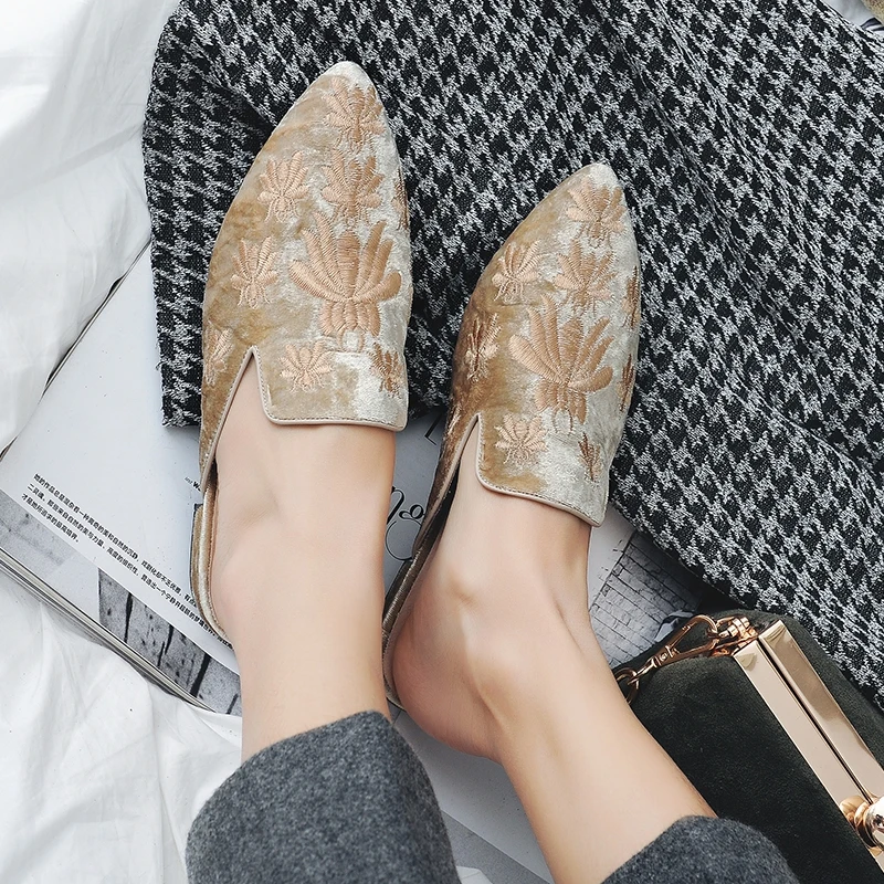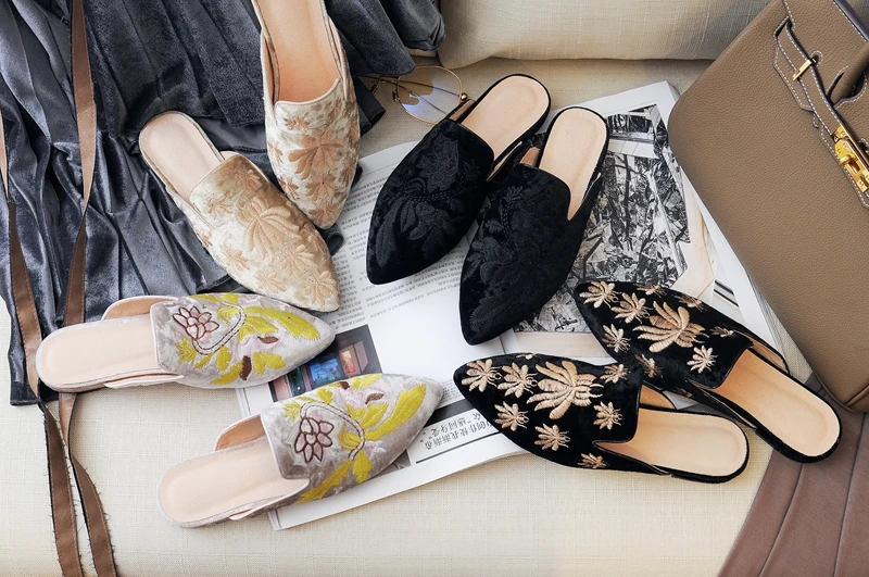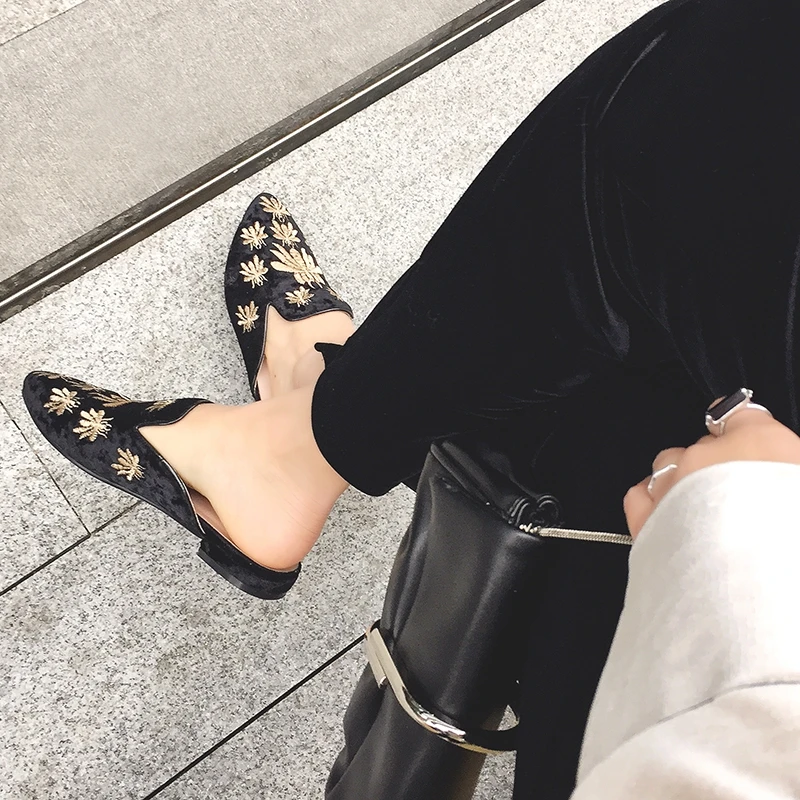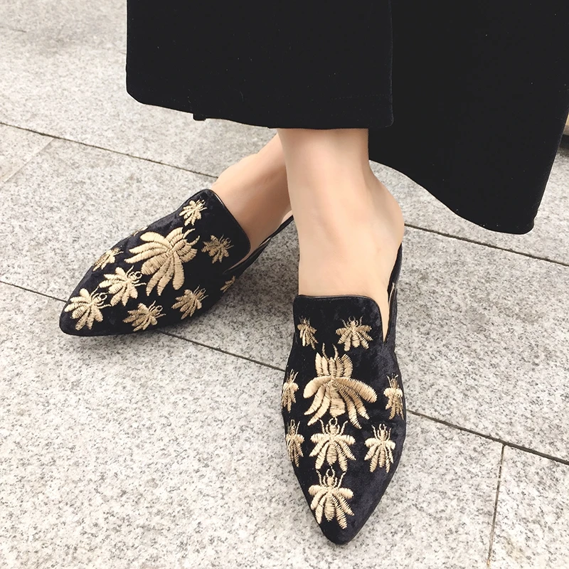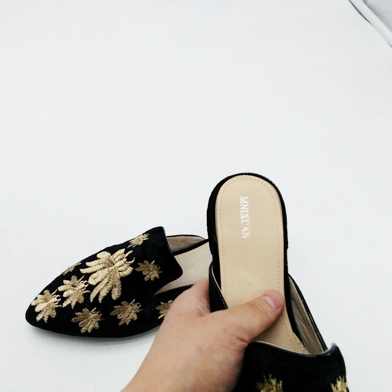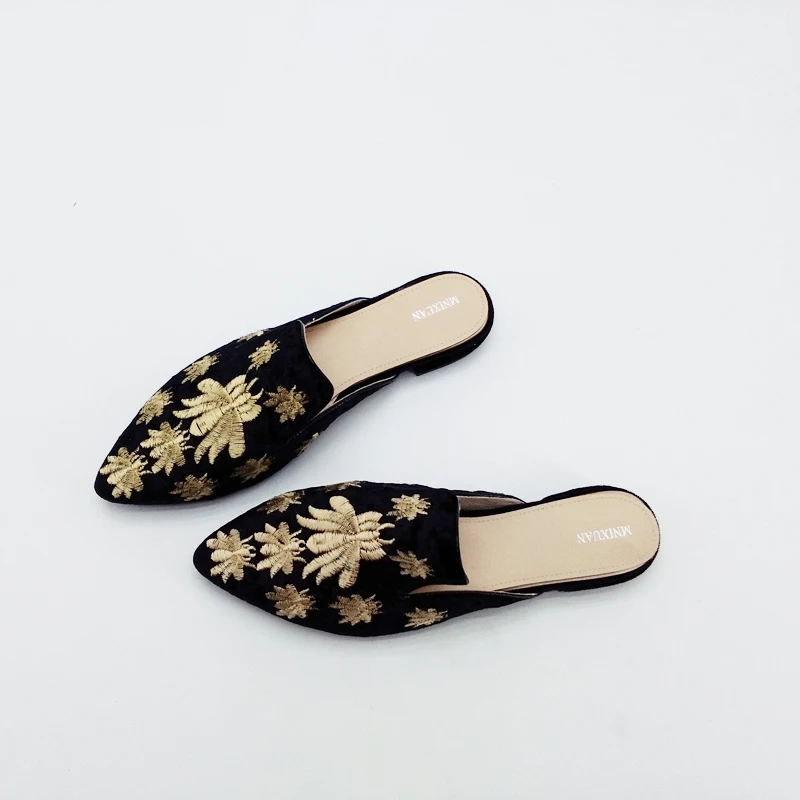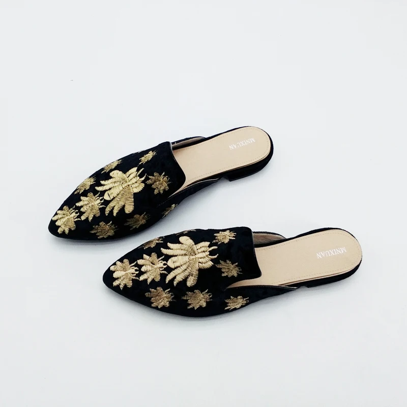 Women sandals slippers mules slippers half loafers casual flat with animals china shoes woman pointed toe slides big size 40 41