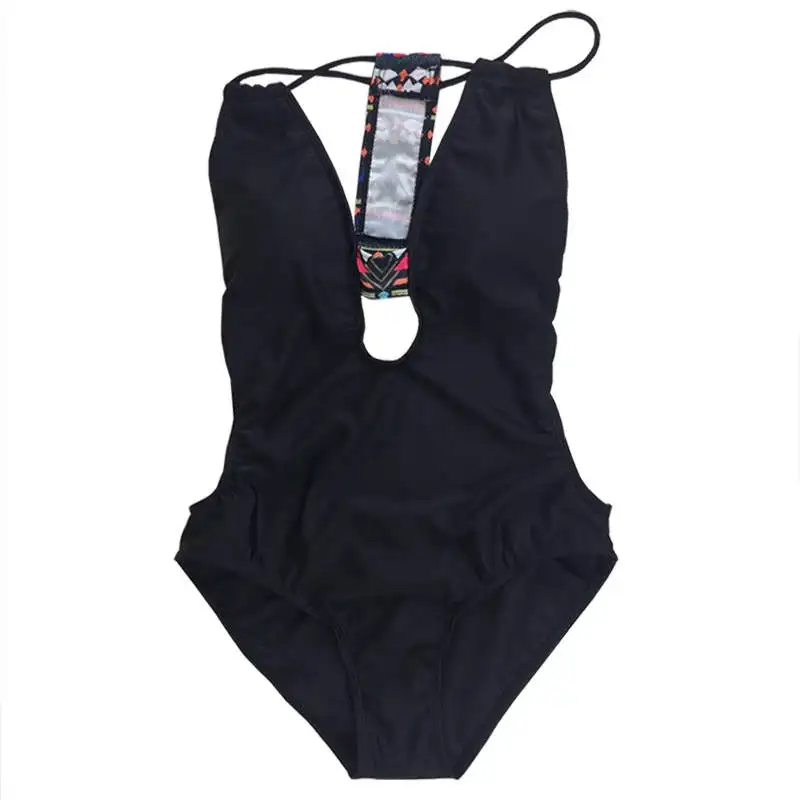 Women Sexy Backless One Piece Swimsuit Solid Bandage Swimwear Deep V String Bodysuit Hot Summer Push up Swimming Beach wear