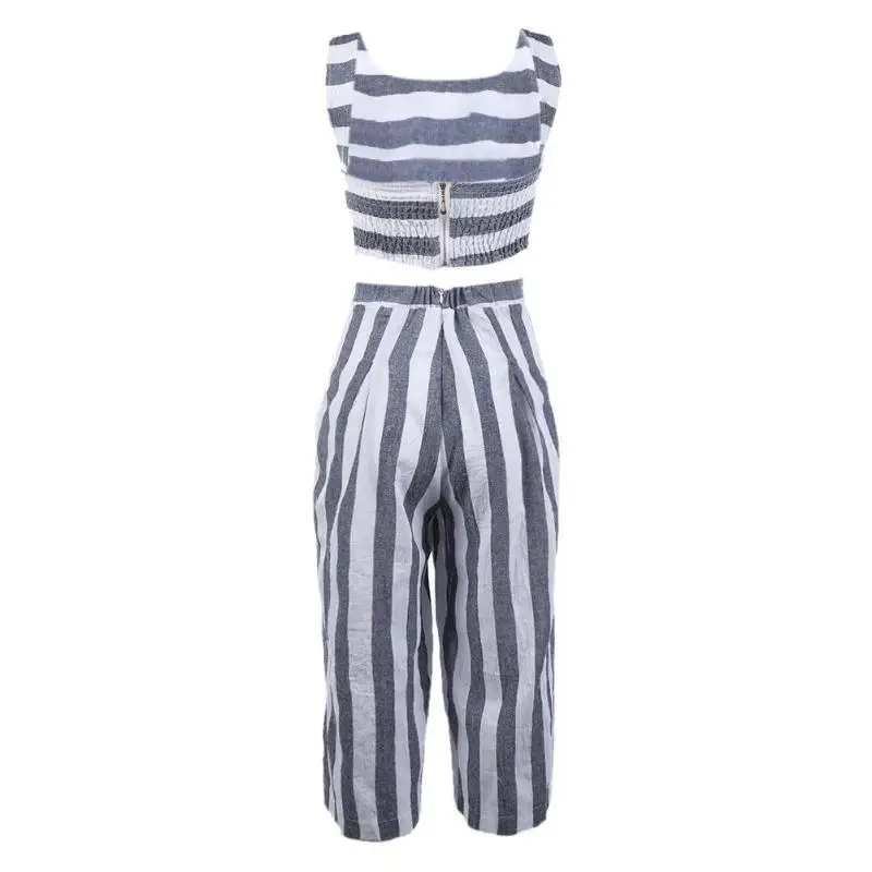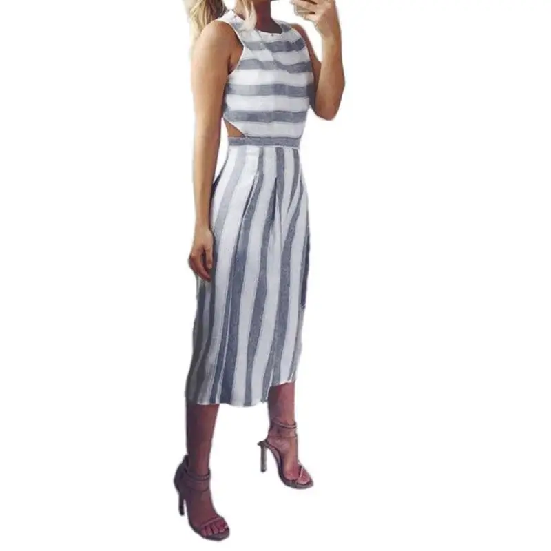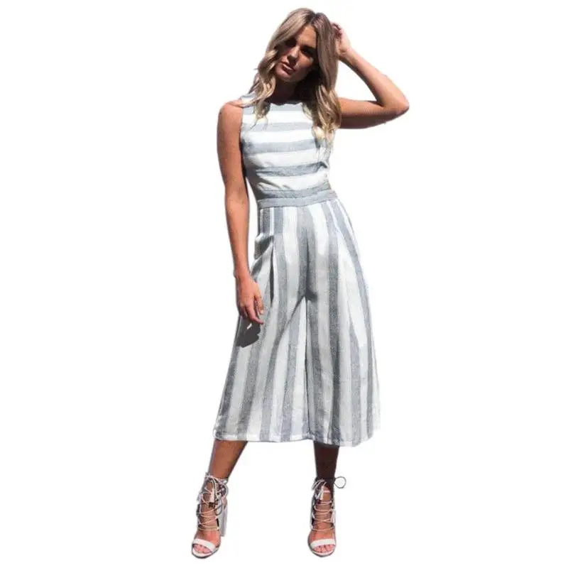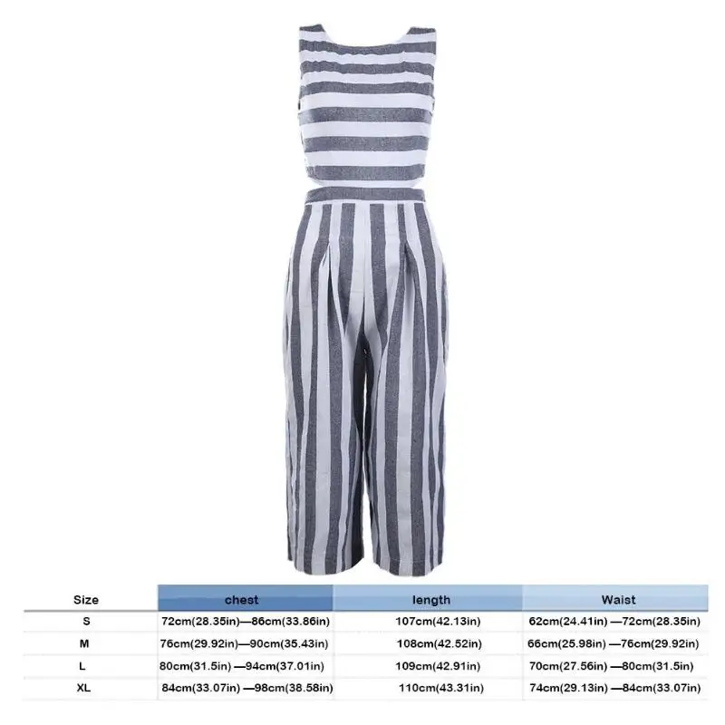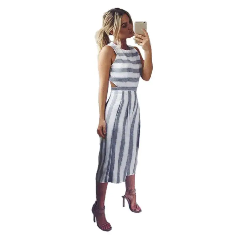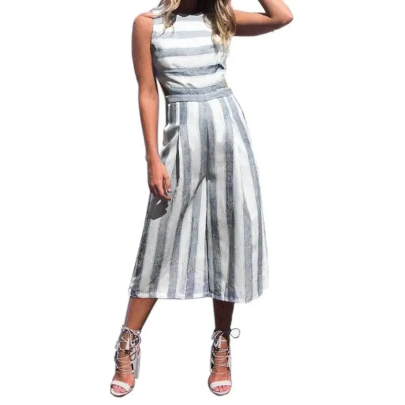 Women Sexy Jumpsuit Summer Fashion Casual Striped Loose Sleeveless Halter Slim Jumpsuit Ladies Bodycon Jumpsuit Beach Cloth