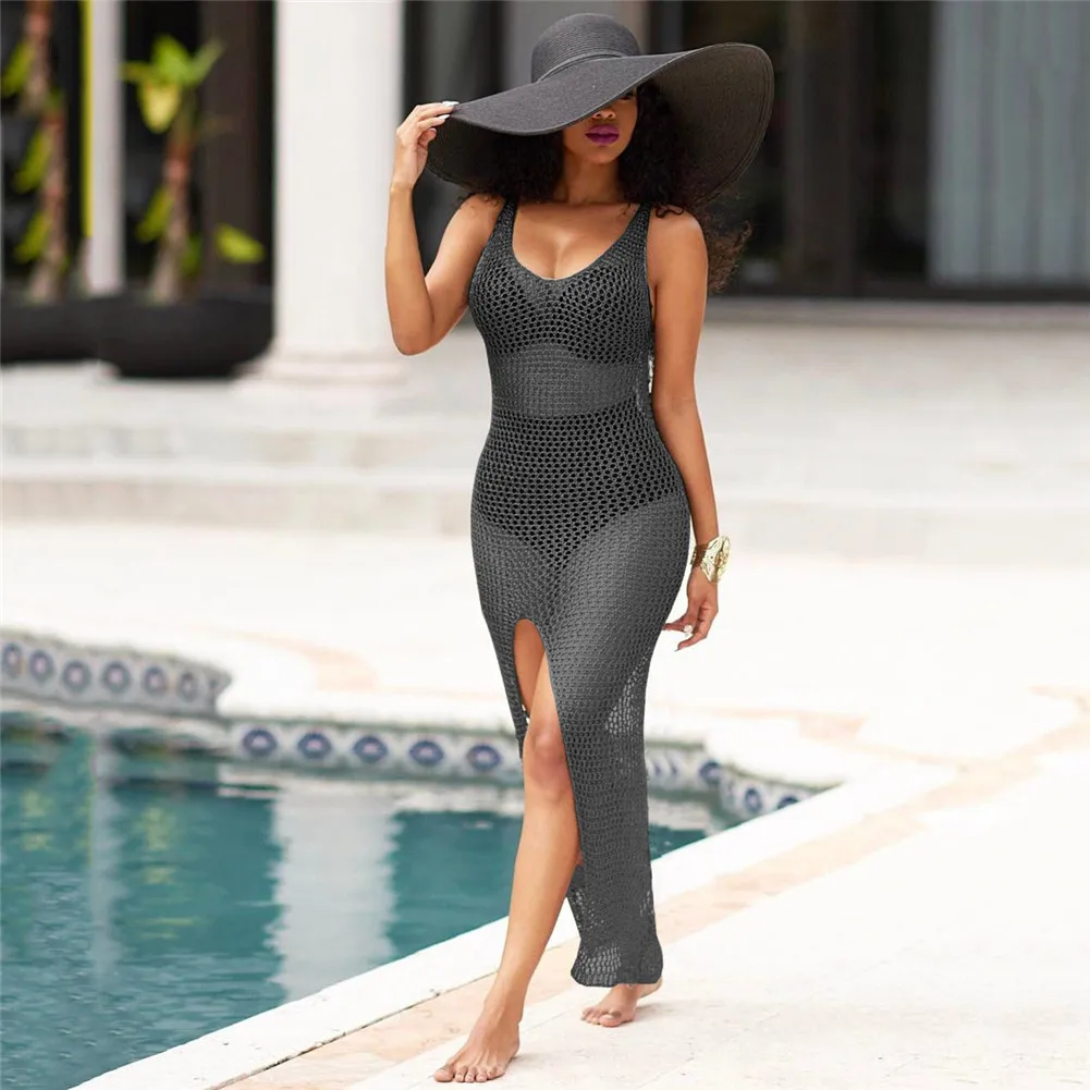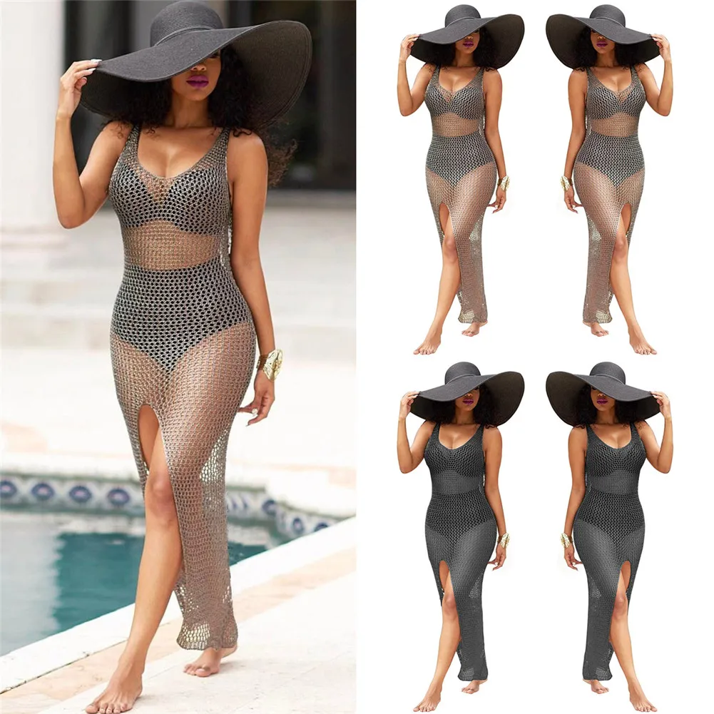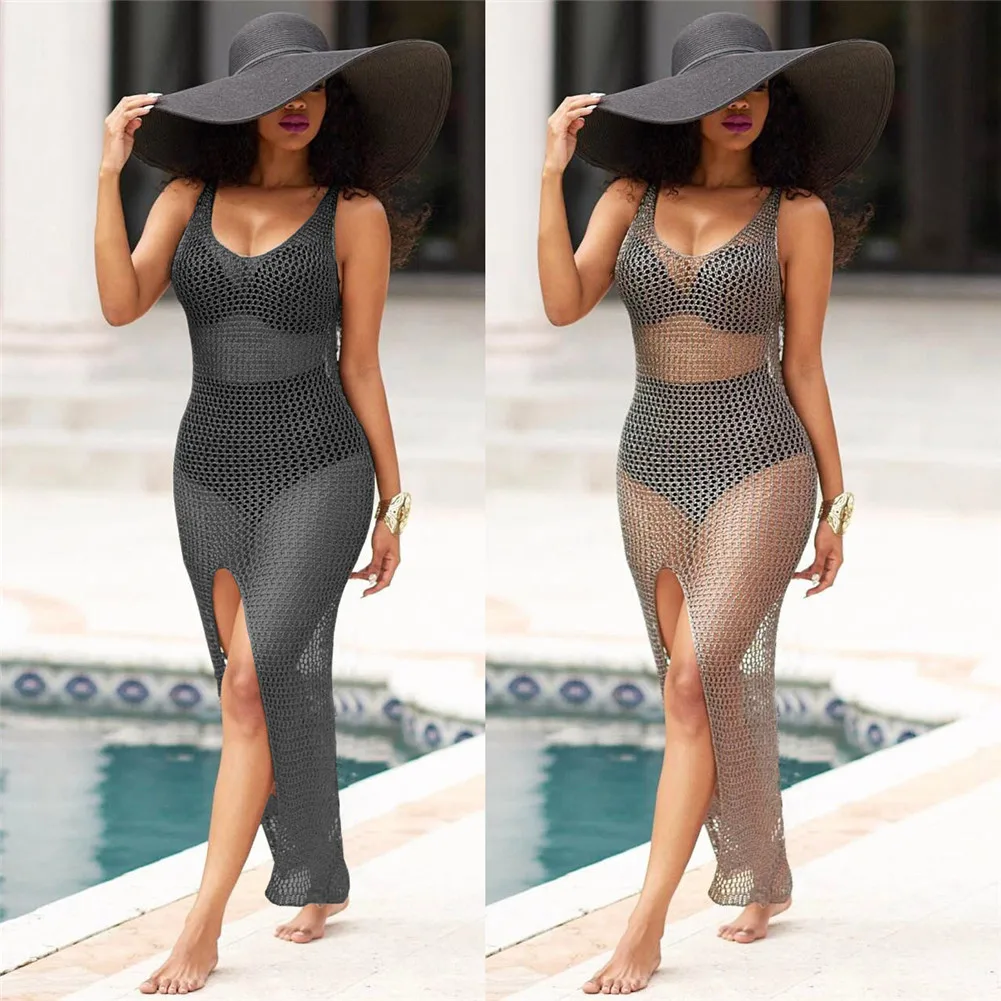 Women Sexy Over Hip Hollow Long Skirt Blouse Smock Swimsuit Jacket Swimwear Black Bathing Suit Padded Swimming Suit Solid