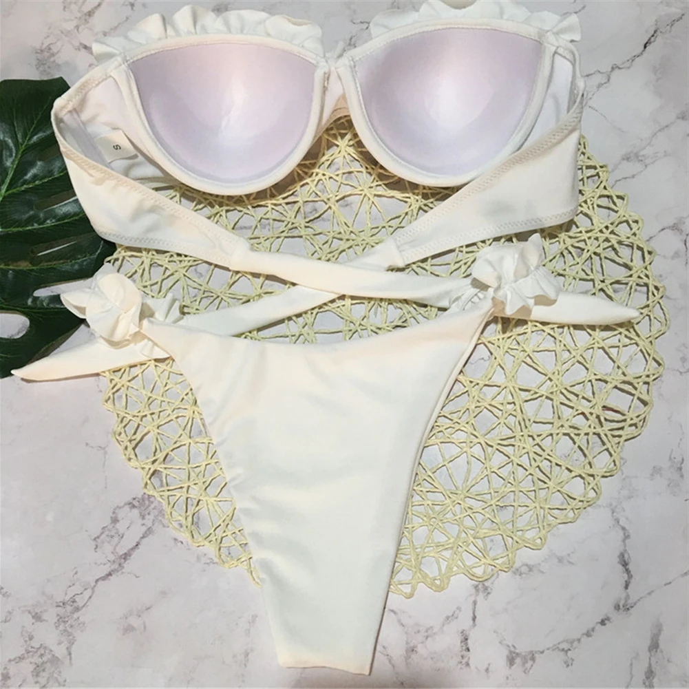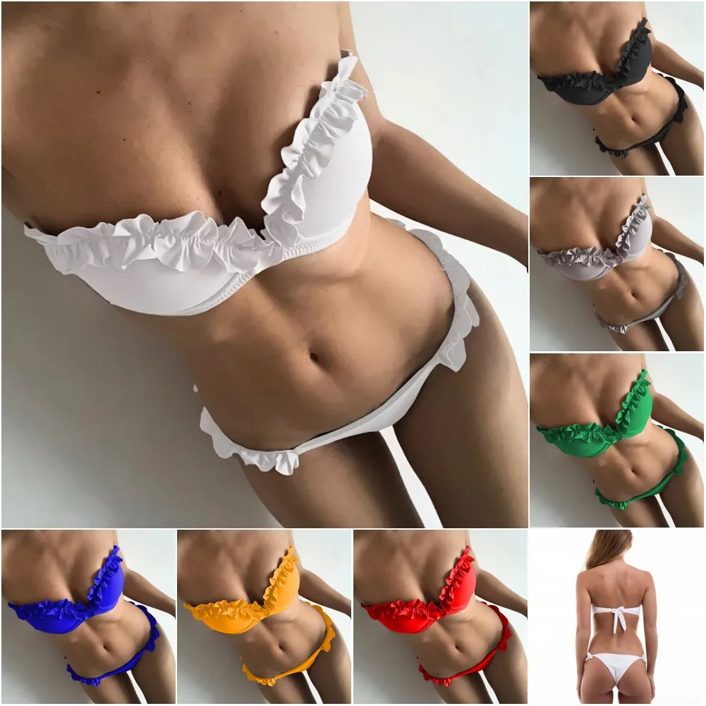 Women Sexy Solid Color Lace Bikinis Swimwear Bra Beach Bathing Suit Push Up Padded Bikini Set Swimsuit
