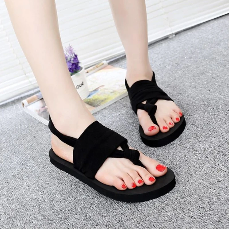 Women Shoes Flip Flops EVA Sole Cloth Belt Summer Bohemian Style Beach Sandals