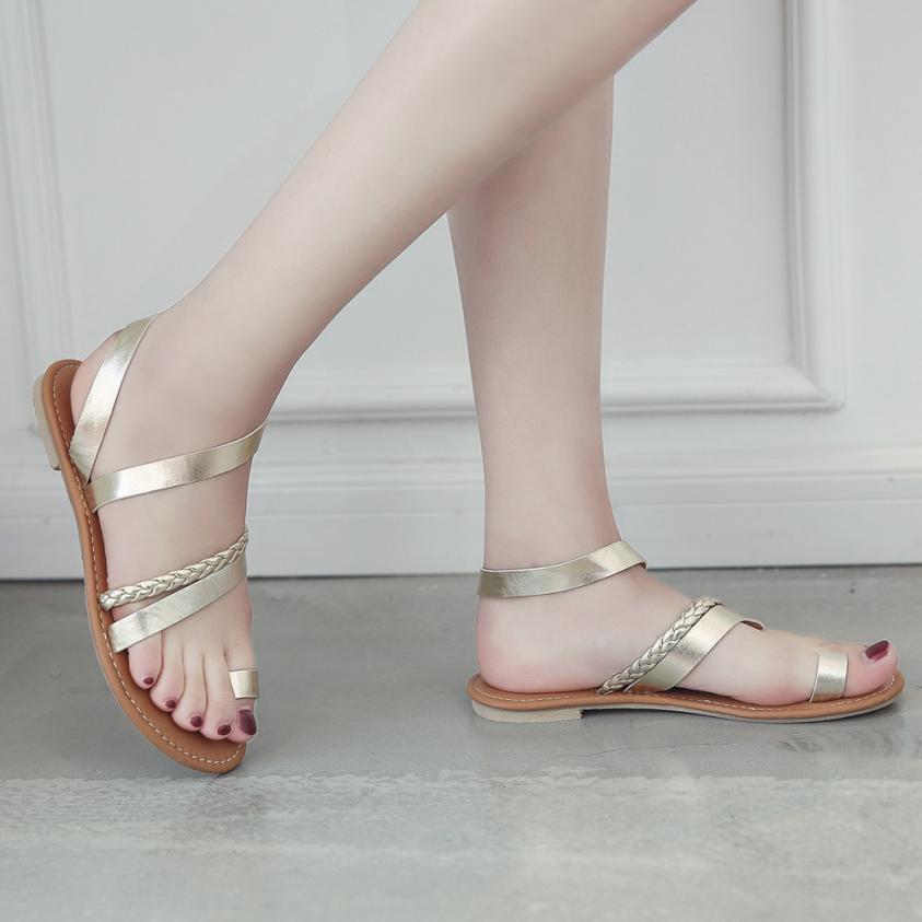 Women Summer Strappy Gladiator Low Flat Heel Flip Flops Beach Sandals Shoes