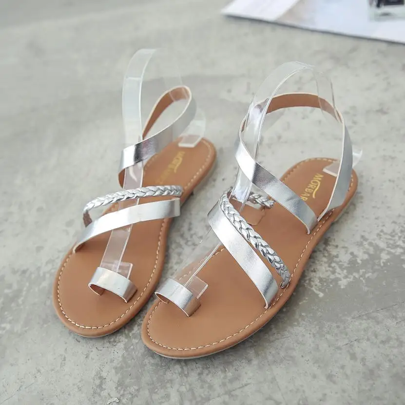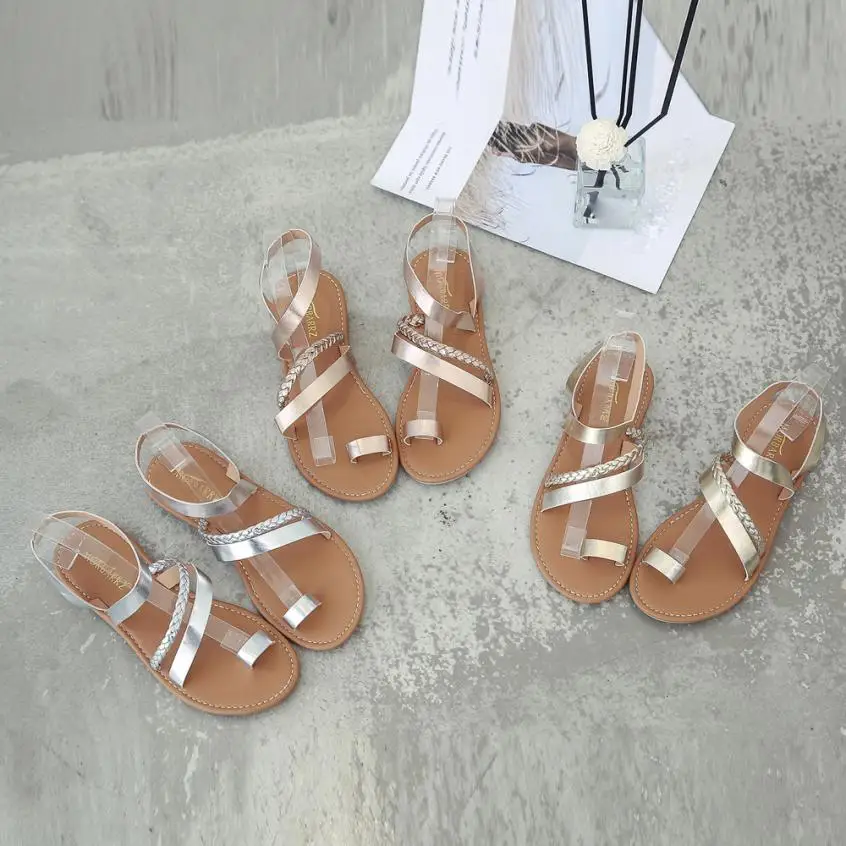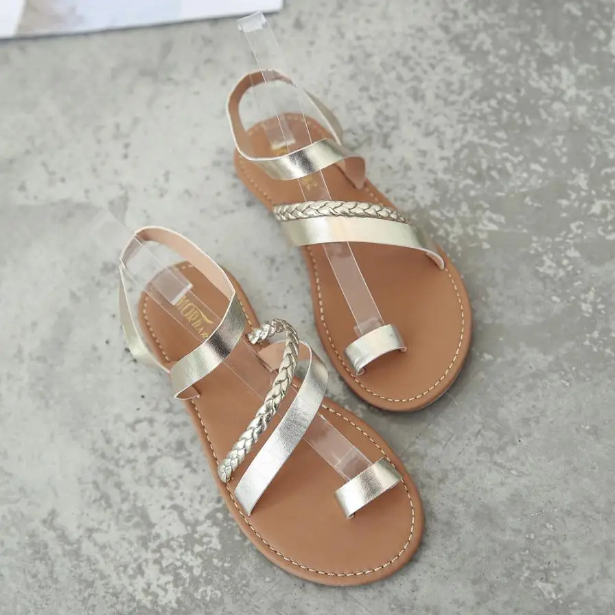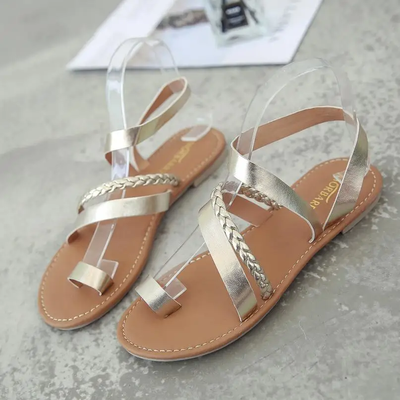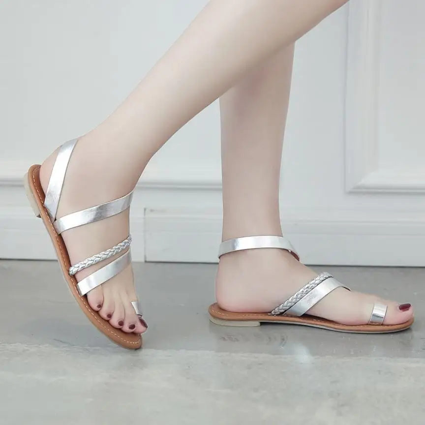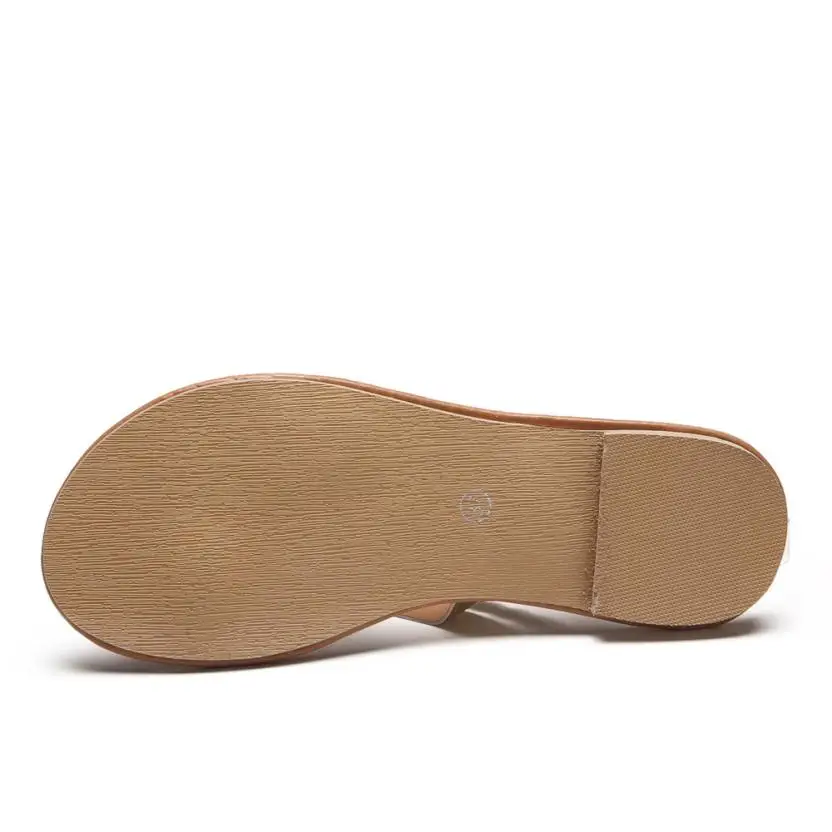 Women Summer Strappy Gladiator Low Flat Heel Flip Flops Beach Sandals Shoes