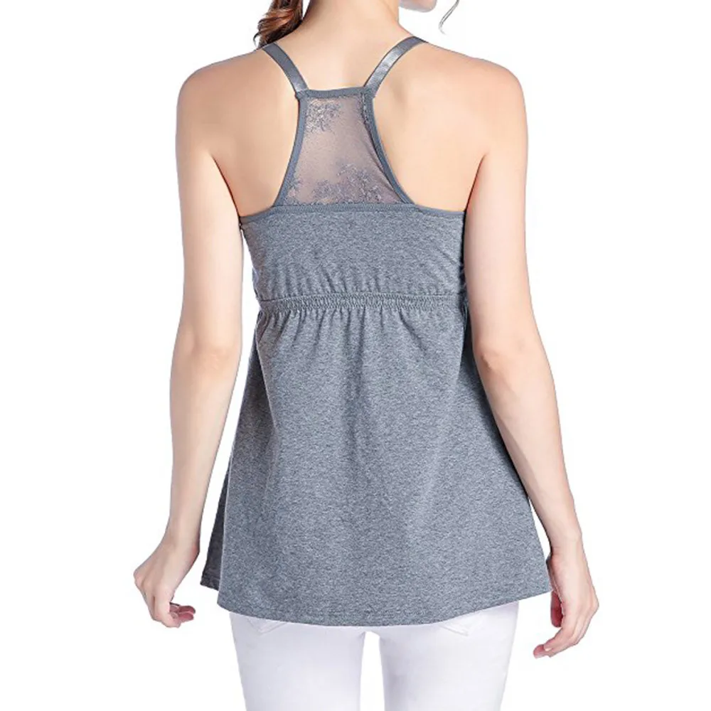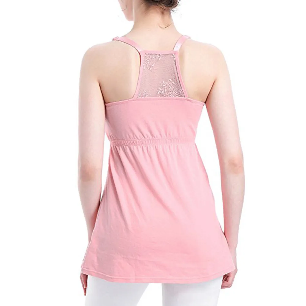 Women Sleeveless Solid Maternity Nursing Pregnant Shirt Top Blouse Lace Loose Comfortable Maternity Clothing Sling Top