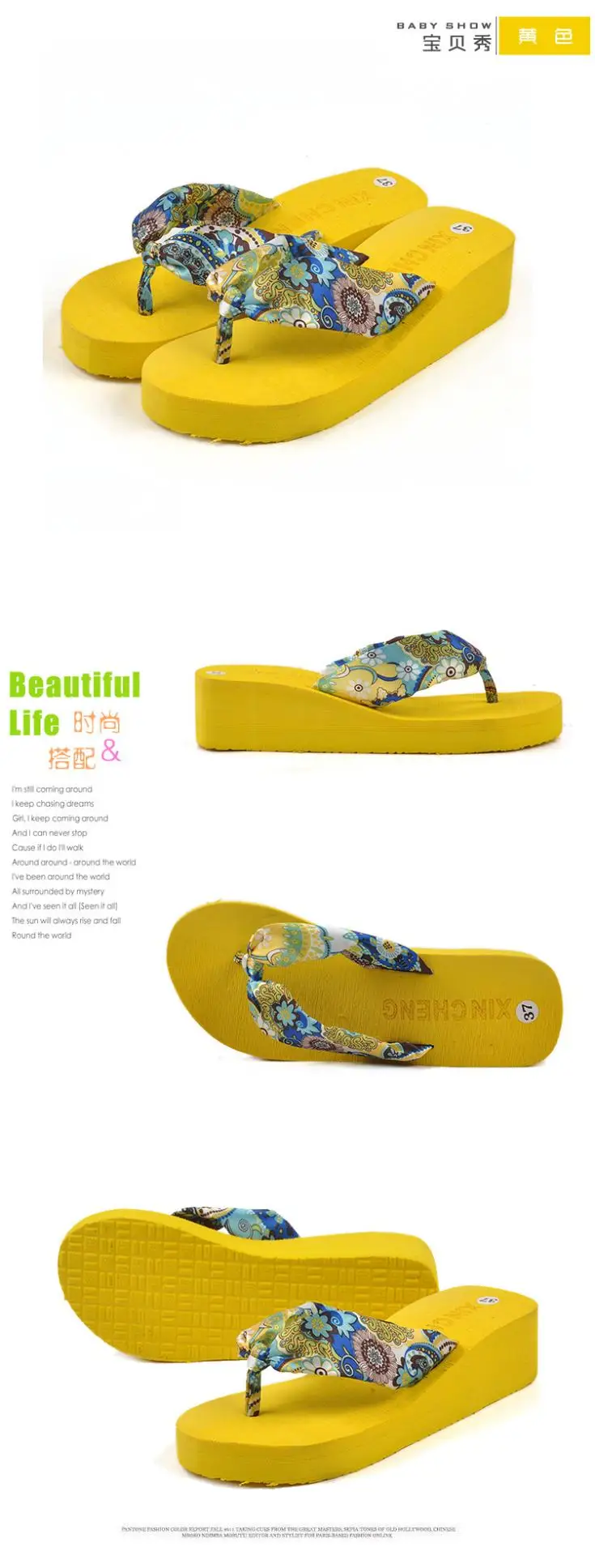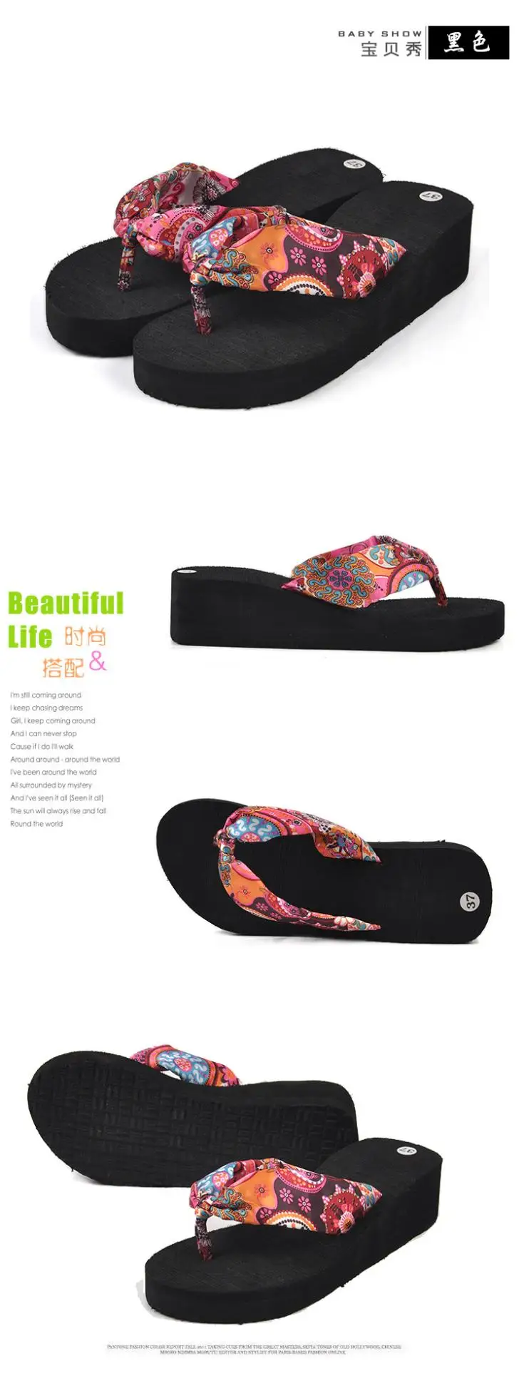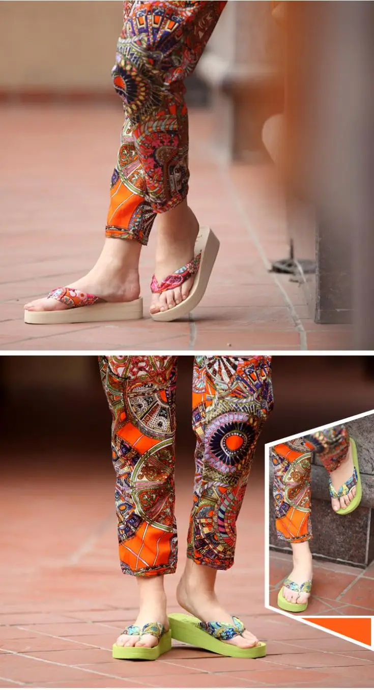 Women Slippers New 2017 Summer bohemia flower Women flip flops Platform Wedges Women Sandals slippers beach shoes size 35~39